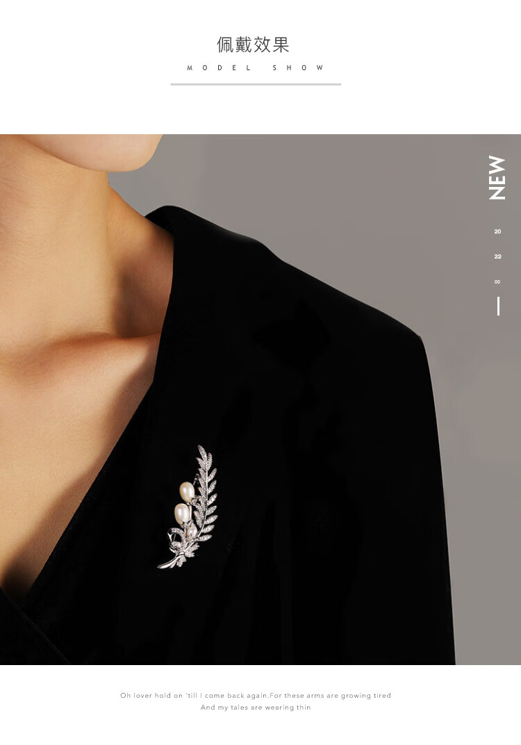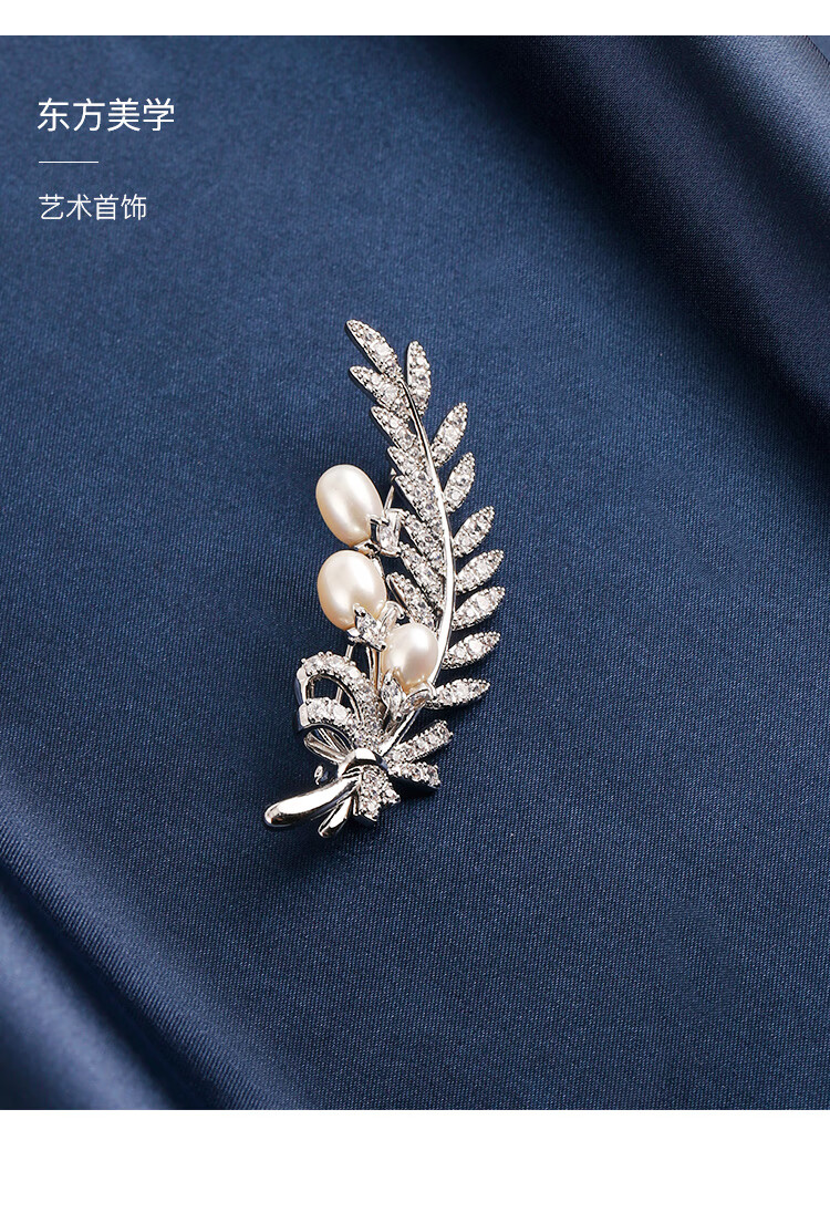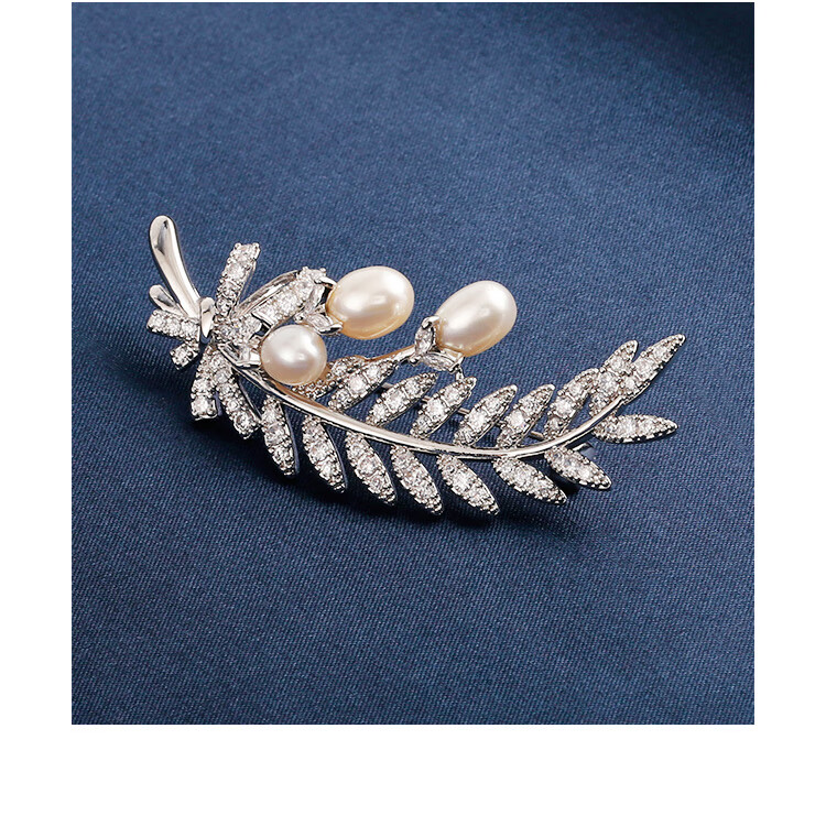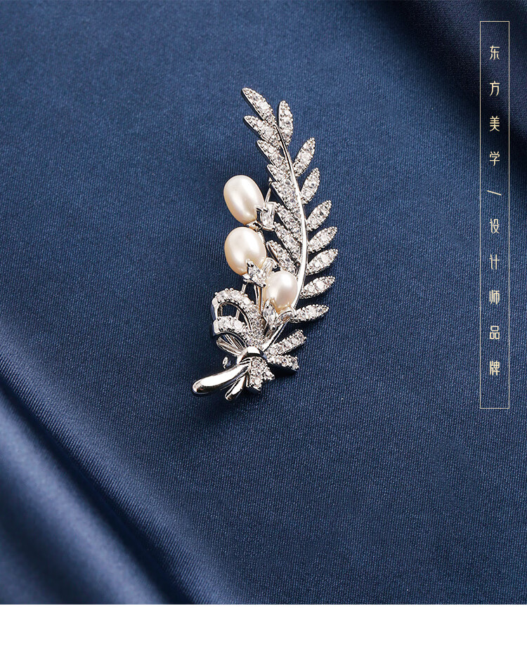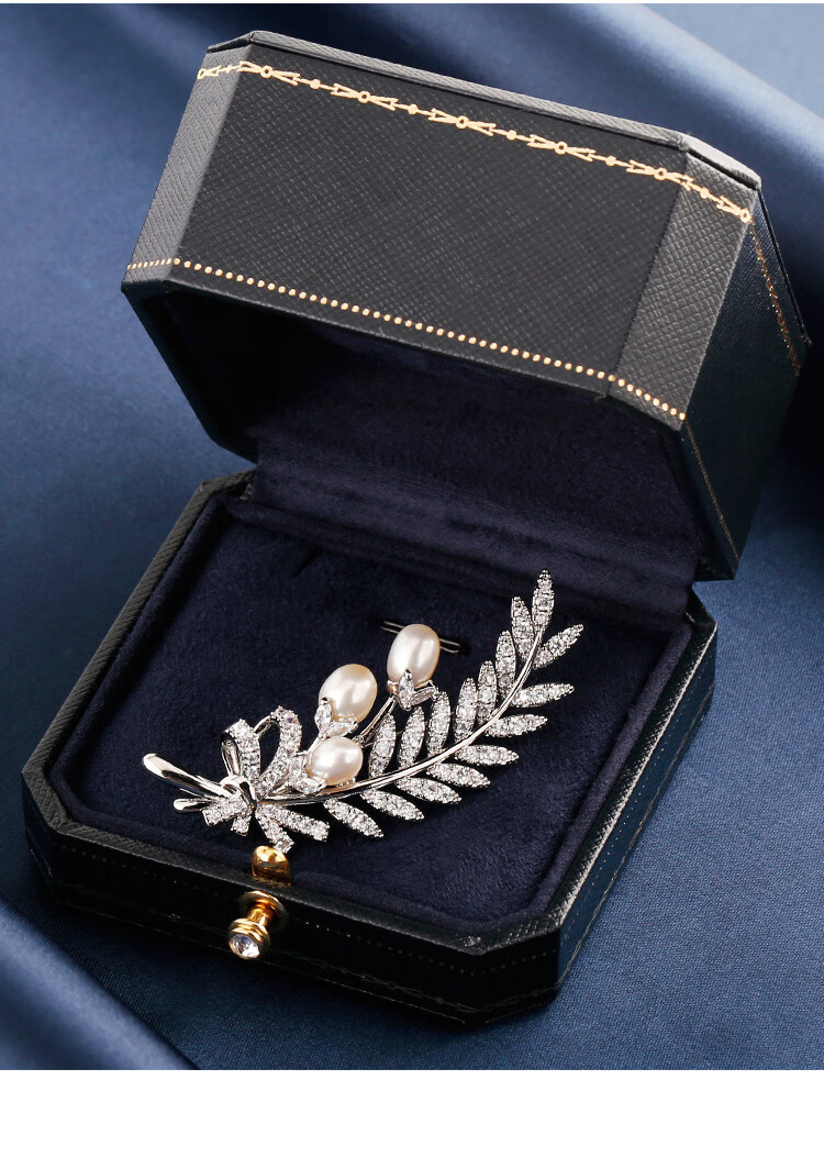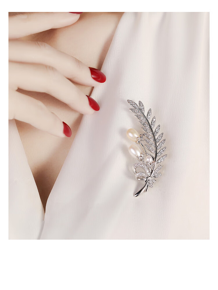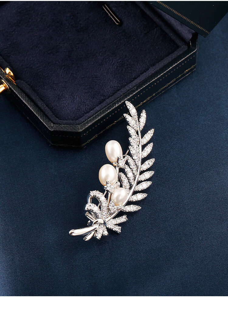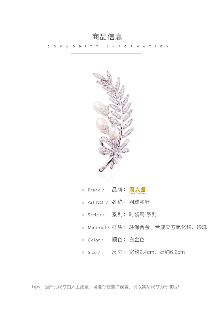 Zhou Dajin CHOW TAI KING genuine platinum feather bead brooch for women, light luxury and majestic corsage, exquisite pin, Valentine's Day birthday gift for girlfriend, platinum feather bead brooch, next day delivery by air