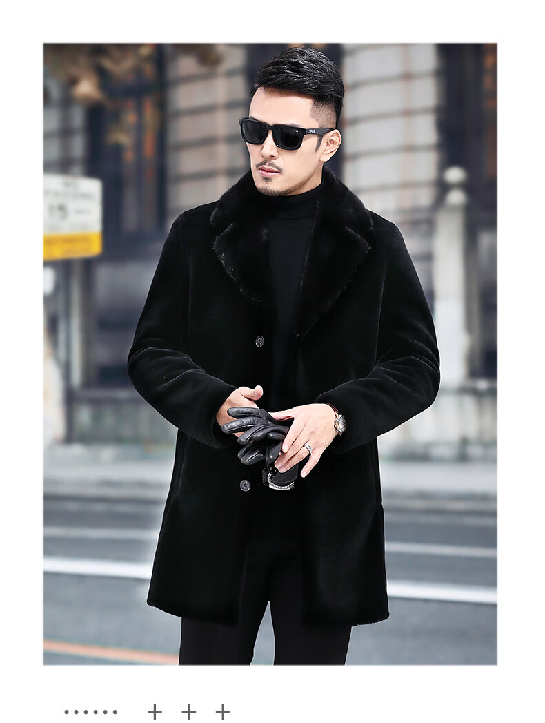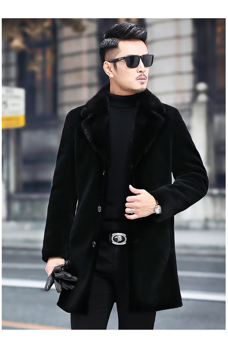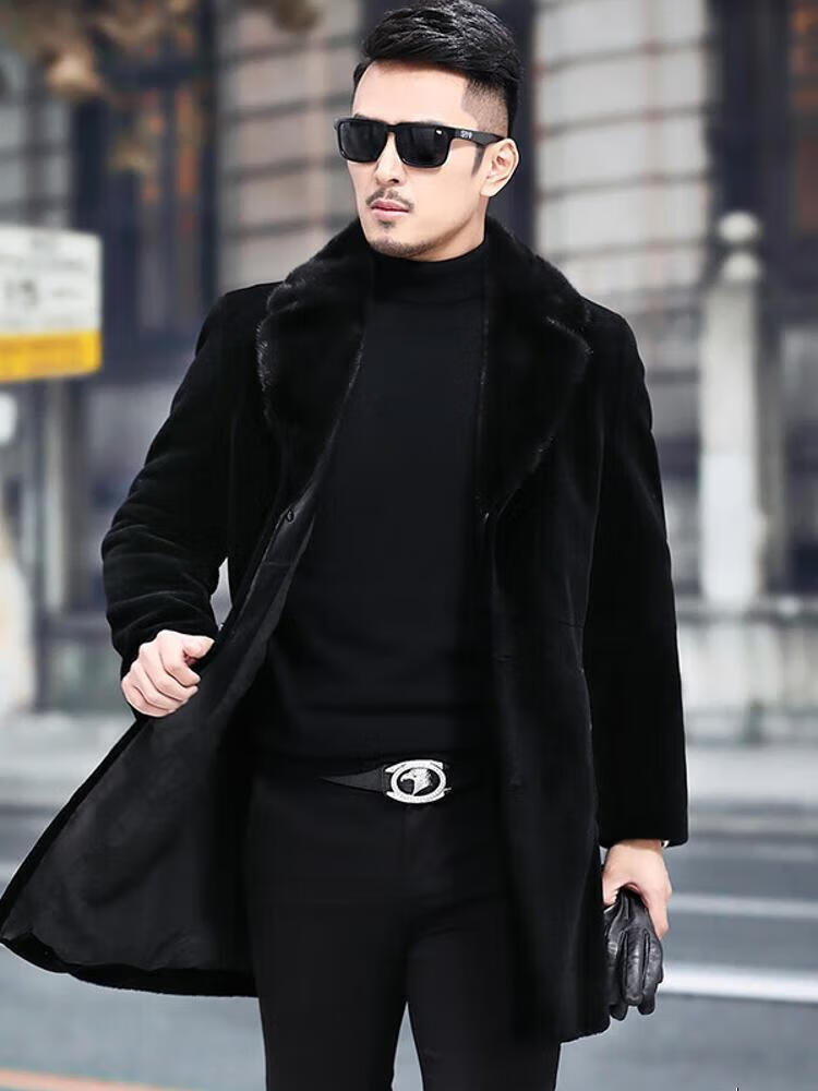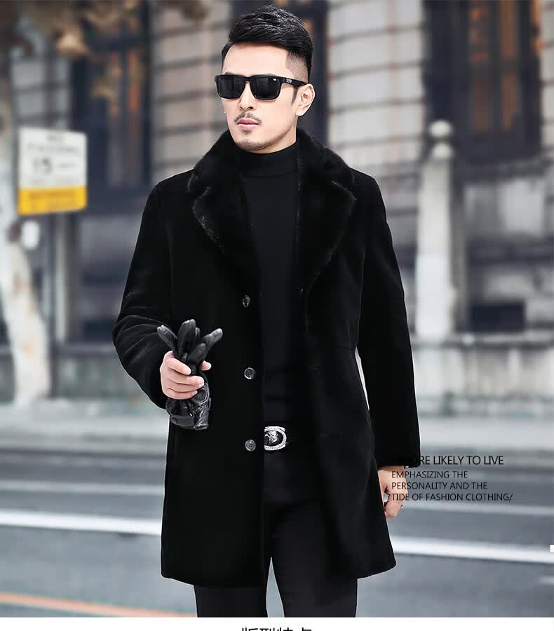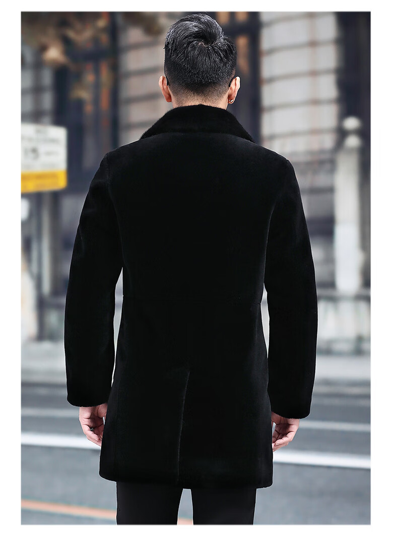Куртка Rofagy из натуральной кожи, мужская меховая куртка средней длины, цельный мех из овечьей шерсти, толстое норковое пальто с воротником из меха, шерстяная куртка, черная, 2XL 185/54