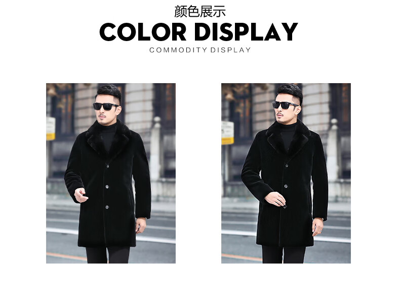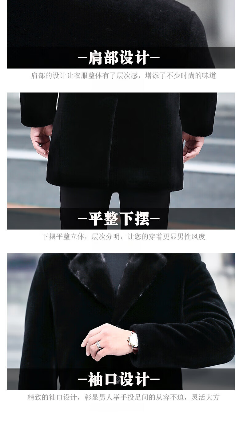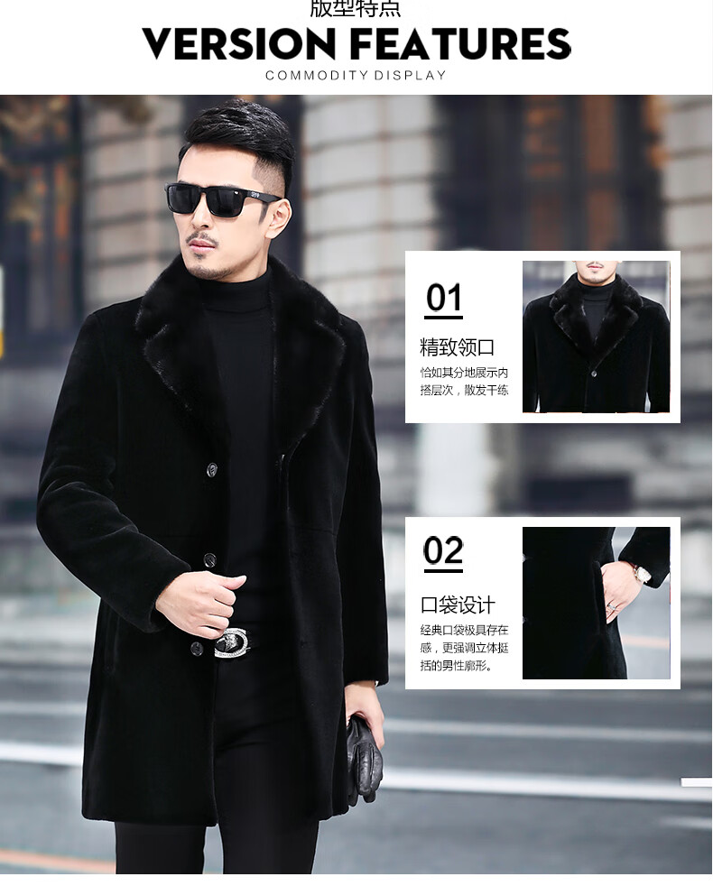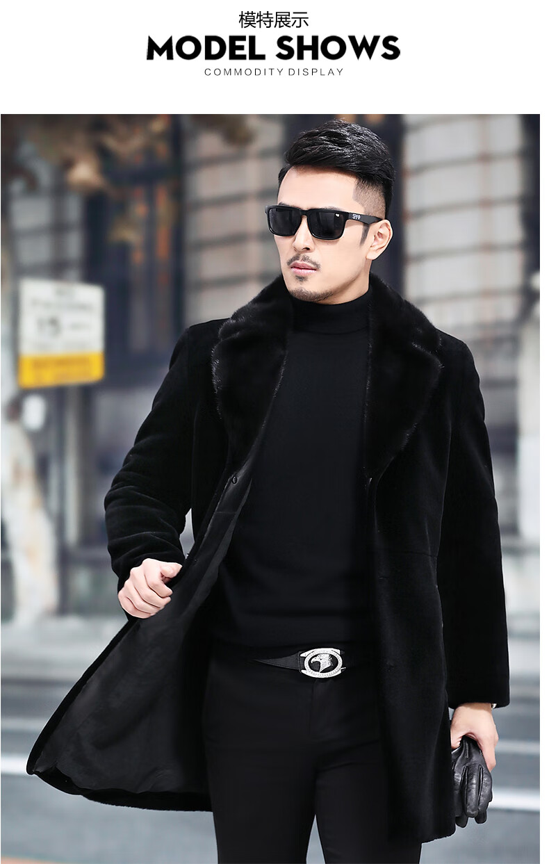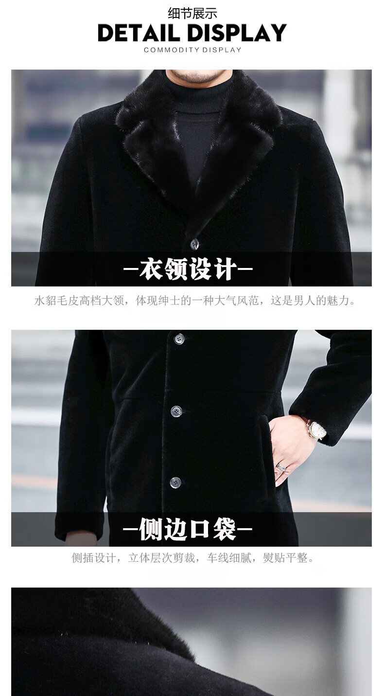 Куртка Rofagy из натуральной кожи, мужская меховая куртка средней длины, цельный мех из овечьей шерсти, толстое норковое пальто с воротником из меха, шерстяная куртка, черная, 2XL 185/54