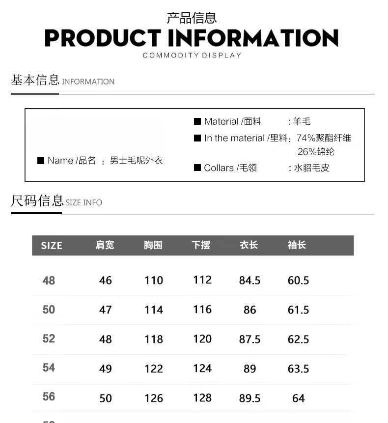 Size (cm) 42 44 46 48 50