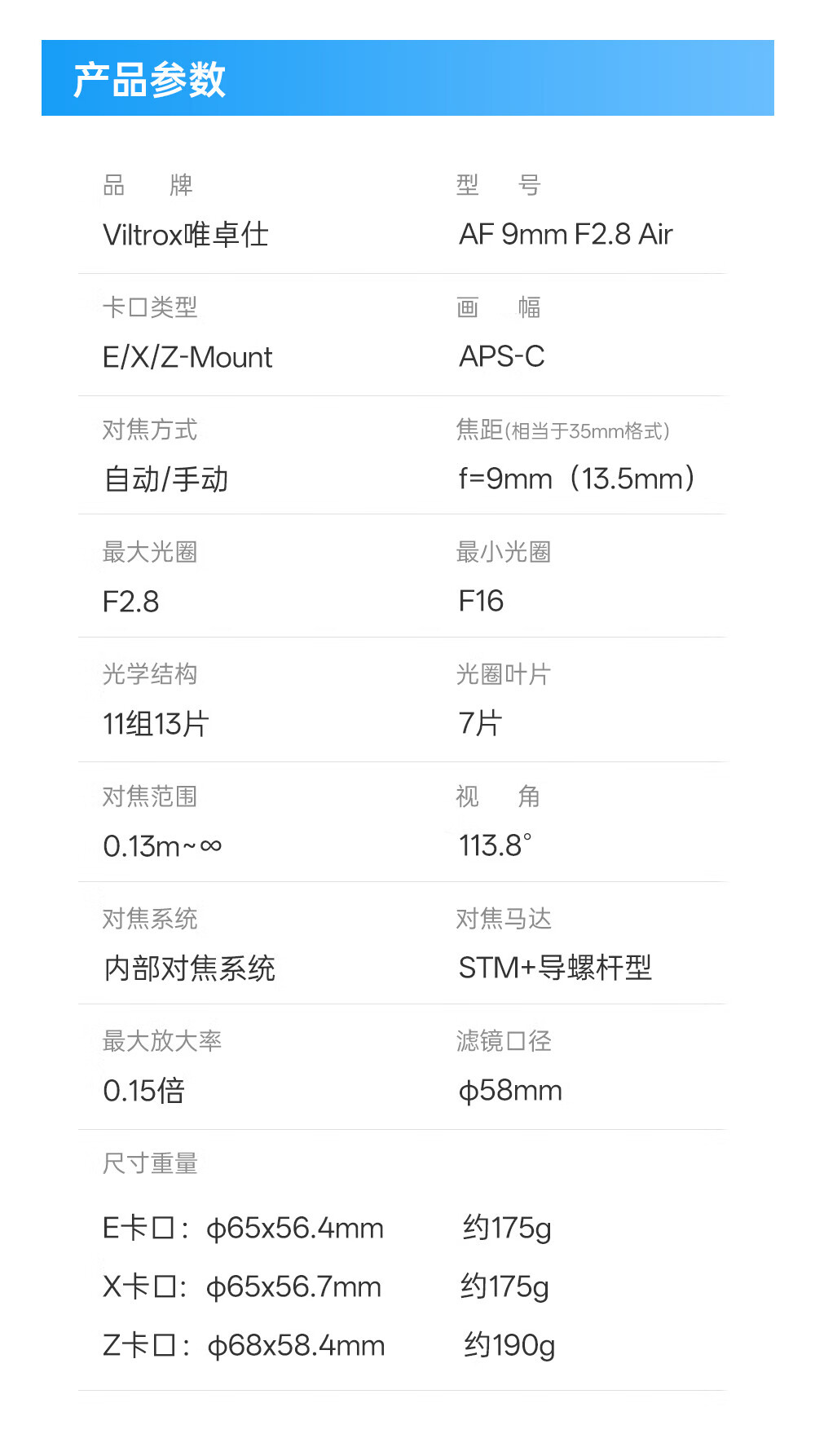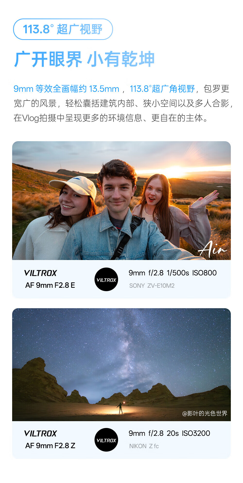 Viltrox new product AF 9mm F2.8 Air large aperture ultra-wide-angle autofocus lens 9f2.8 lightweight series APS-C format suitable for E/Z mount mirrorless lens AF 9mm F2.8 Air E (Sony port)