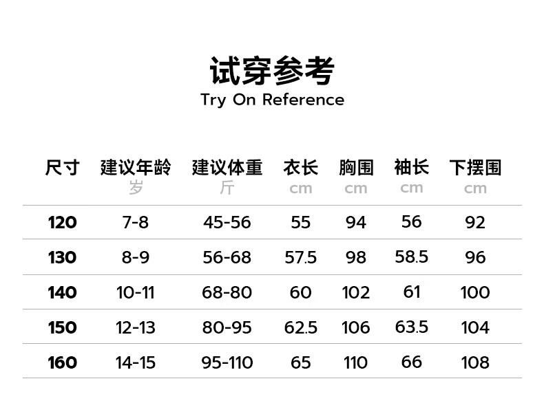 China (cm) 160-165/84-86 165-170 / 88-90 167-172 / 92-96 168-173 / 98-102 170-176 / 106-110