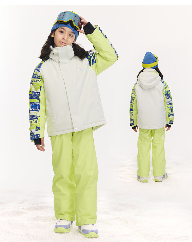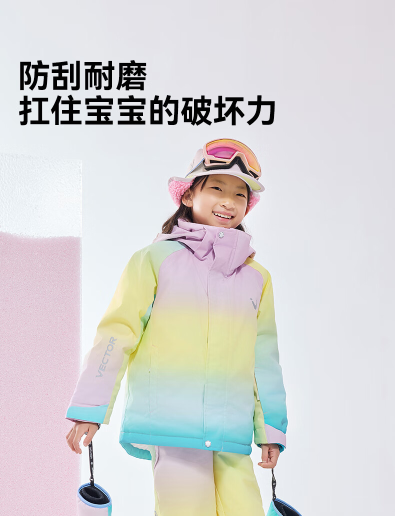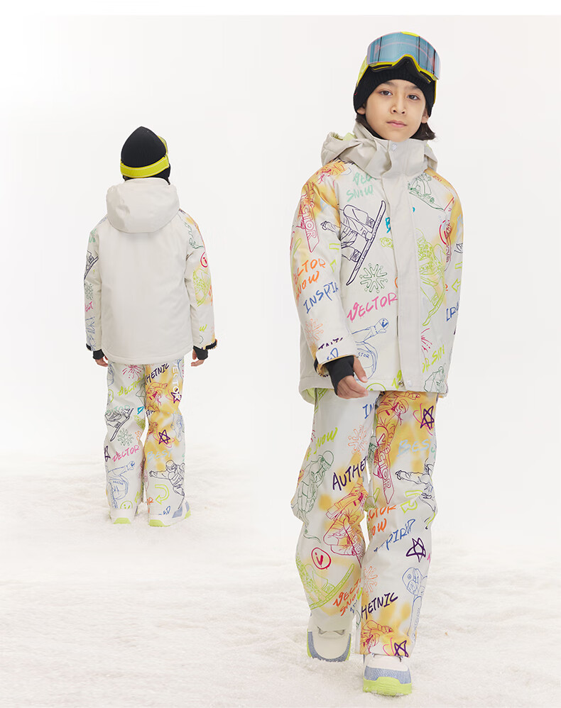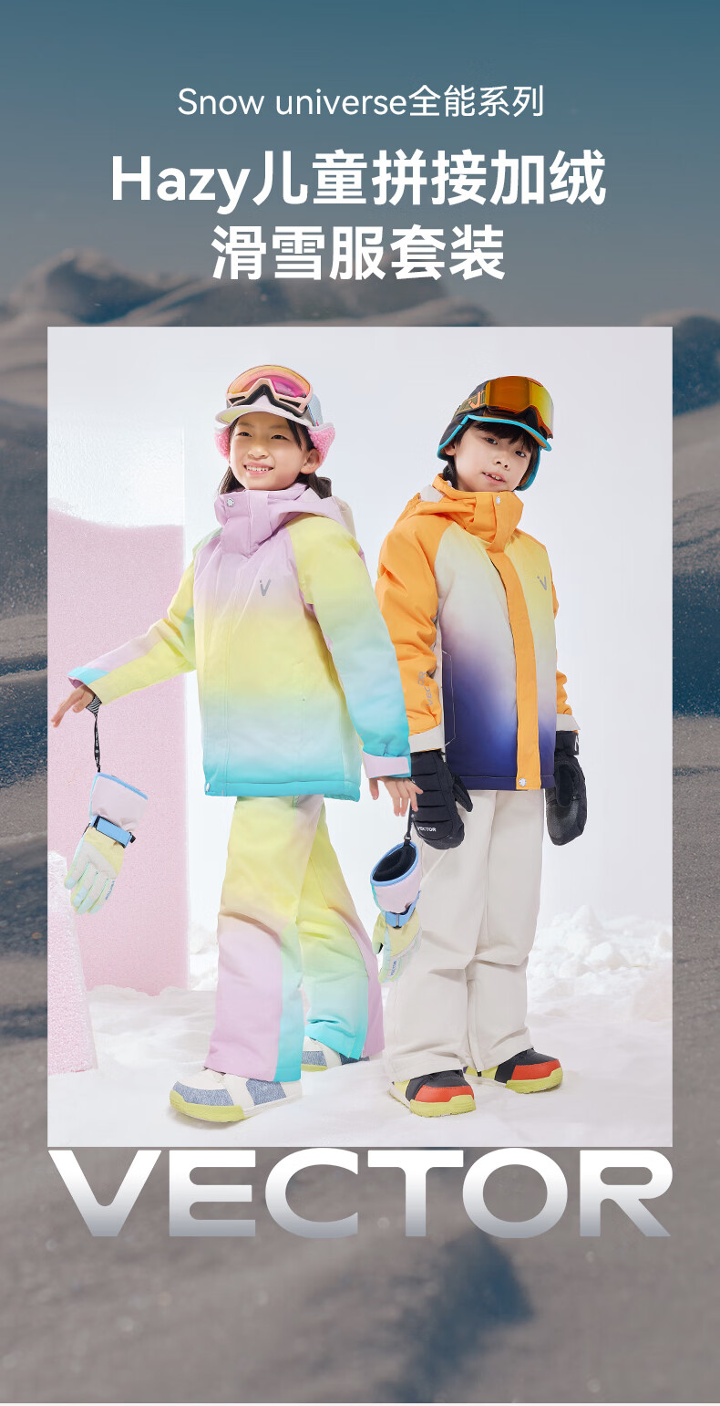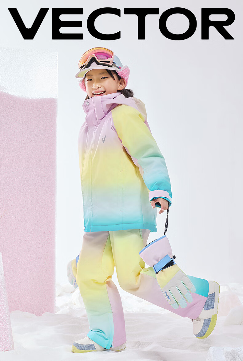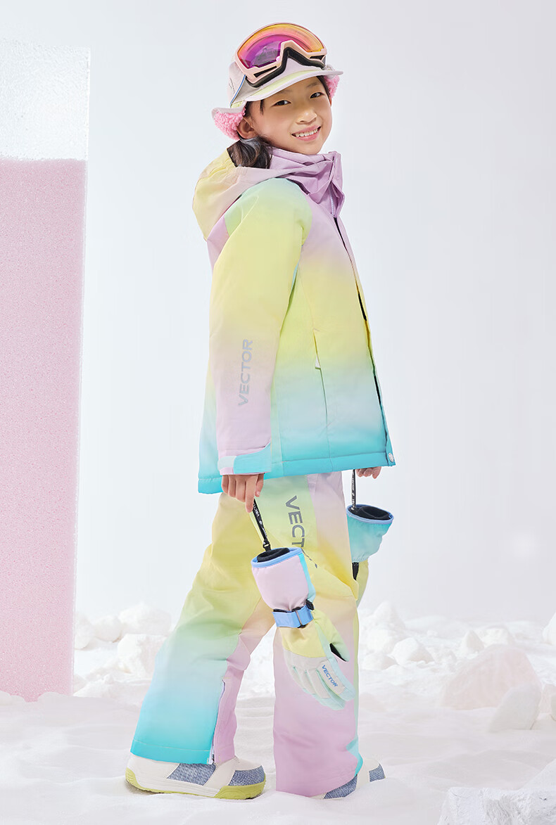 Vector Play Extension Pastel Gradient Children's Ski Suit Set Thickened Waterproof Overalls Ski Suit for Boys and Girls Glacier Pastel + Optical White Pants_ Same style for boys and girls XS 160