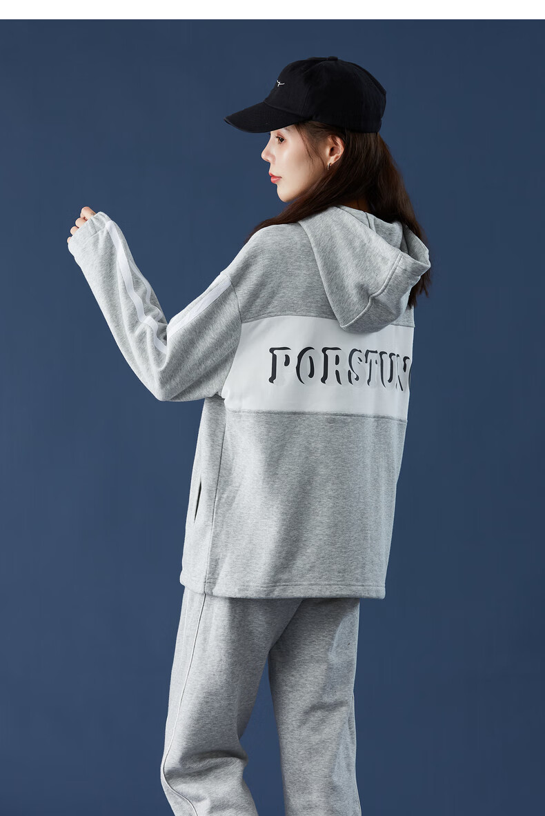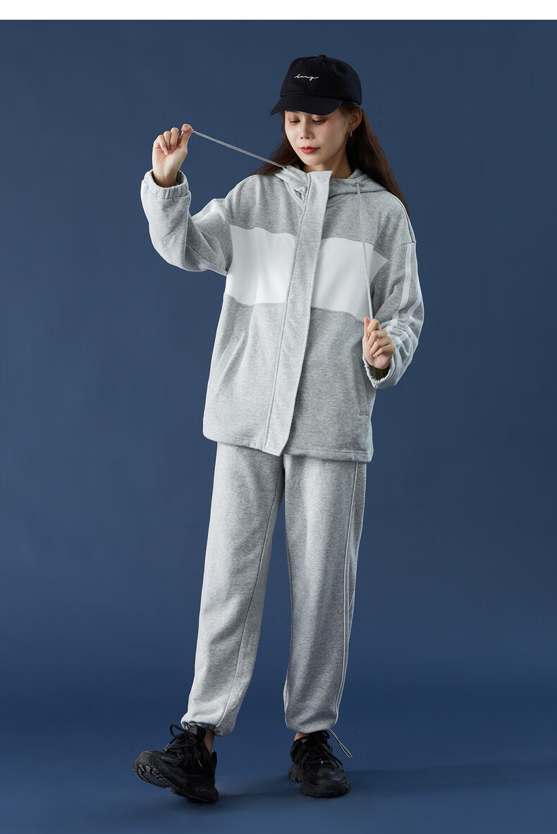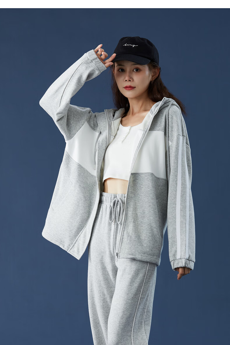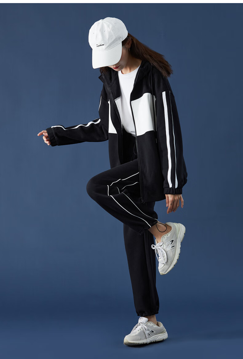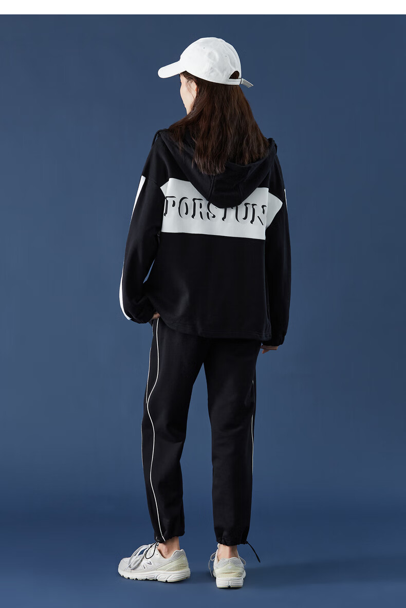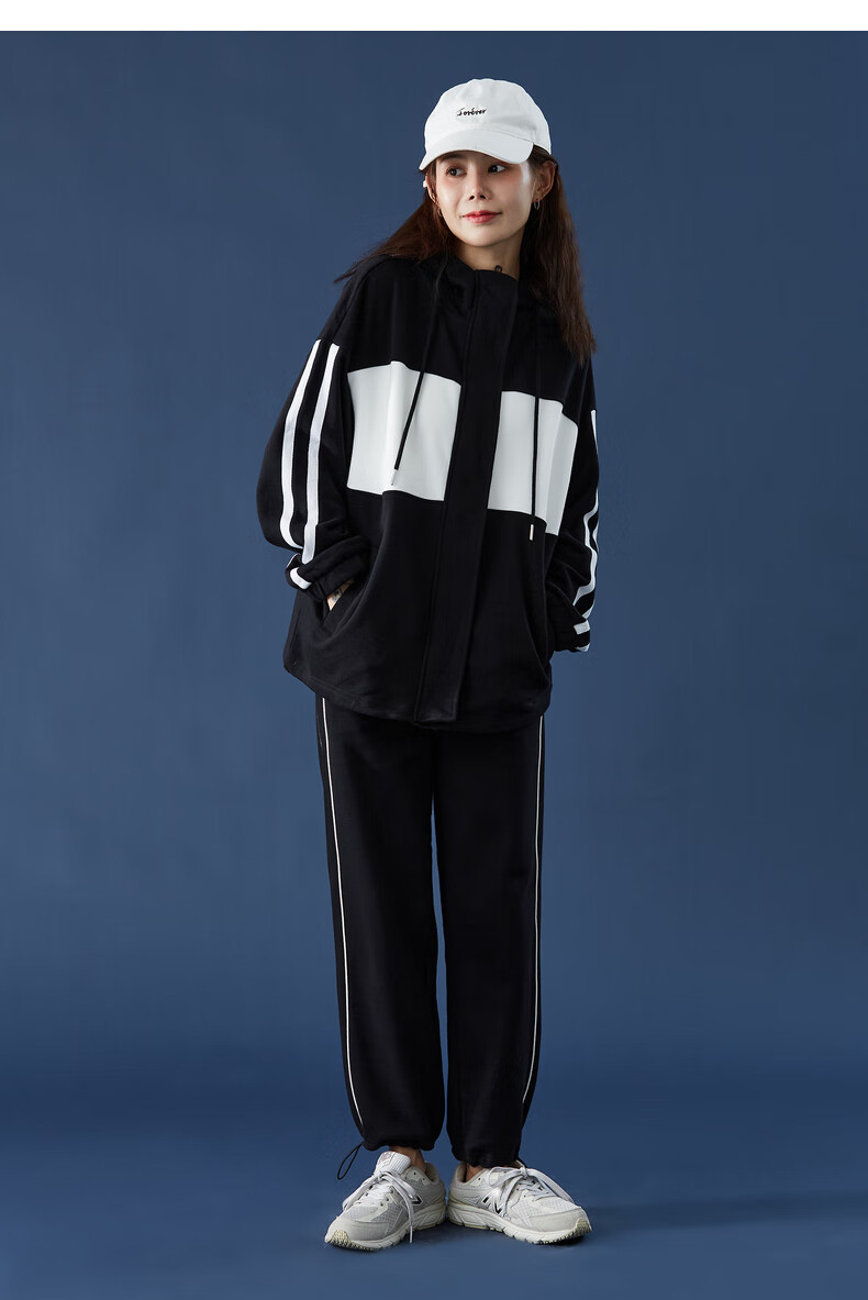 TonLion women's patchwork contrasting color cardigan hooded sweatshirt jacket top/black M