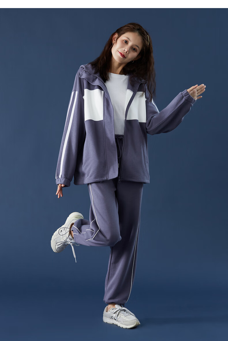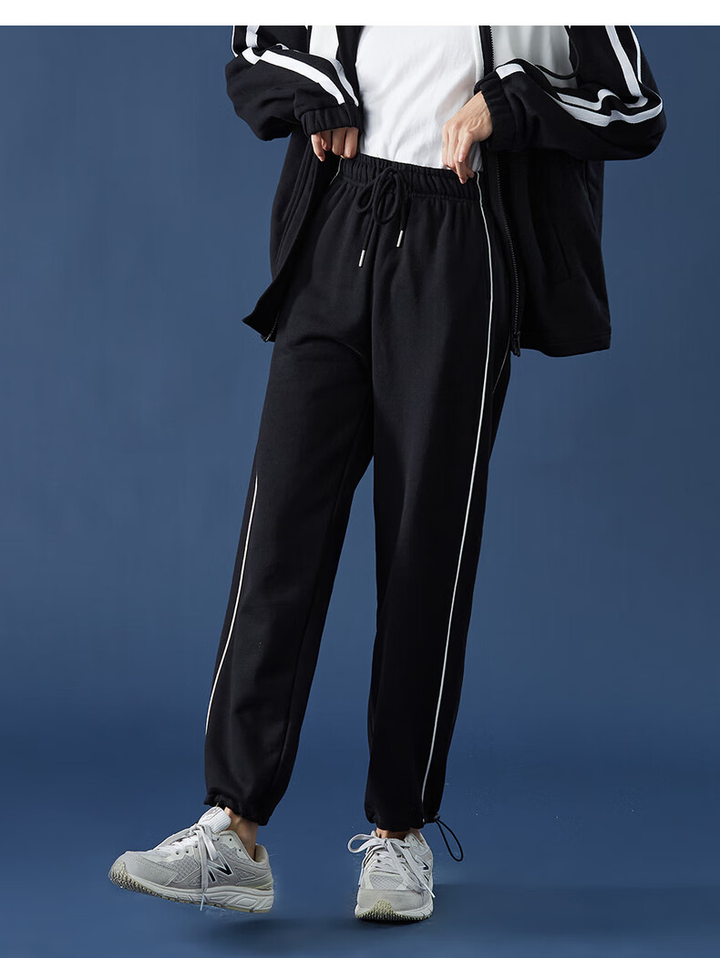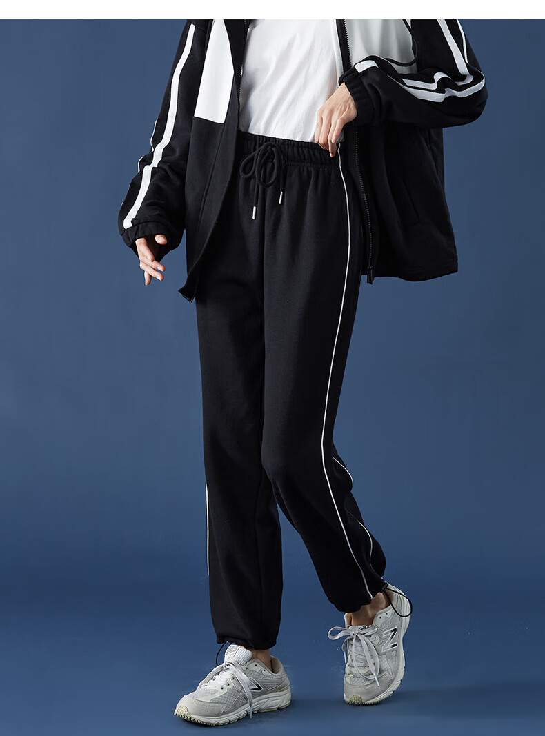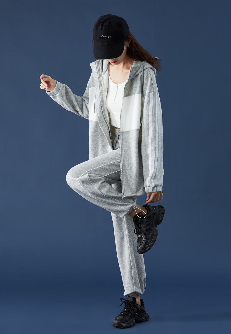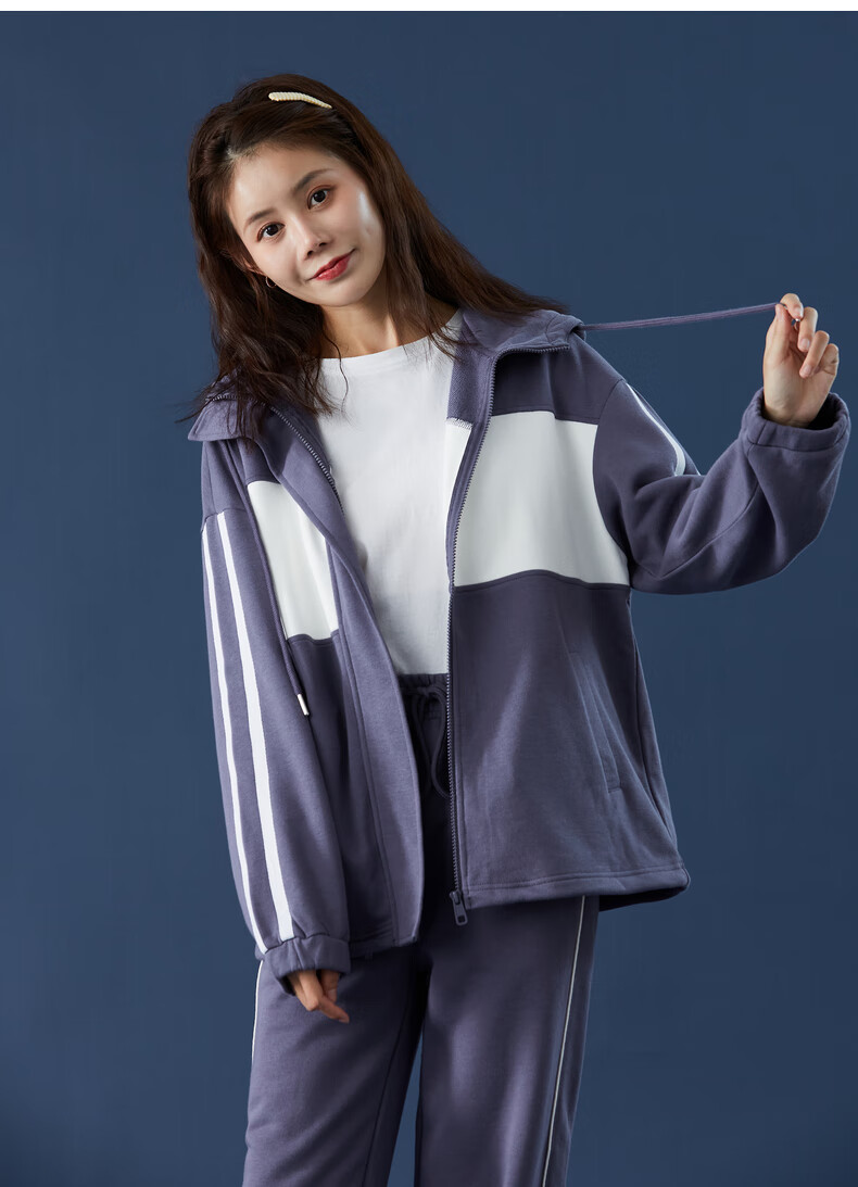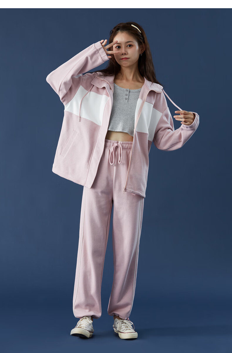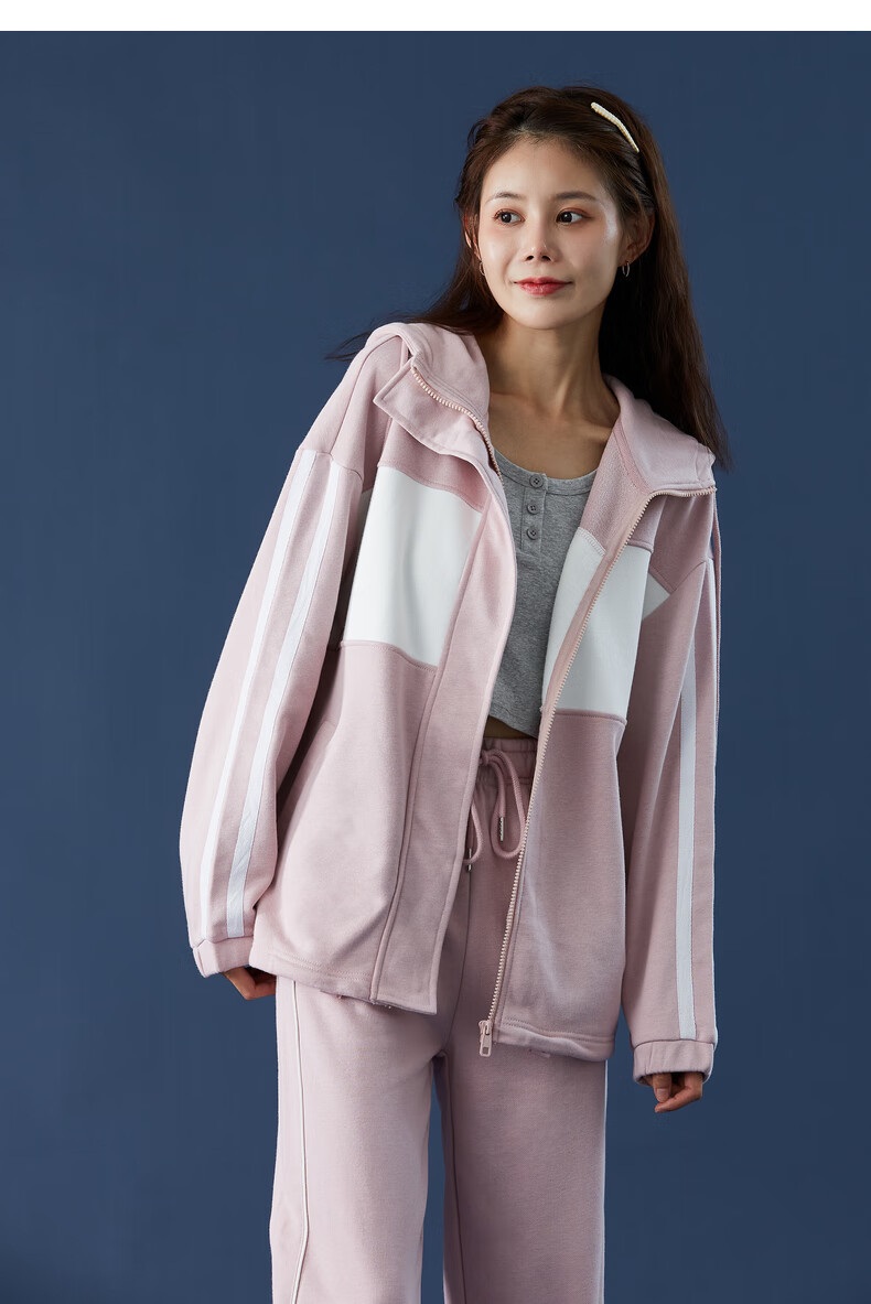 TonLion women's patchwork contrasting color cardigan hooded sweatshirt jacket top/black M