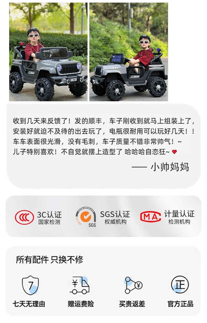 WORK BABY children's electric car four-wheel off-road car that can sit on a person with remote control child baby baby toy four-wheel drive gift high-end red dual drive + 12V4 battery + remote control