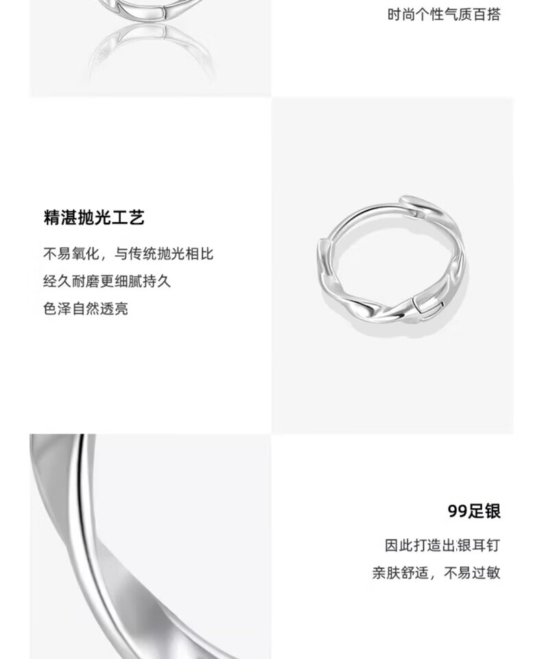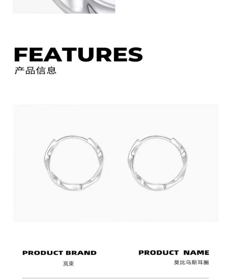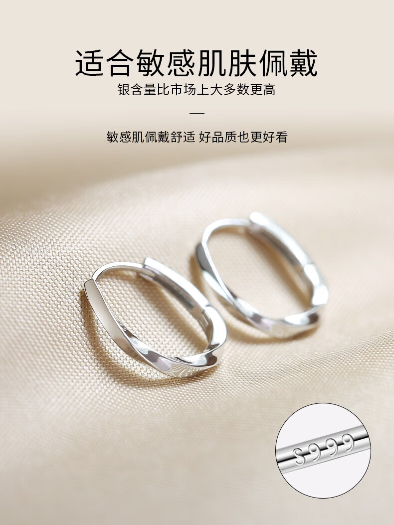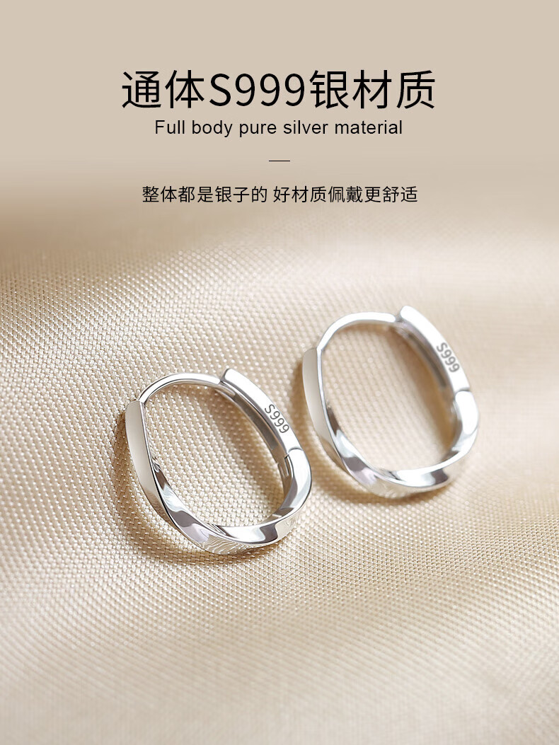 Lanshu (LANSHU) 999 sterling silver earrings for women Mobius ear buckle pierced earrings plain hoop earrings for sleeping without removing pure silver earrings Mobius earrings s999