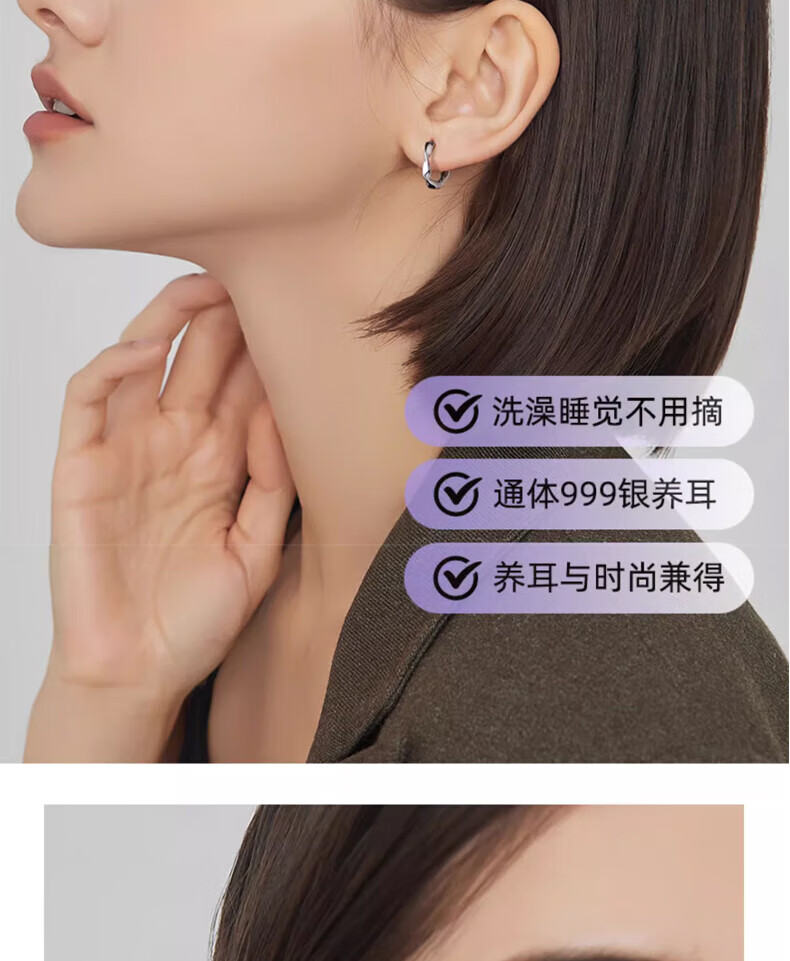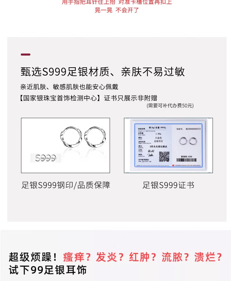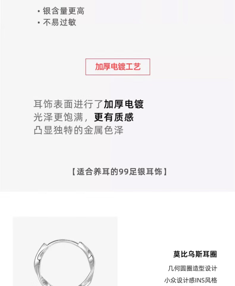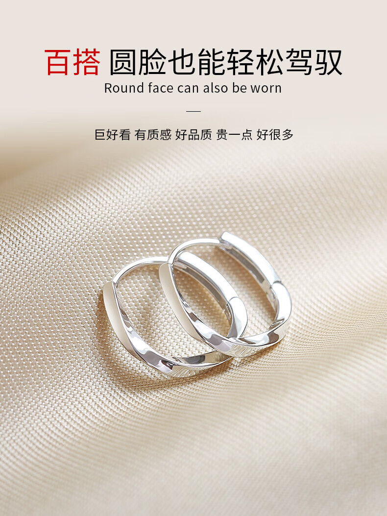 Lanshu (LANSHU) 999 sterling silver earrings for women Mobius ear buckle pierced earrings plain hoop earrings for sleeping without removing pure silver earrings Mobius earrings s999