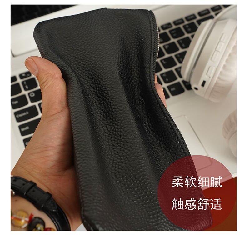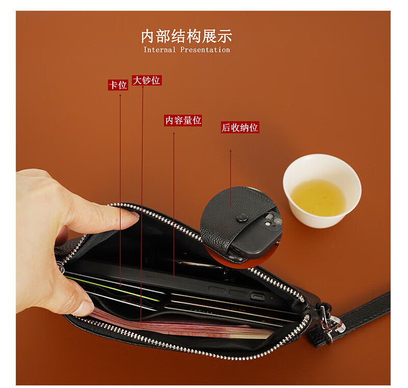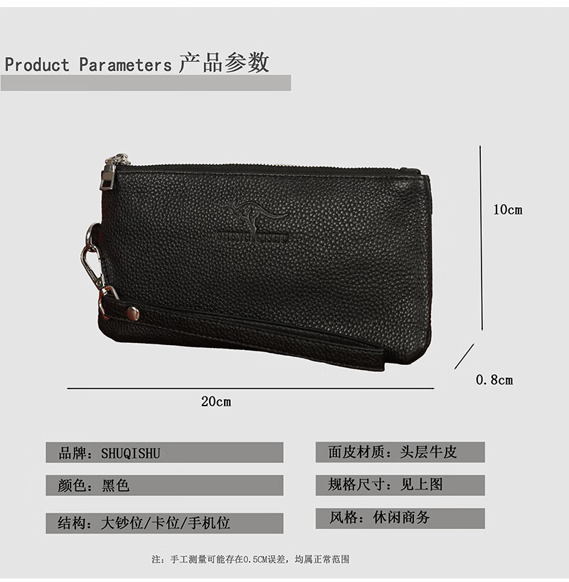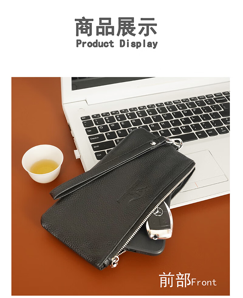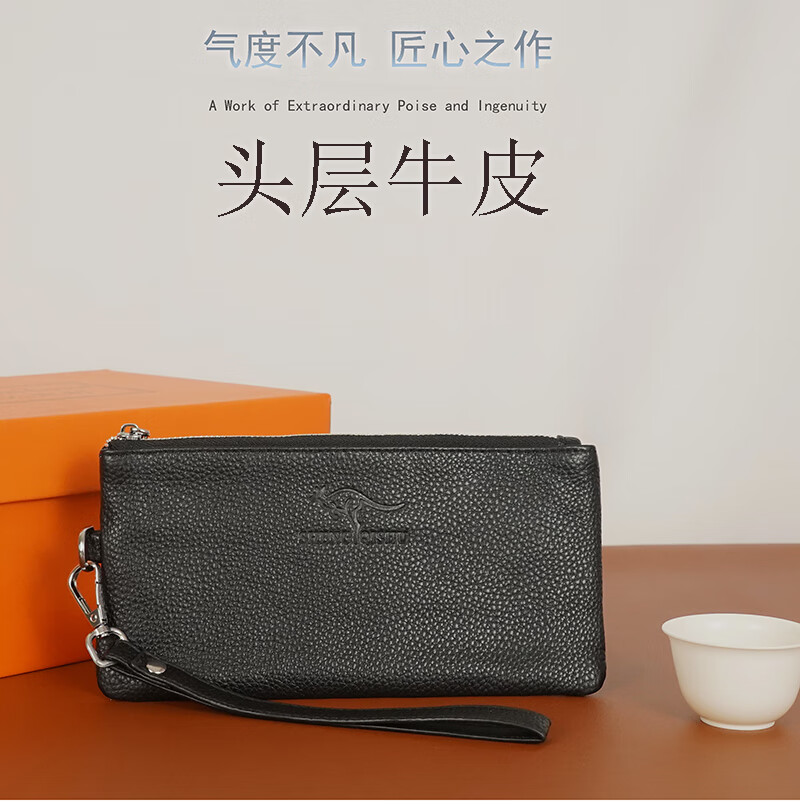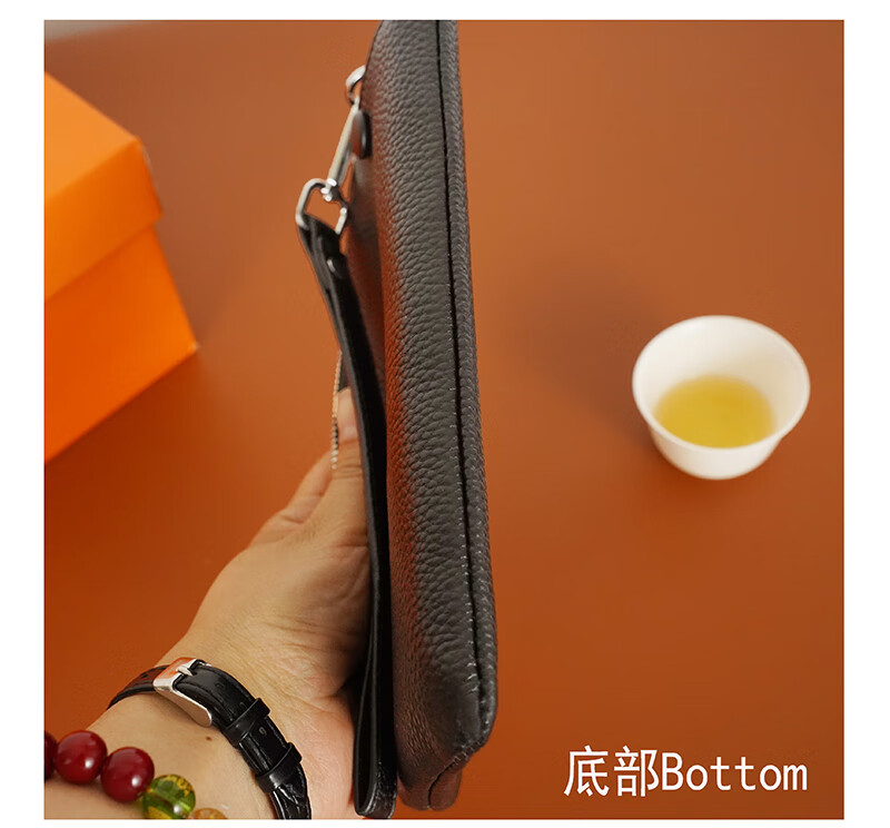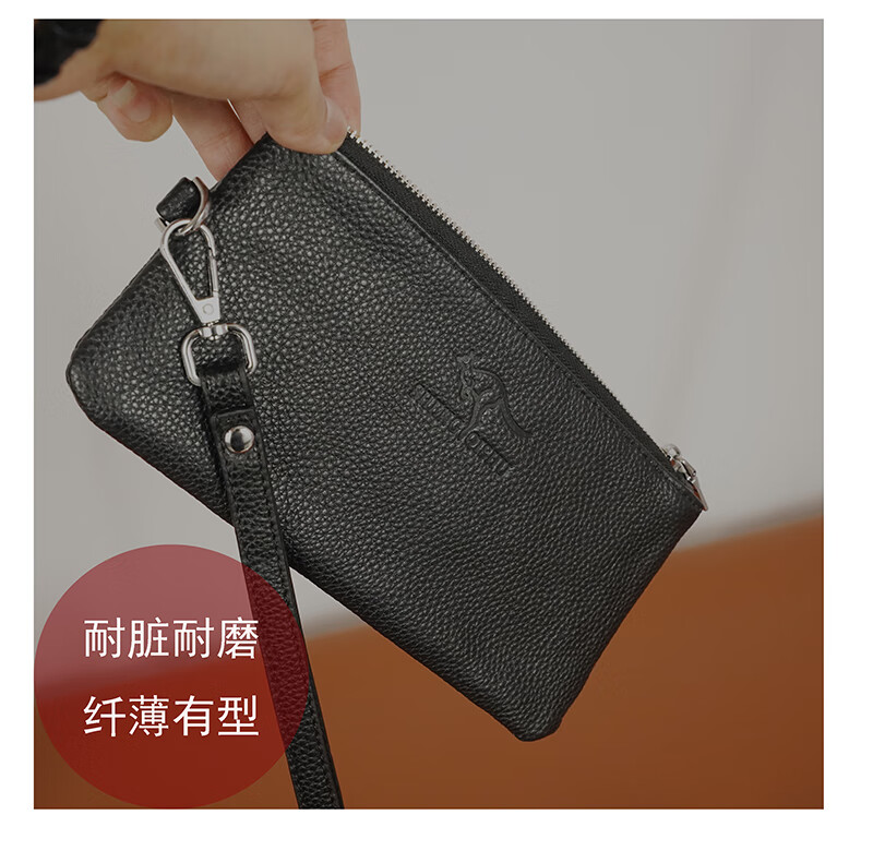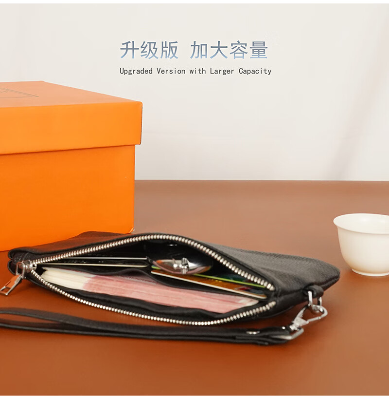 Men's Clutch Genuine Cowhide Large Capacity Clutch Bag Multifunctional ID Bag Bank Card Bag Coin Storage Bag Black Small Bag