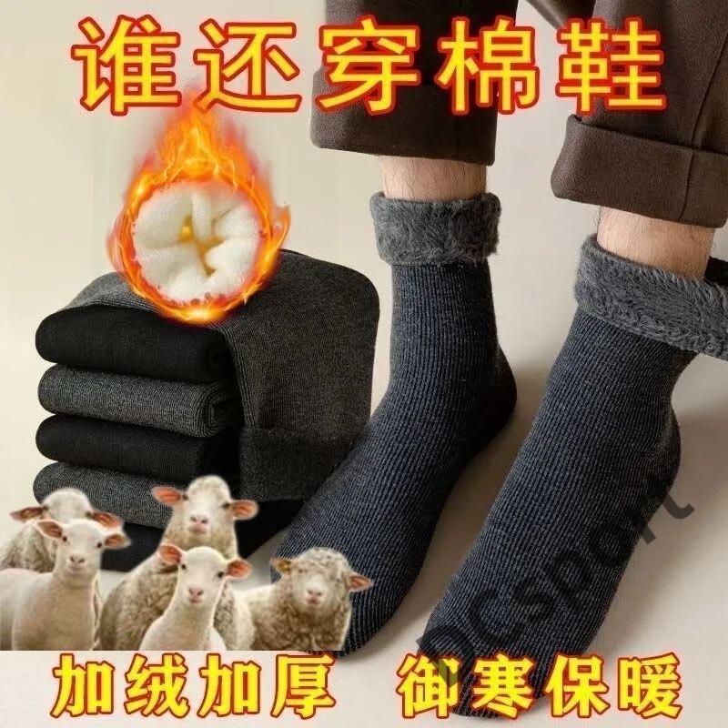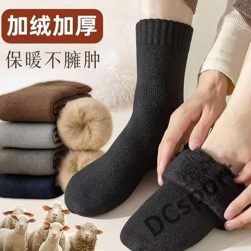 Hanoufei cold-resistant men's socks, men's winter mid-length socks, long socks, thickened long-tube wool socks, plus velvet, anti-odor, mid-section protection, black, thickened and warm, 1 pair