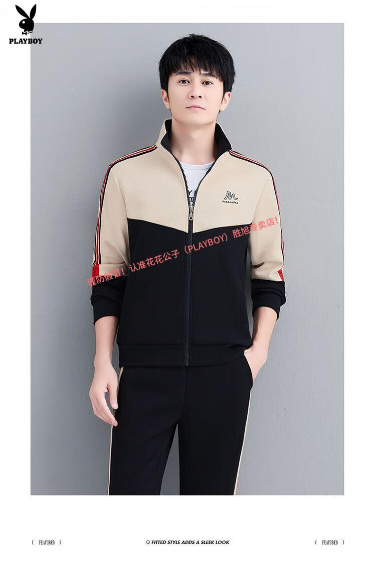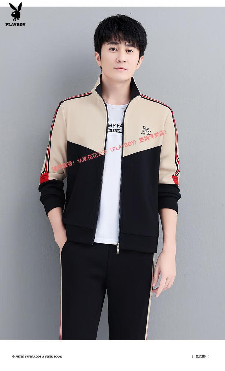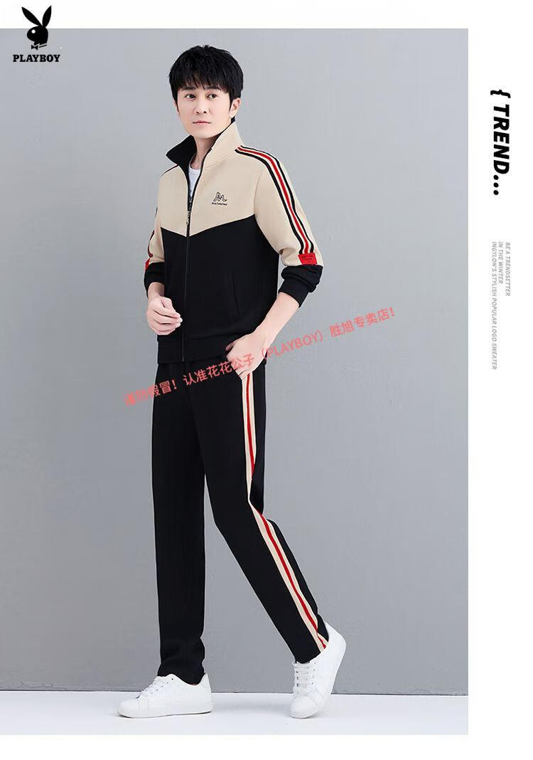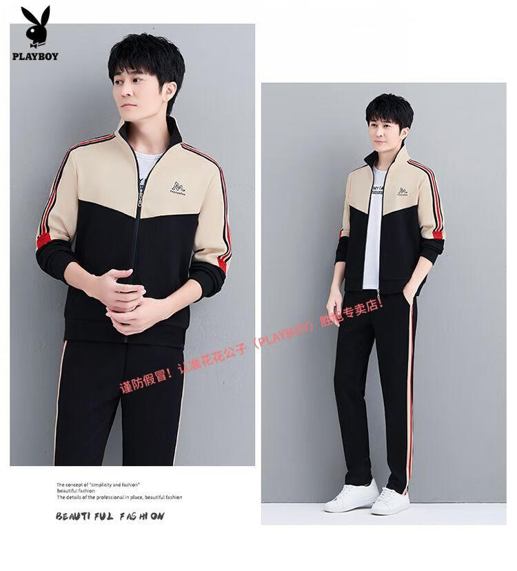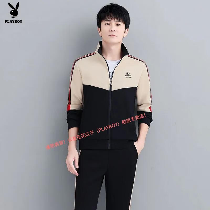 Playboy Official Pure Cotton Sports Suit Men's Casual Two-piece Jacket Cardigan Sweater Men's Running Pants Clothes Set 980 Khaki Jacket + Pants
