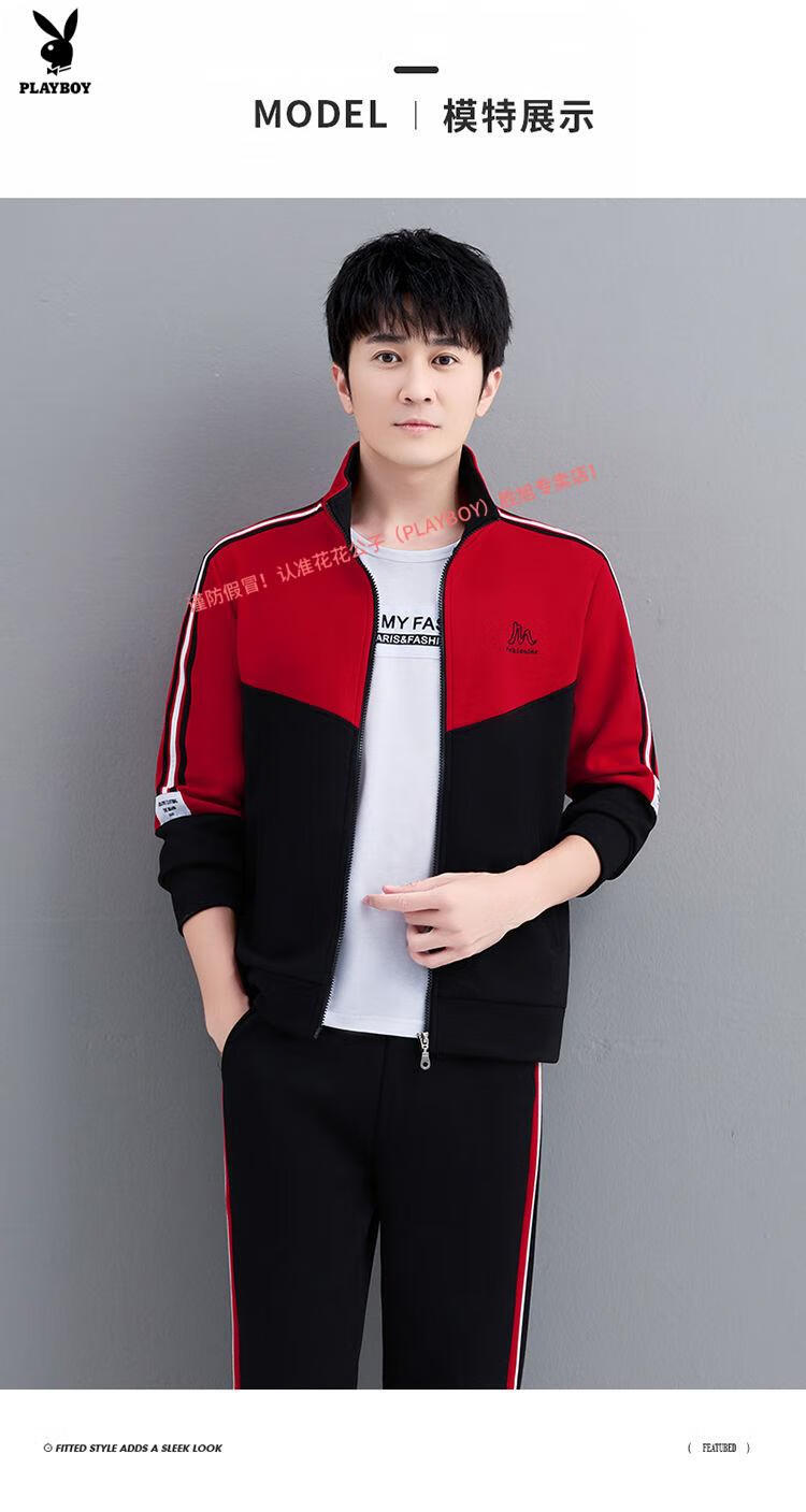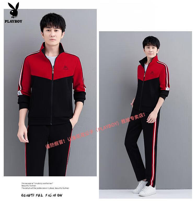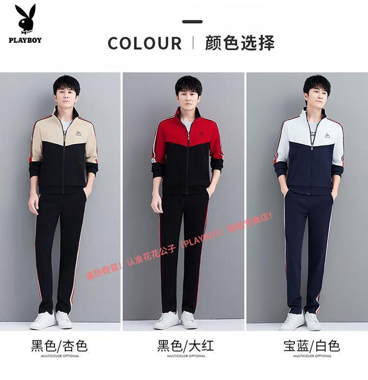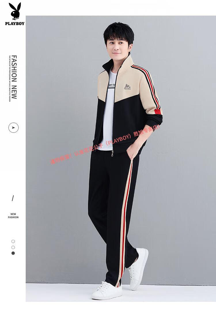 Playboy Official Pure Cotton Sports Suit Men's Casual Two-piece Jacket Cardigan Sweater Men's Running Pants Clothes Set 980 Khaki Jacket + Pants