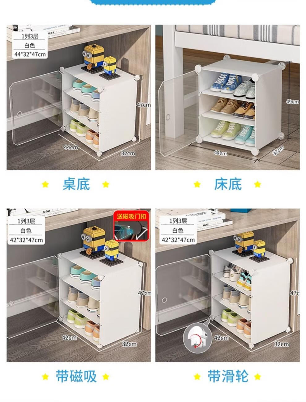 MieLanat college dormitory shoe box storage box transparent shoe storage artifact under the table folding shoe rack small dust-proof shoe cabinet 1 column 3 layers special price 30x30x40cm