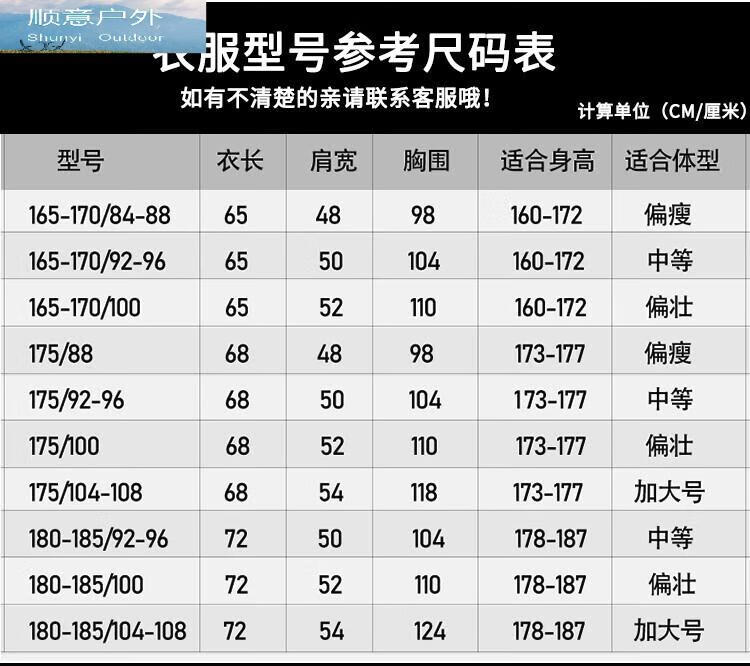 China (cm) 165 / 88-90 170 / 96-98 175 / 108-110 180 / 118-122 185 / 126-130