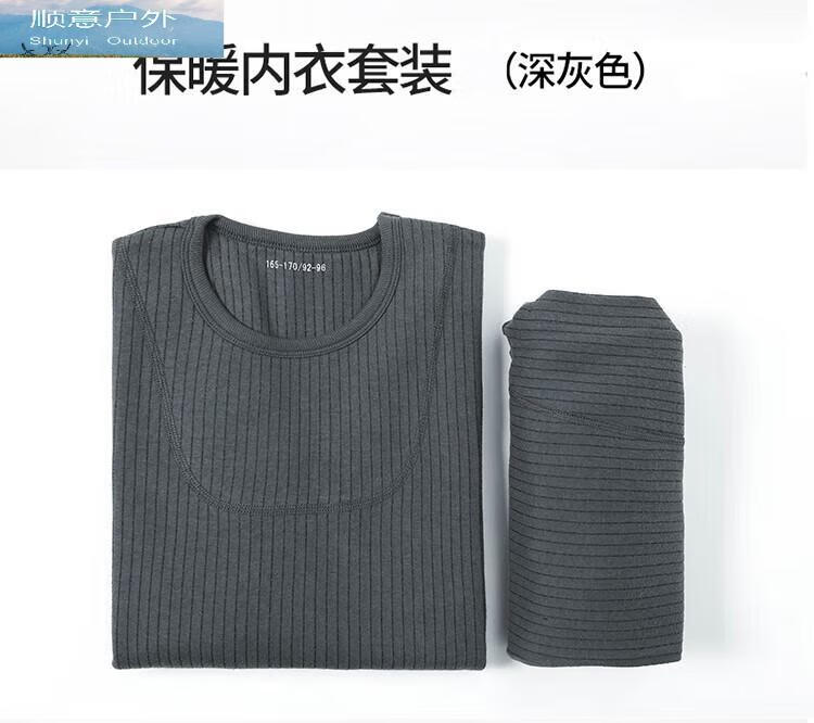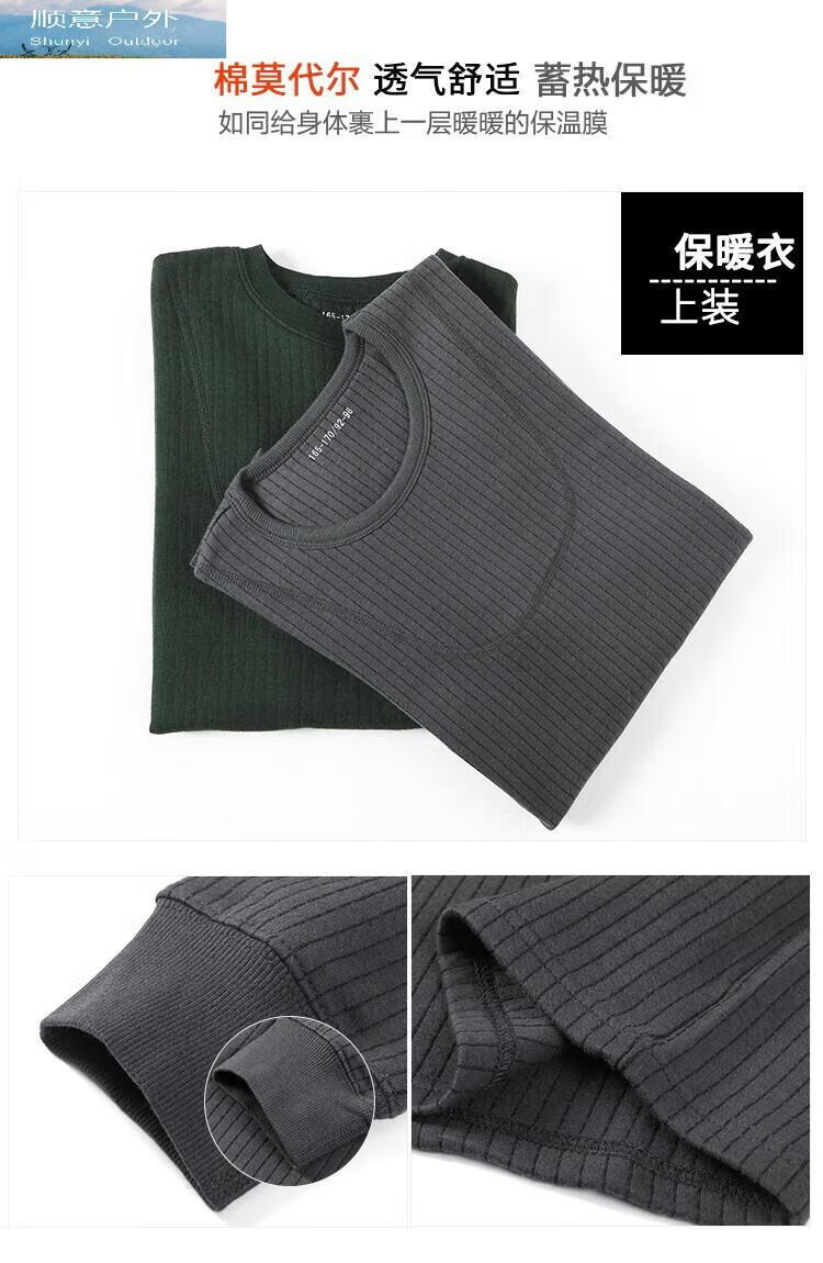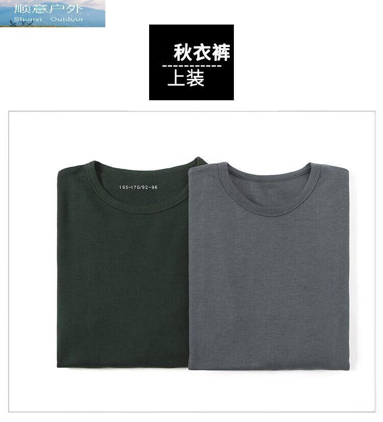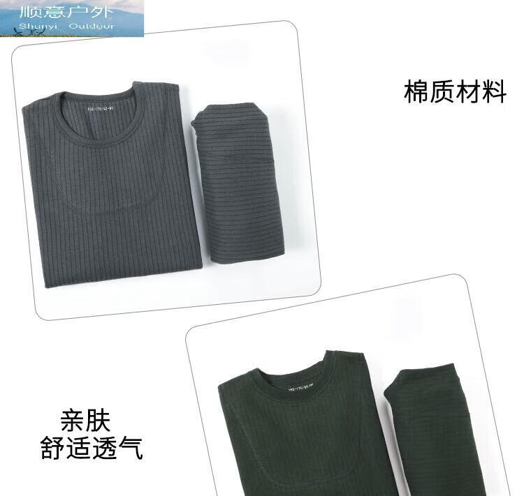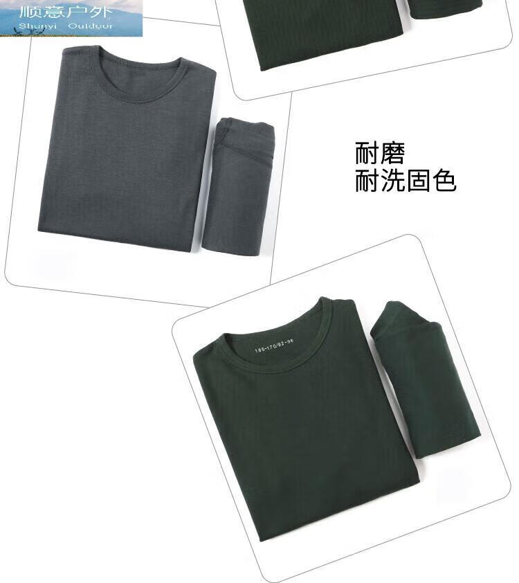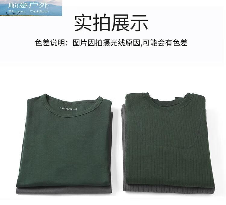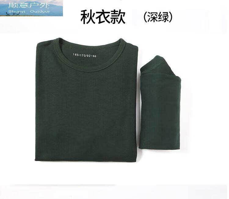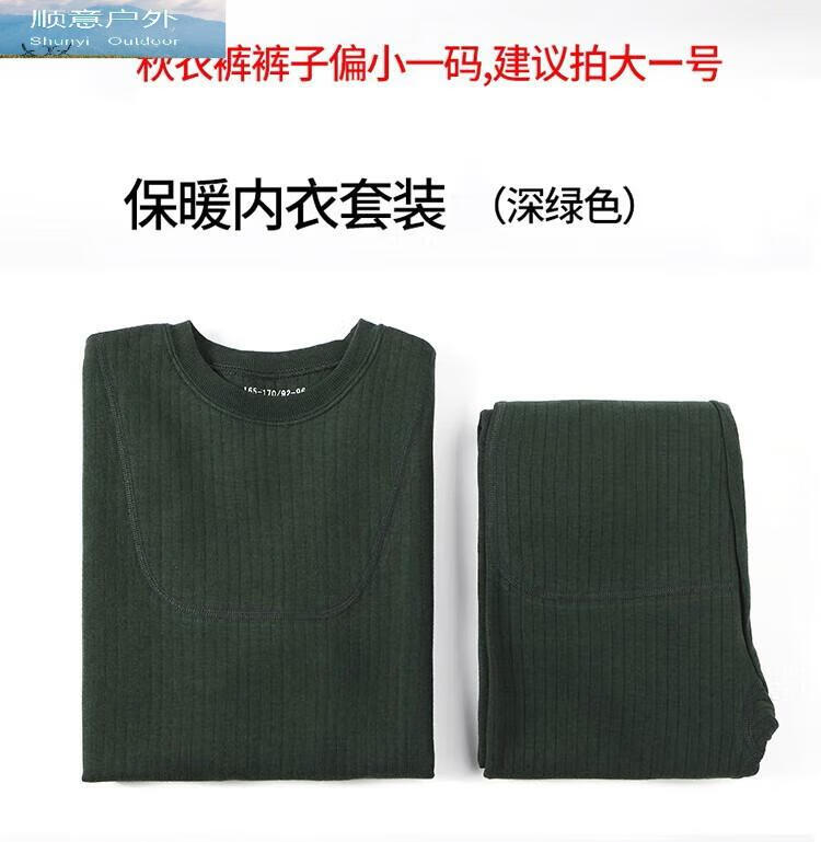OUOETY new style autumn clothes and autumn trousers set thermal underwear men's thickened cold-proof and warm round-neck military underwear set autumn clothes and trousers dark green 175/92-96