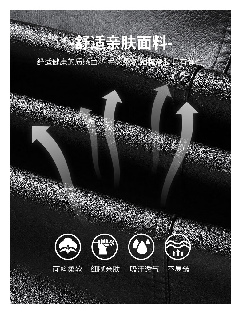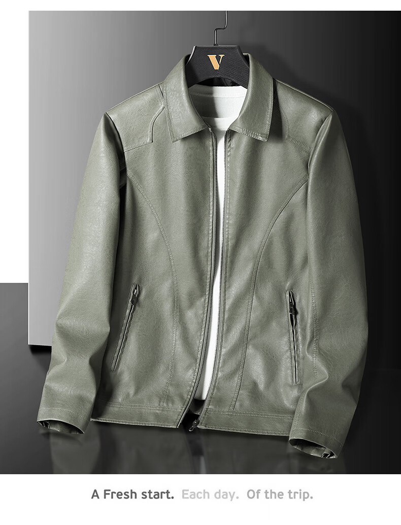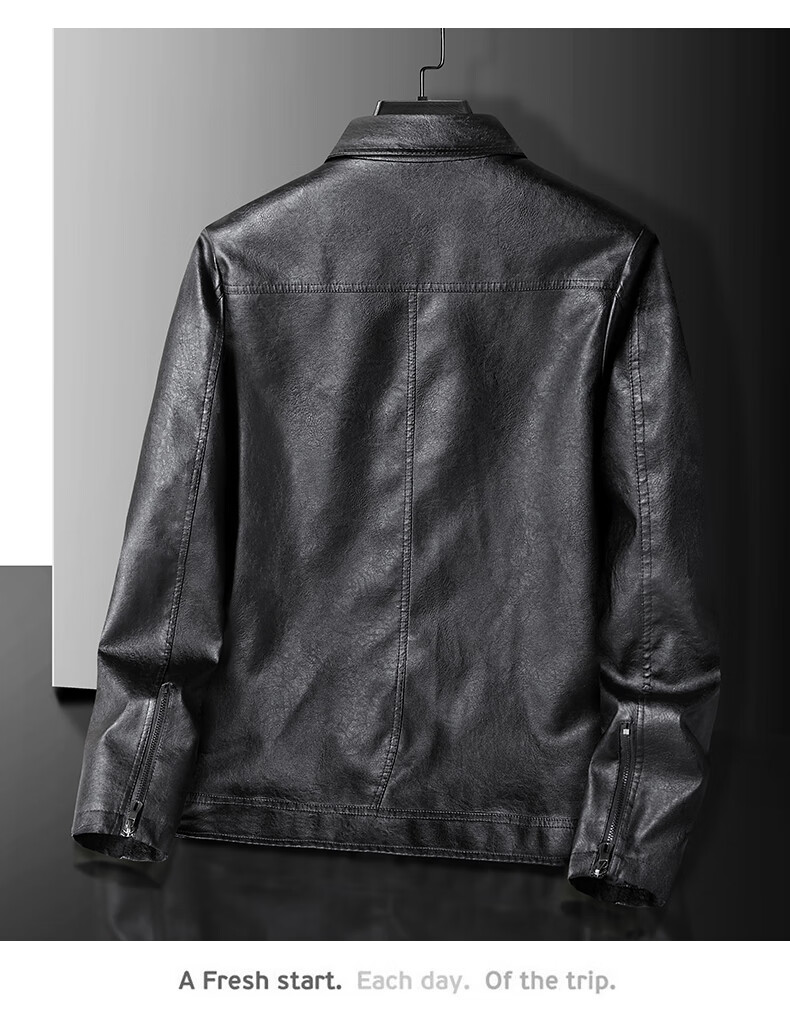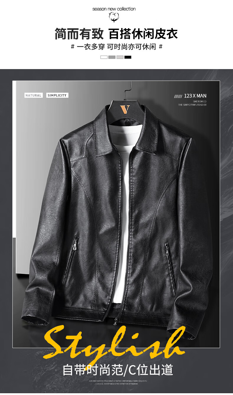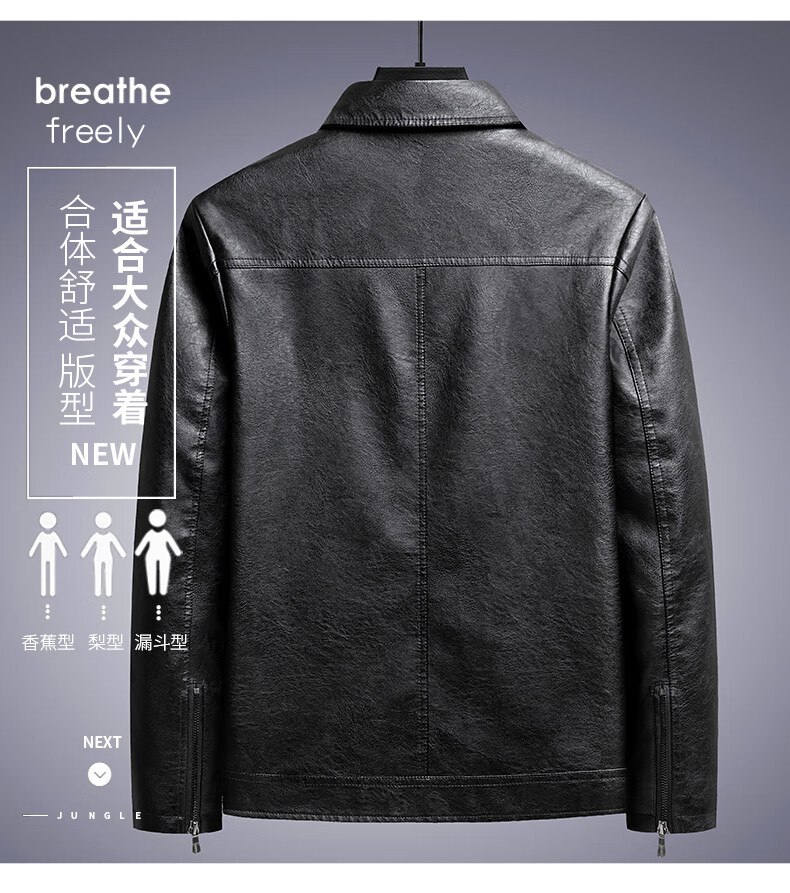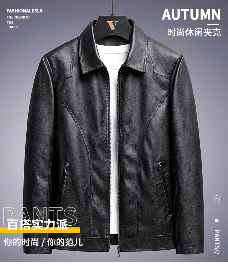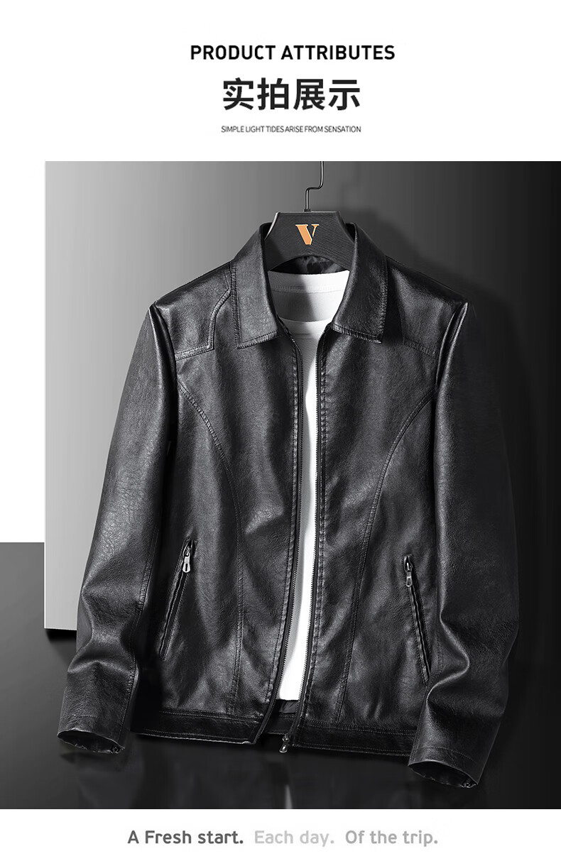 Classic car black leather jacket men's spring and autumn casual lapel trendy handsome jacket plus fat plus size fat man winter coat black regular M