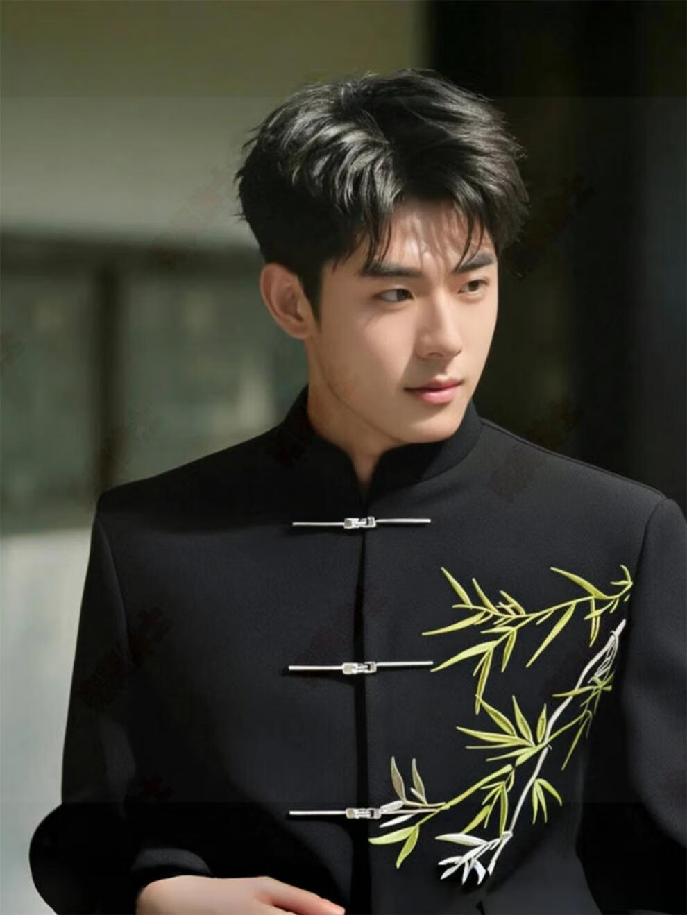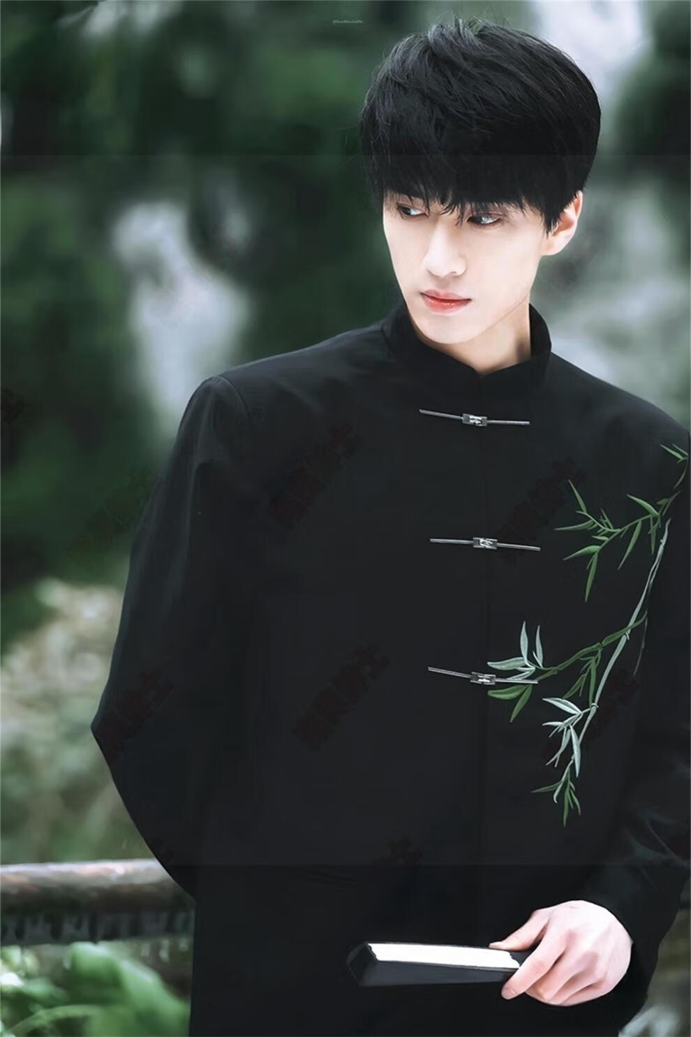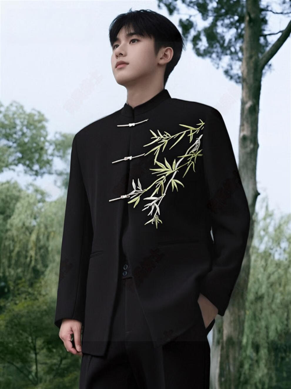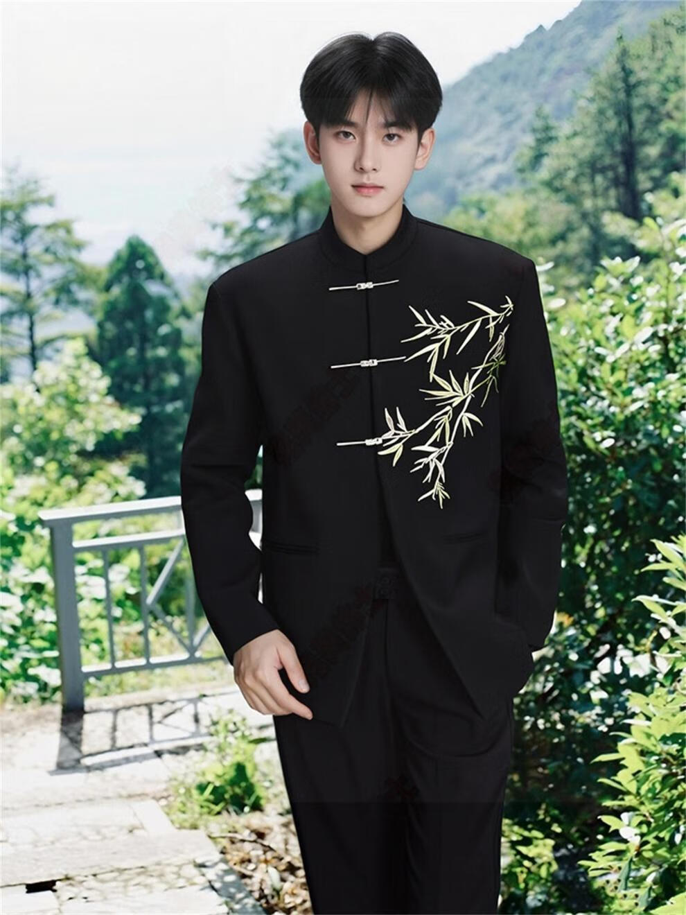 Woody Denton (WODYDATON) New Chinese tunic suit bamboo embroidery aircraft button stand collar suit jacket men's Tang suit ancient style Han suit suit jacket-black trousers-white shirt 2XL 155-170Jin Jin equals 0.5 kg