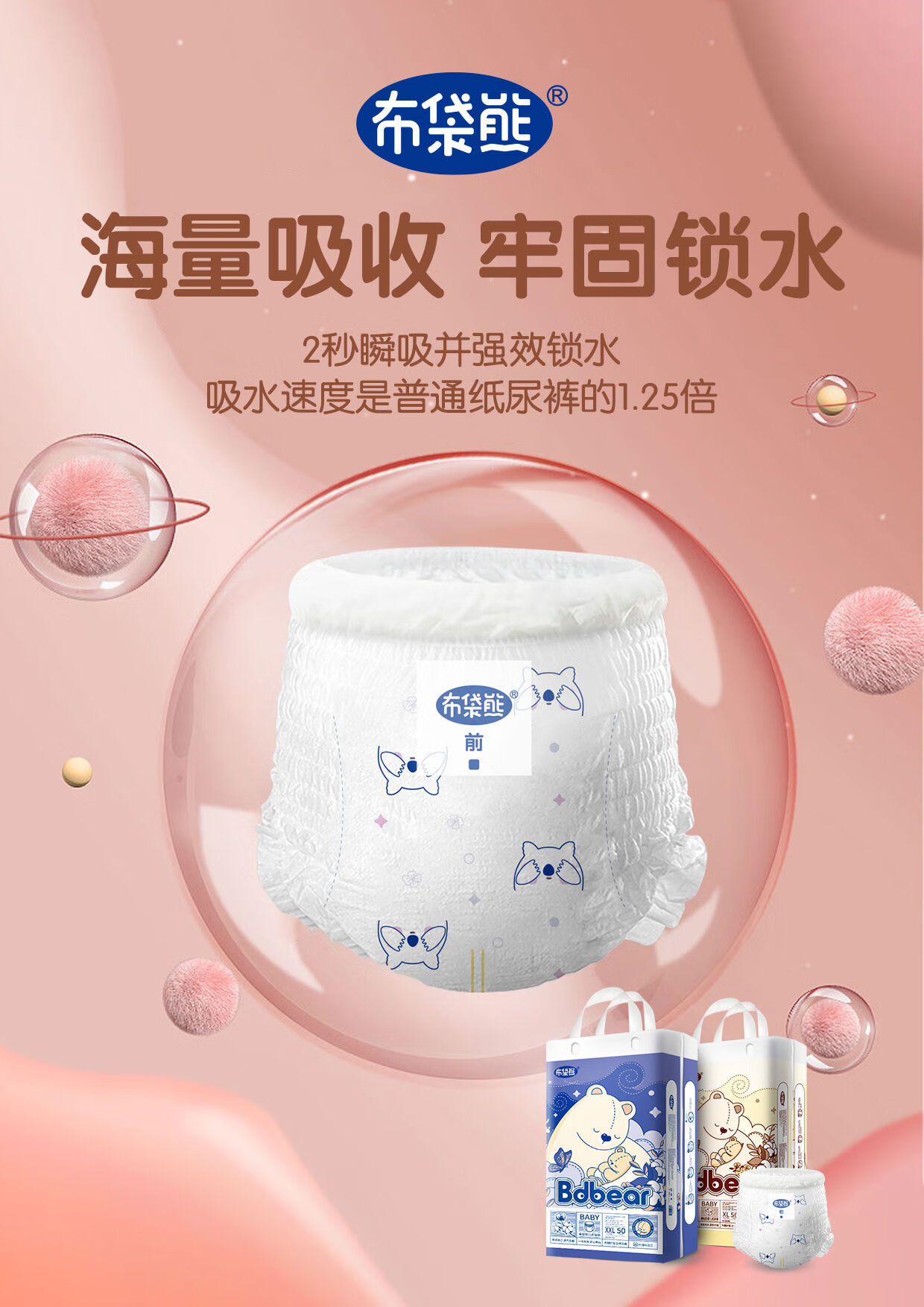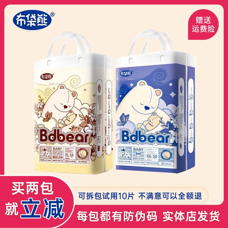 Yingqibao Wombat baby pull-up pants baby diapers dry and breathable children's toddler pants bdbear diapers S size diapers 76 pieces can be scanned for authenticity 1 pack
