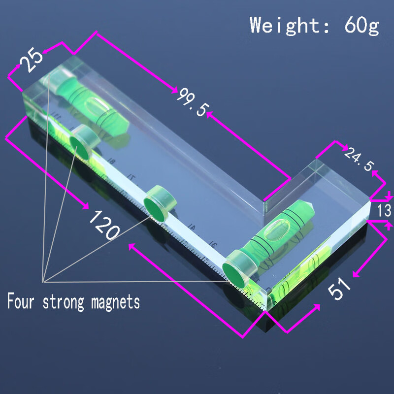 LDVEP fully transparent strong magnetic L-shaped spirit level 120mm green bubble