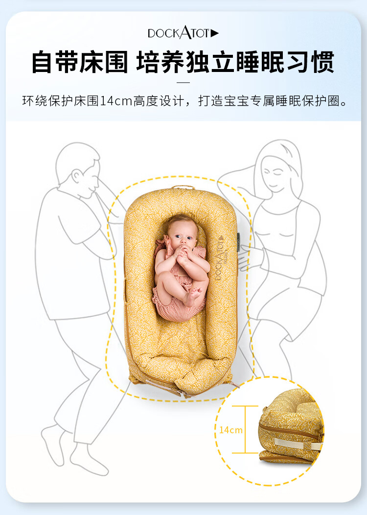DOCKATOT Dokato bed-in-bed baby relieves jumps and soothes sleep artifact baby portable newborn bed made in Estonia - small size - little bee (0-8 months)