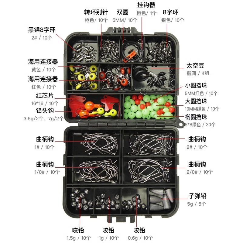 Xionghuo Haiji Fishing Accessories Fishing Gear Box Set Jiji Fishing Box Sea Fishing Small Accessories Luya Accessories Fishhook Texas Fishing Group Ji 205 Pieces