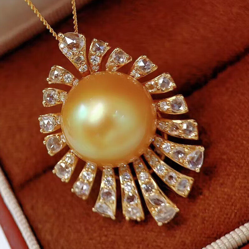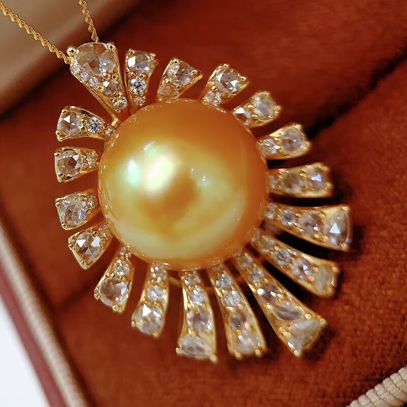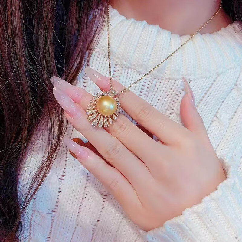 OMIGHTY South Sea Gold Pearl Pendant Seawater Pendant Gold Diamond Light Luxurious Clavicle Chain for Girlfriend Gift 145mm 4 Points 5mm