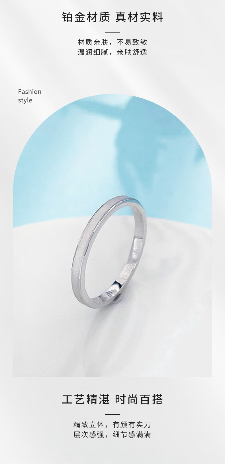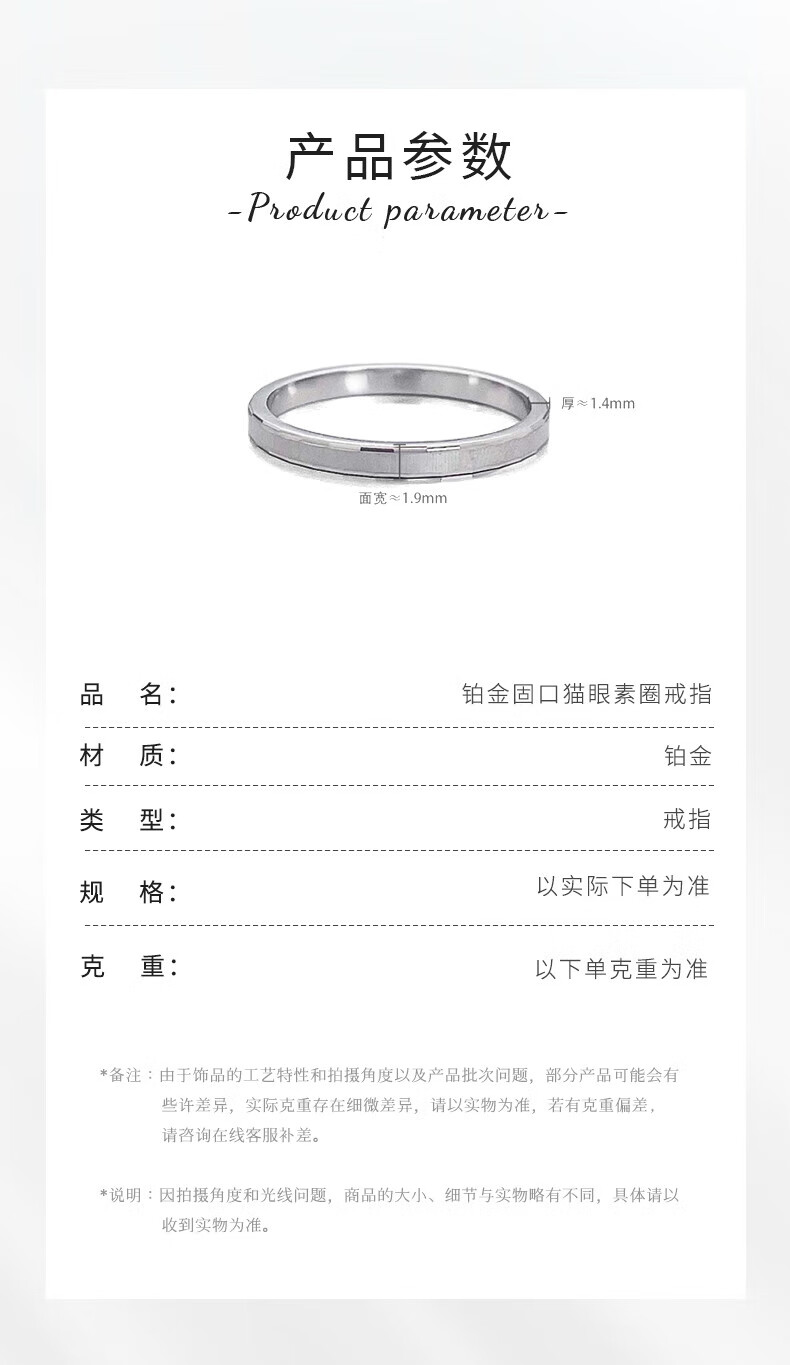 Laofu gold platinum fixed mouth cat eye plain ring, simple and versatile plain ring, about 2.5g, ring number 13