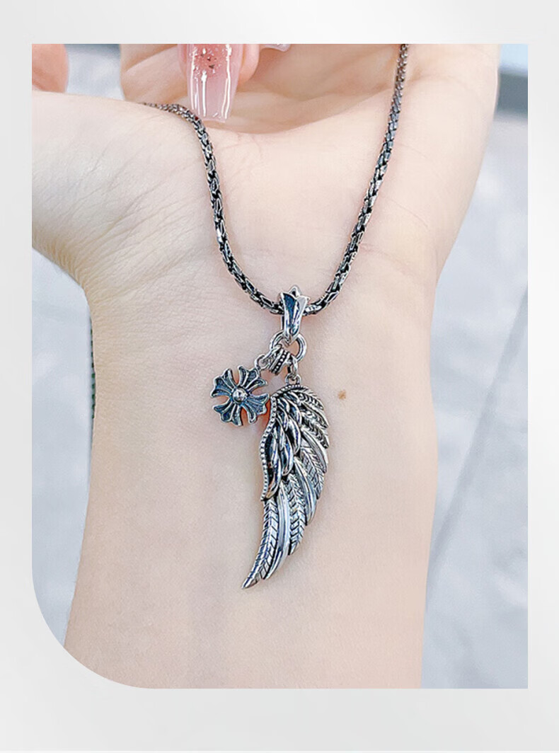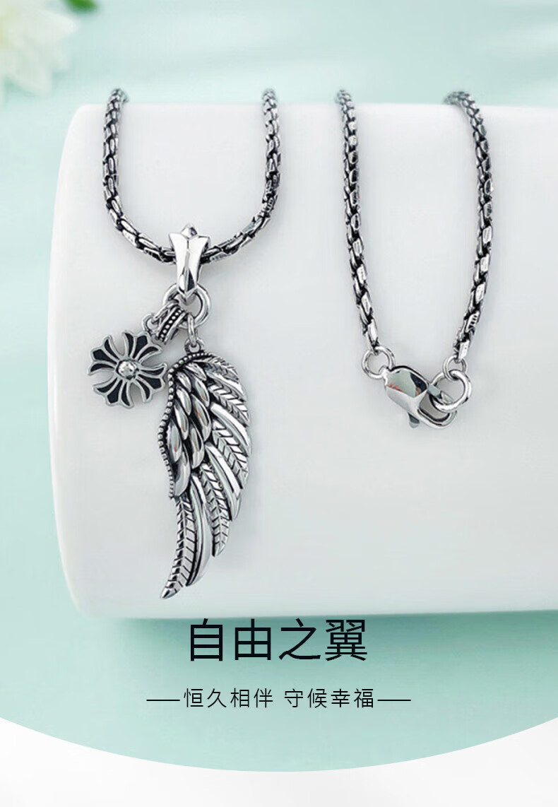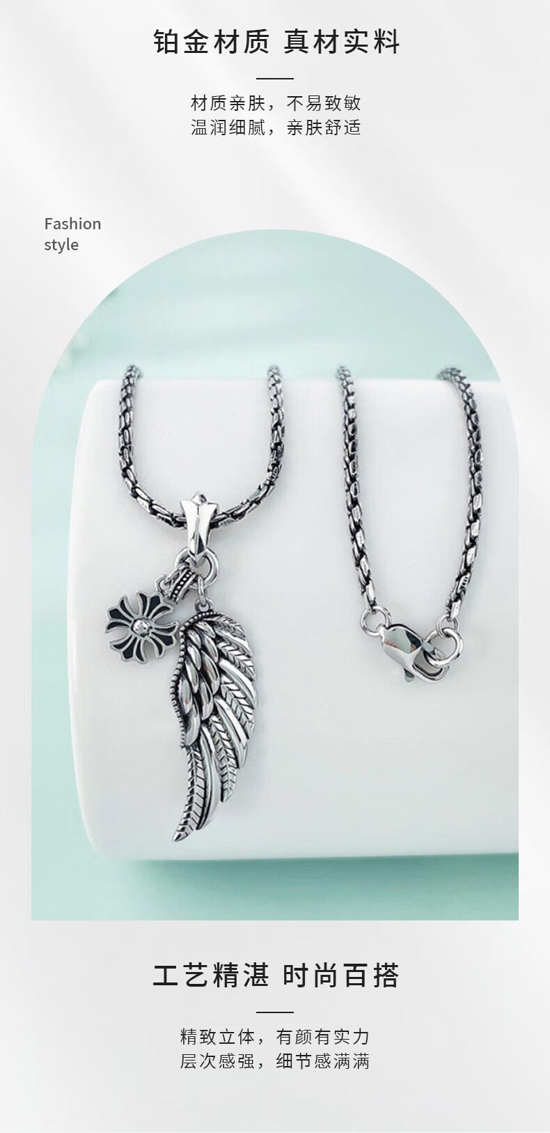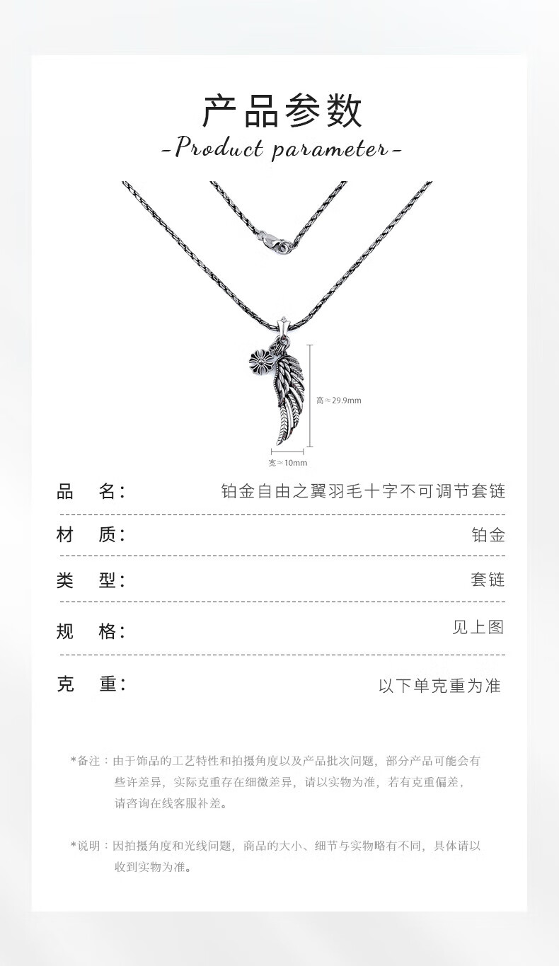 Laofu gold platinum necklace pt950 Wings of Freedom Feather Iron Blood Cross Set Chain as a birthday gift for girlfriend and wife, about 28.15g