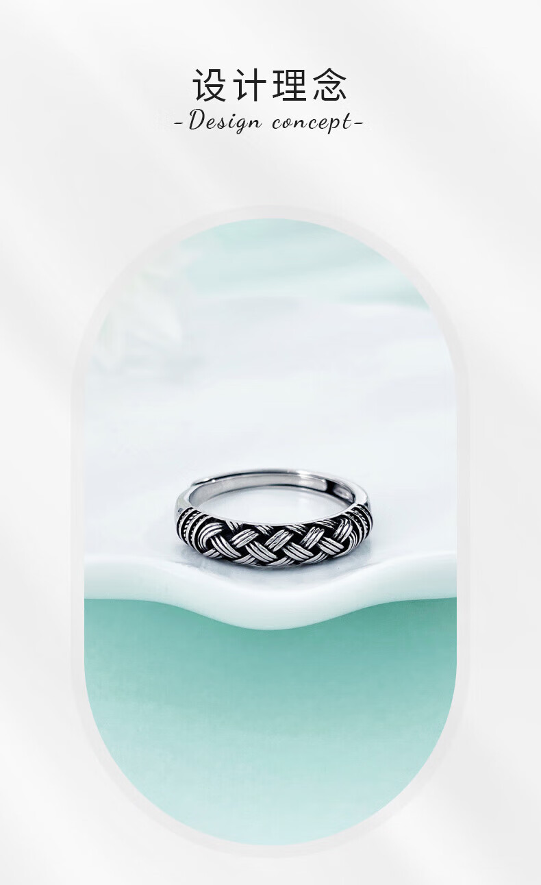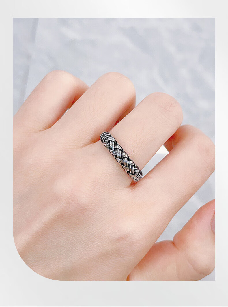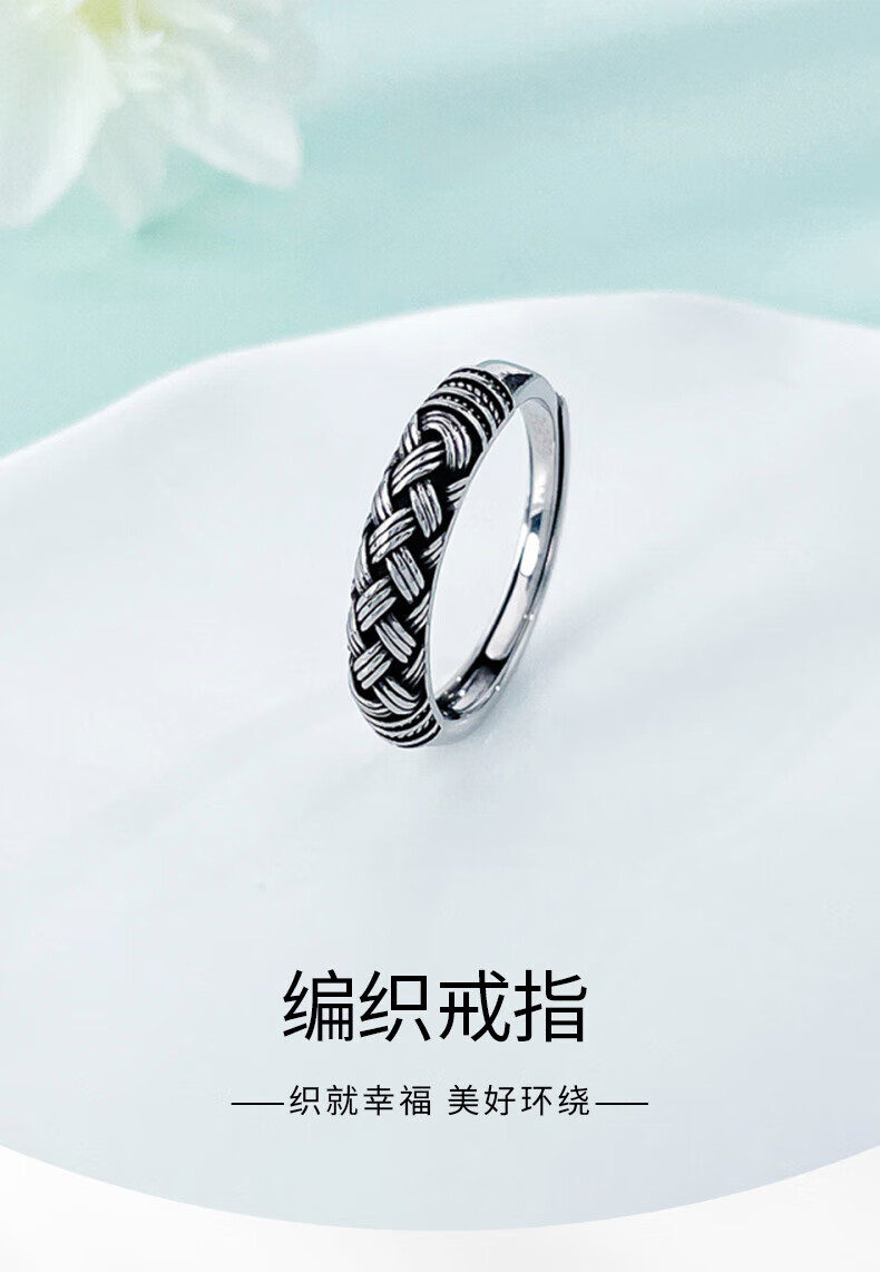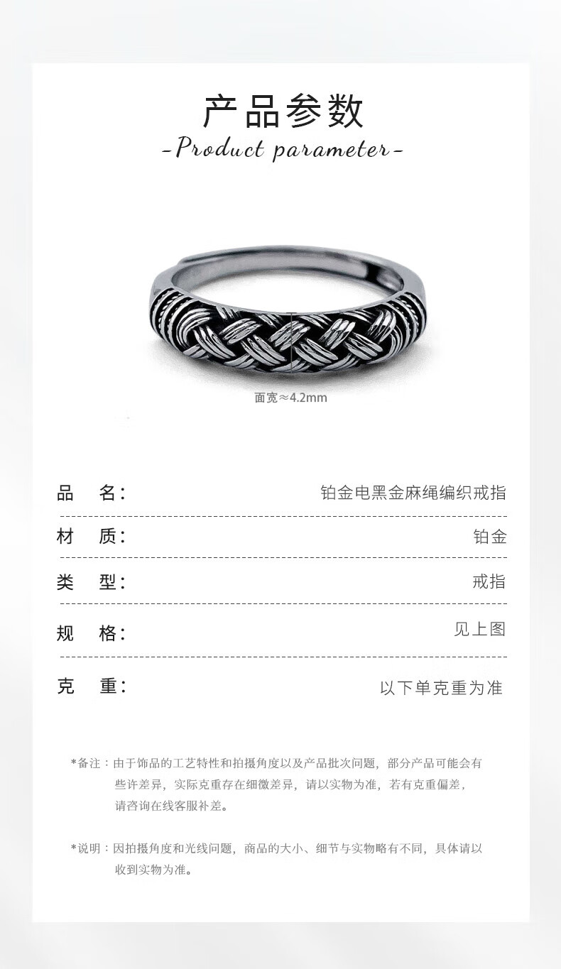 Laofu gold platinum ring pt950 electric black gold hemp rope braided ring men's birthday gift for boyfriend and husband, about 8.64g