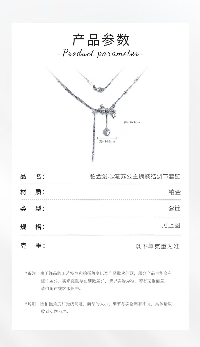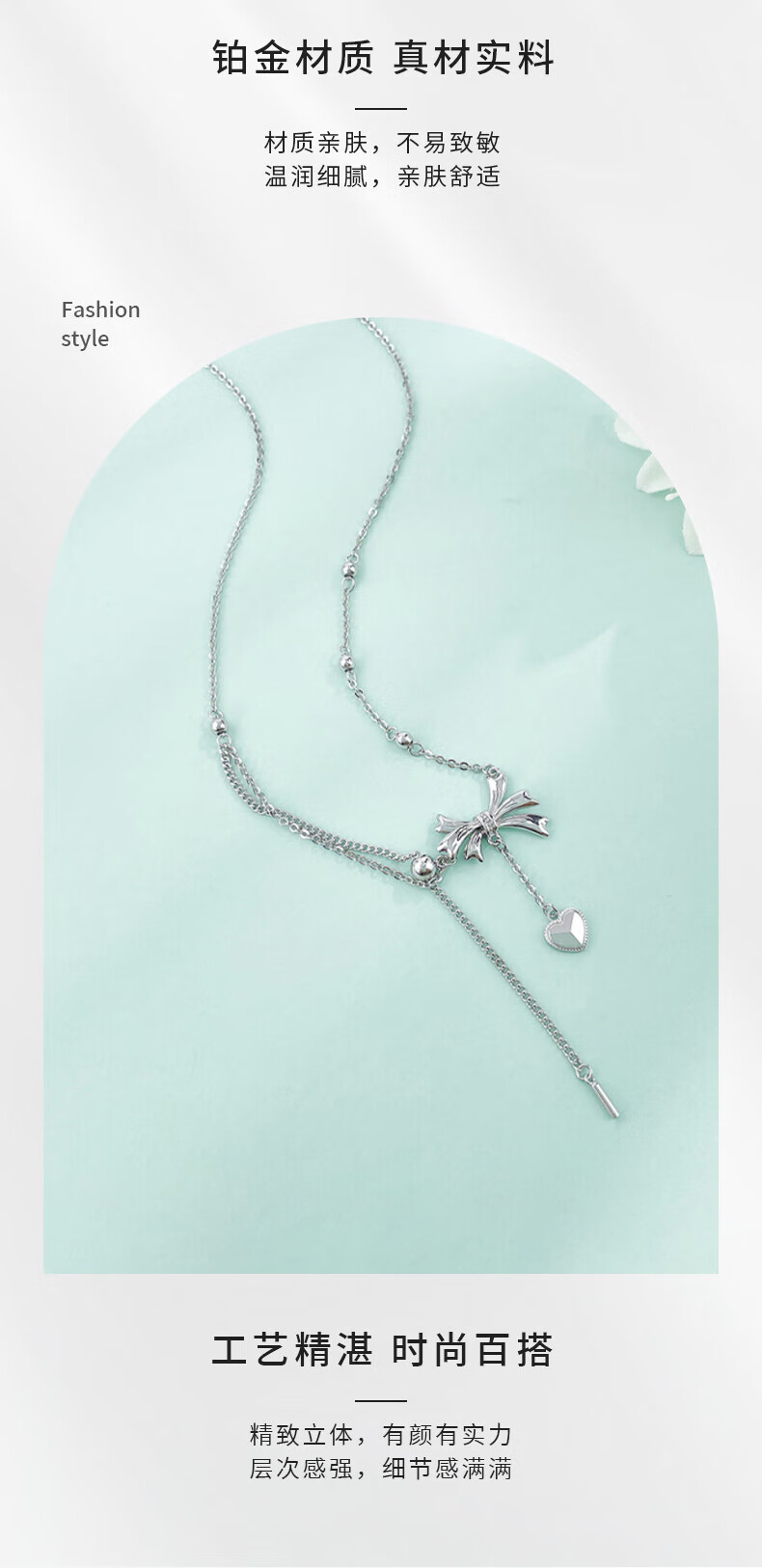 Laofu gold platinum necklace pt950 love tassel princess bow adjustment set chain as a birthday gift for girlfriend and wife, about 5.56g