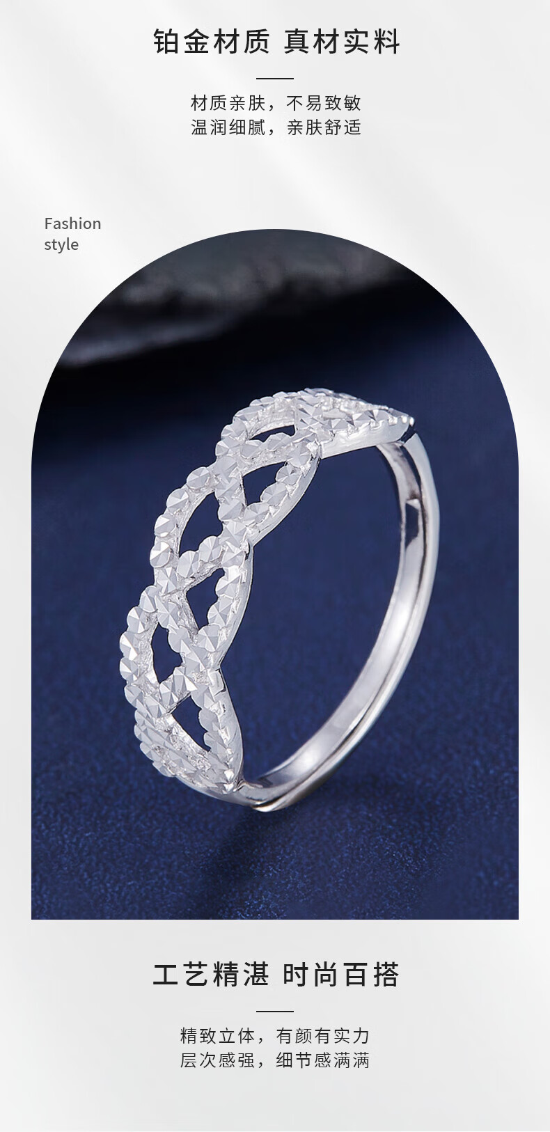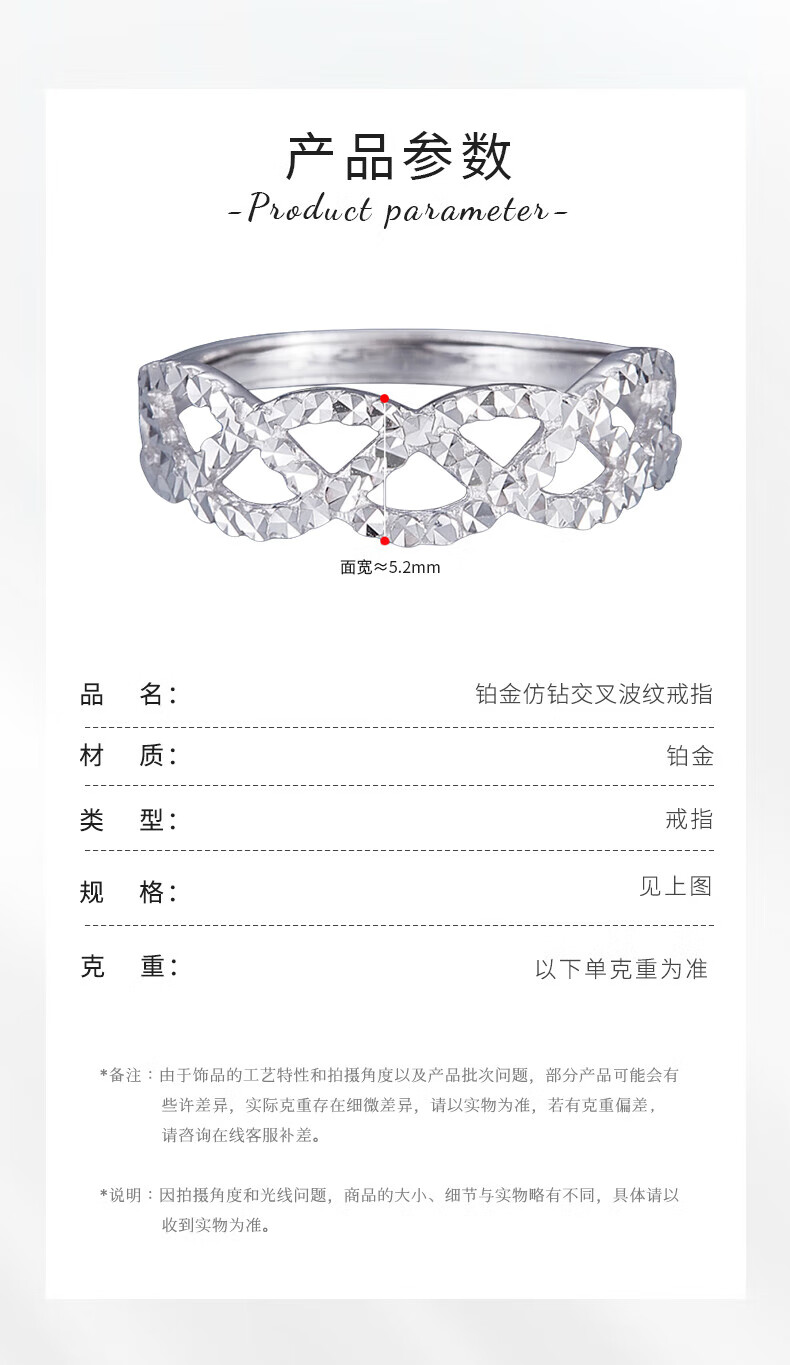 Laofu gold platinum imitation diamond cross ripple ring cross ripple ring about 2.4g