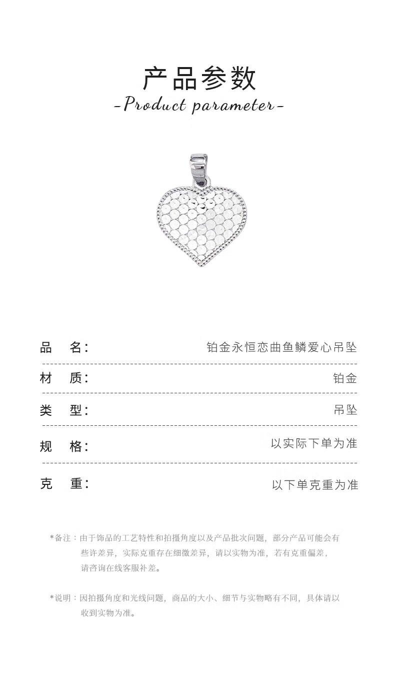 Laofu gold platinum eternal love song fish scale love pendant love pendant about 2.4g