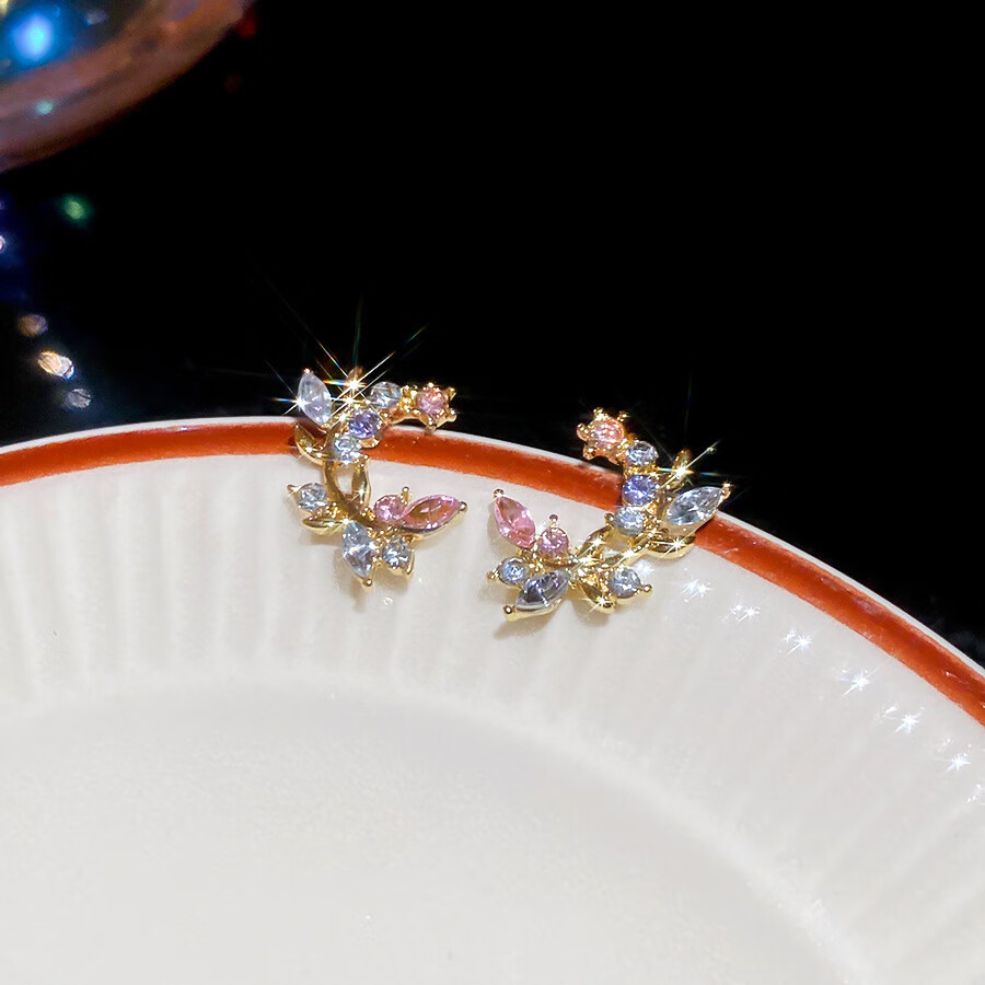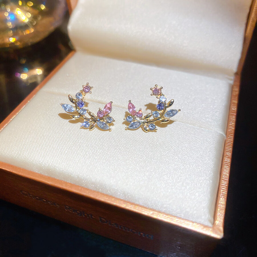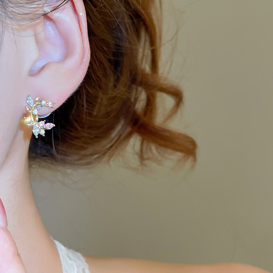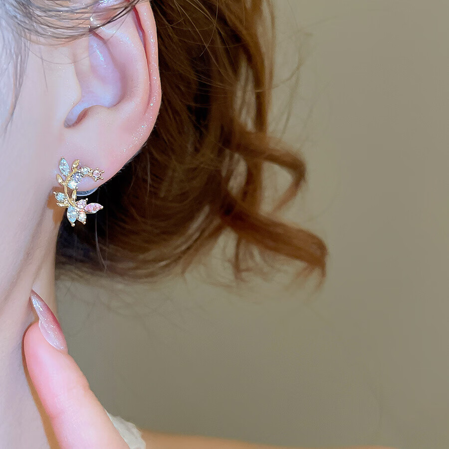 Silver needle super flash diamond branch earrings French retro temperament earrings earrings light luxury high-end earrings wholesale women's silver needle-regular-gold-twig