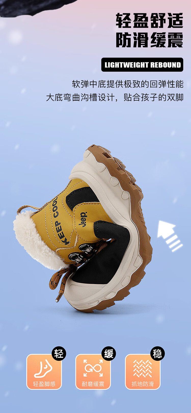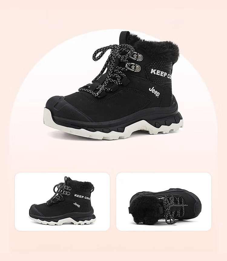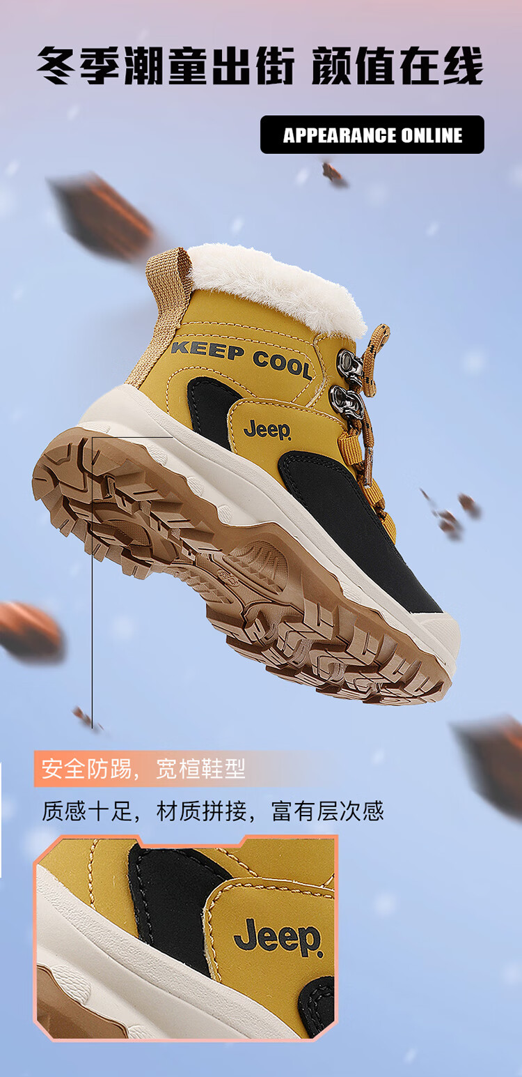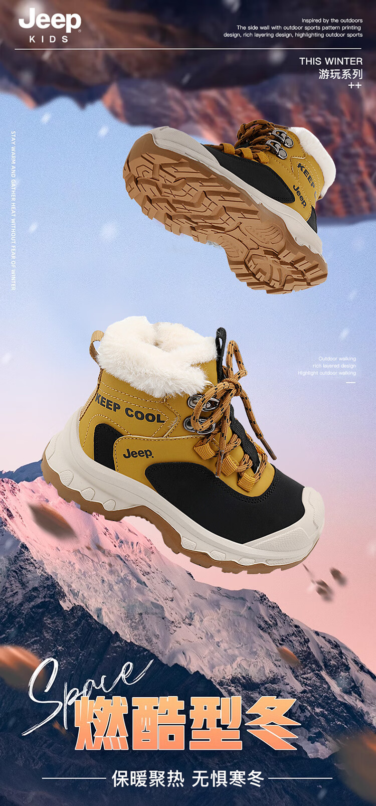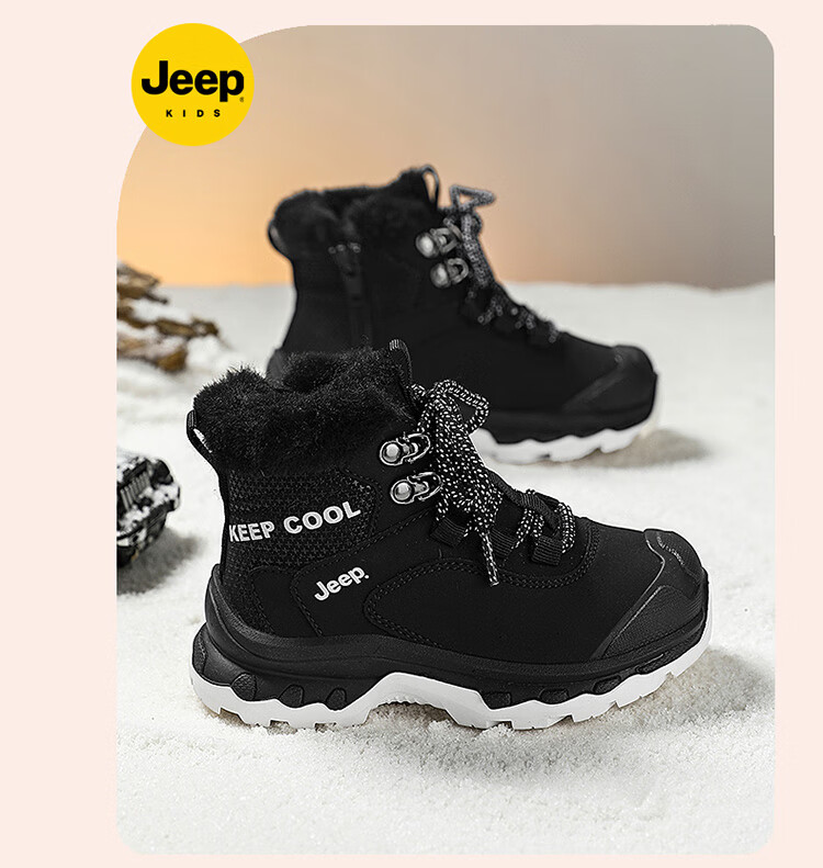 JEEP Boys' Cotton Shoes Winter Velvet Sports Shoes 2025 New Boys Snow Boots Large Cotton Children's Shoes Children's Shoes Black 33