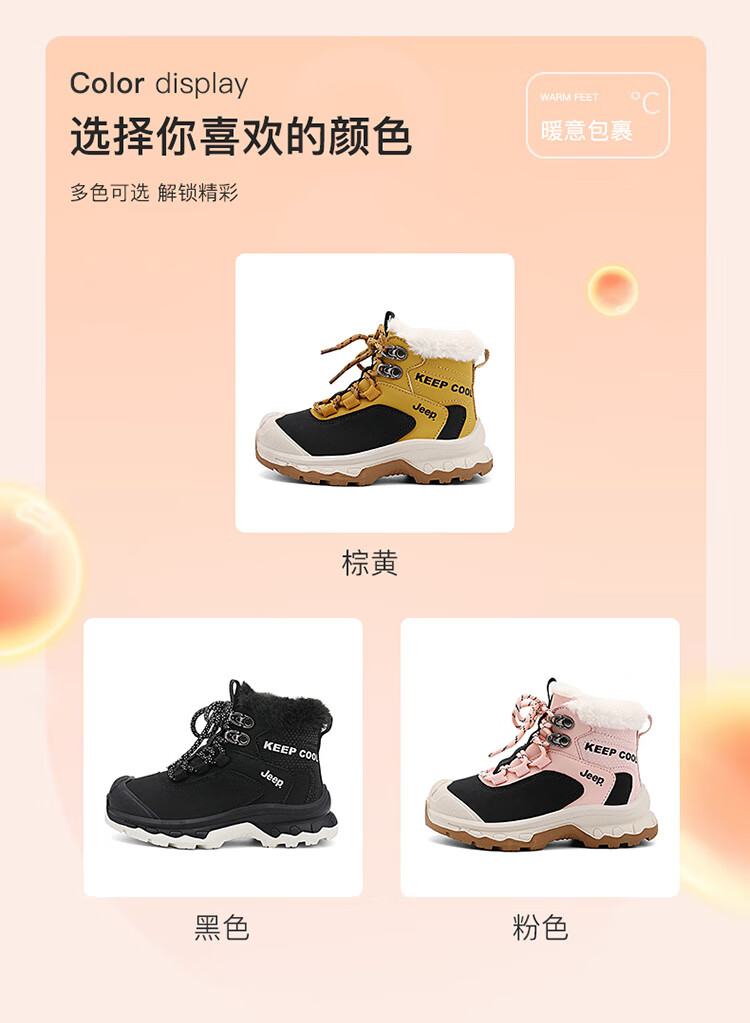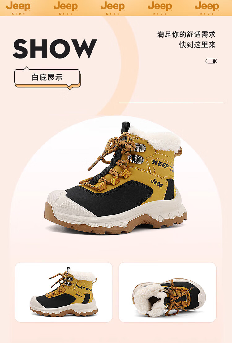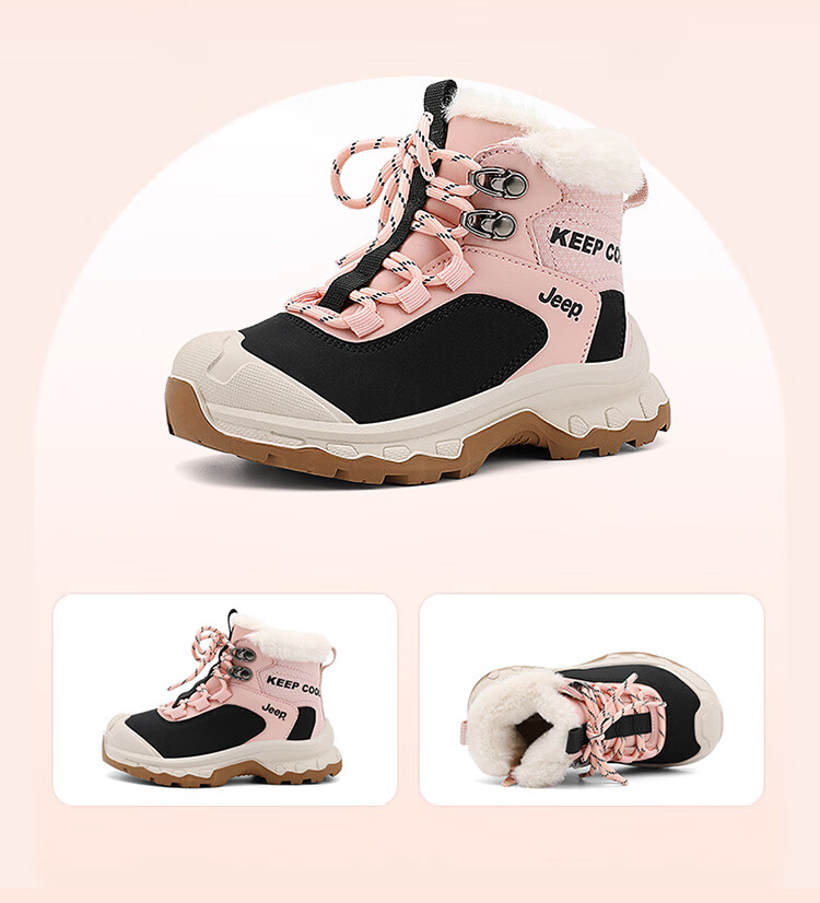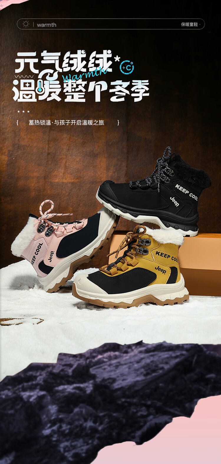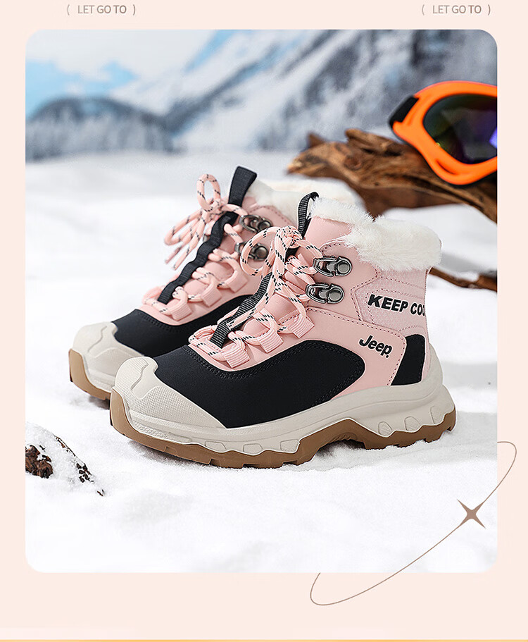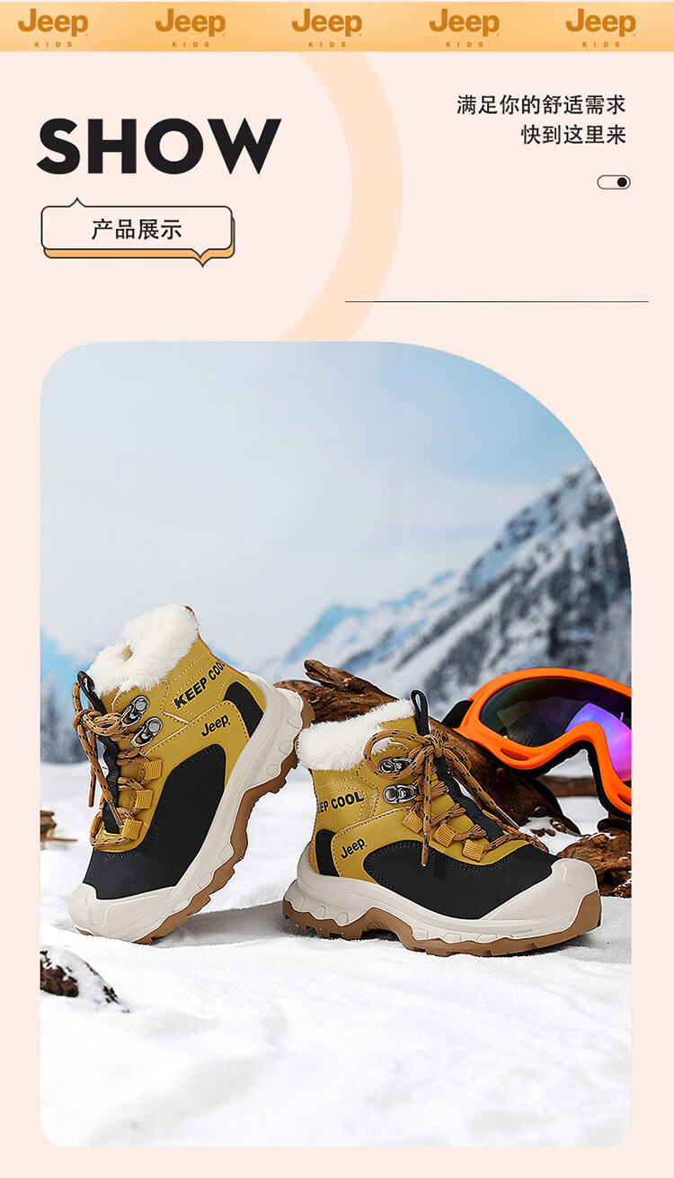 JEEP Boys' Cotton Shoes Winter Velvet Sports Shoes 2025 New Boys Snow Boots Large Cotton Children's Shoes Children's Shoes Black 33