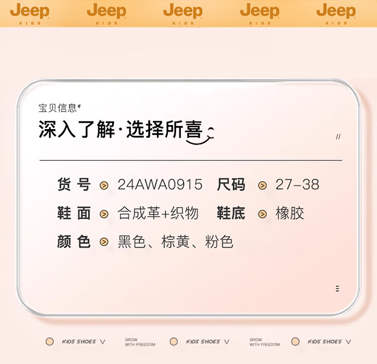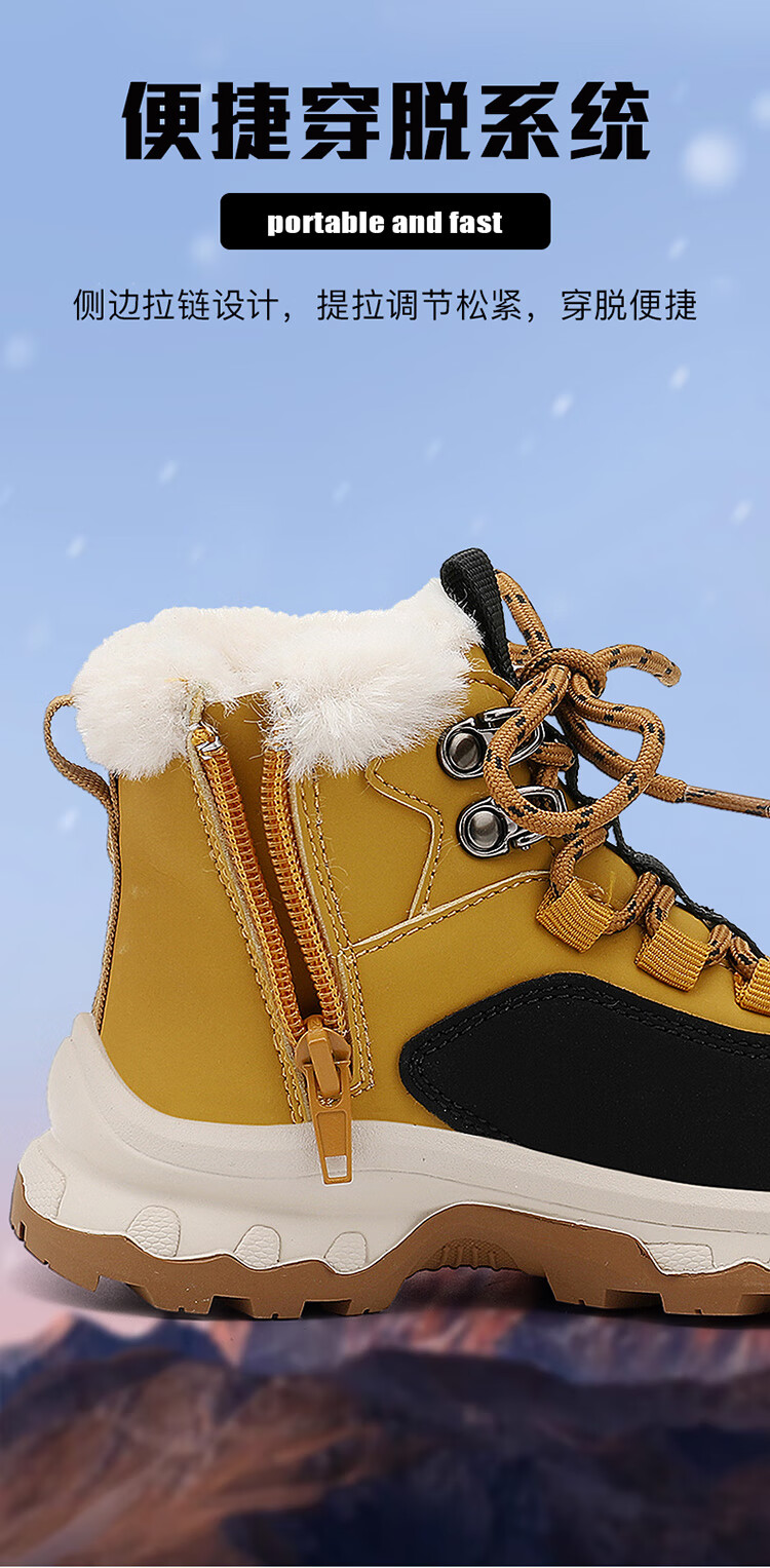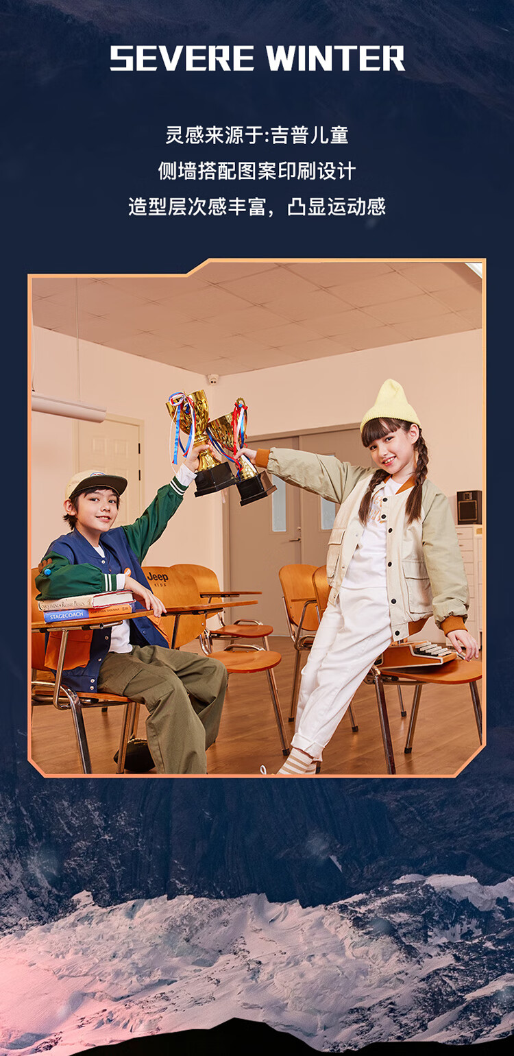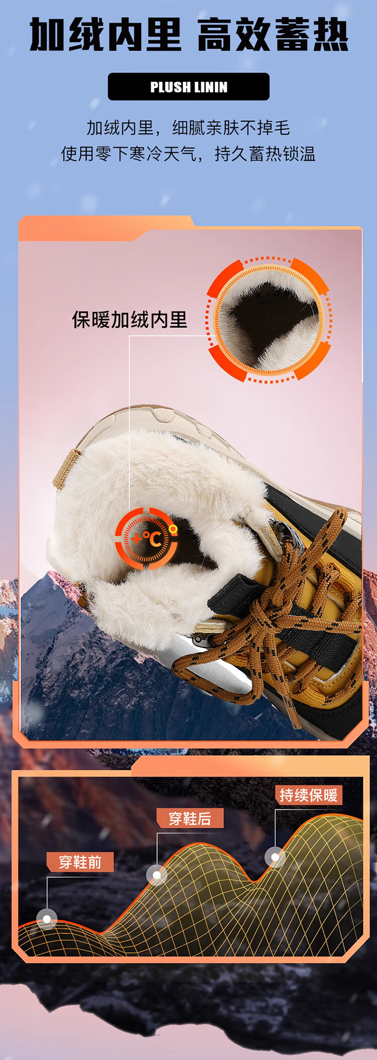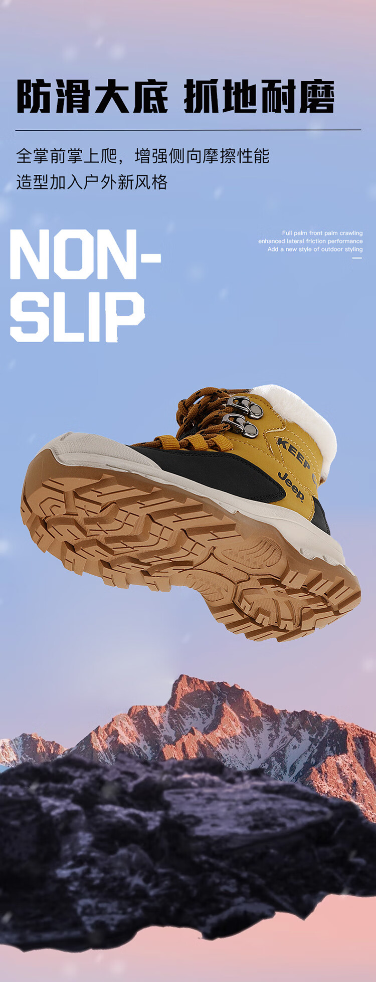 JEEP Boys' Cotton Shoes Winter Velvet Sports Shoes 2025 New Boys Snow Boots Large Cotton Children's Shoes Children's Shoes Black 33