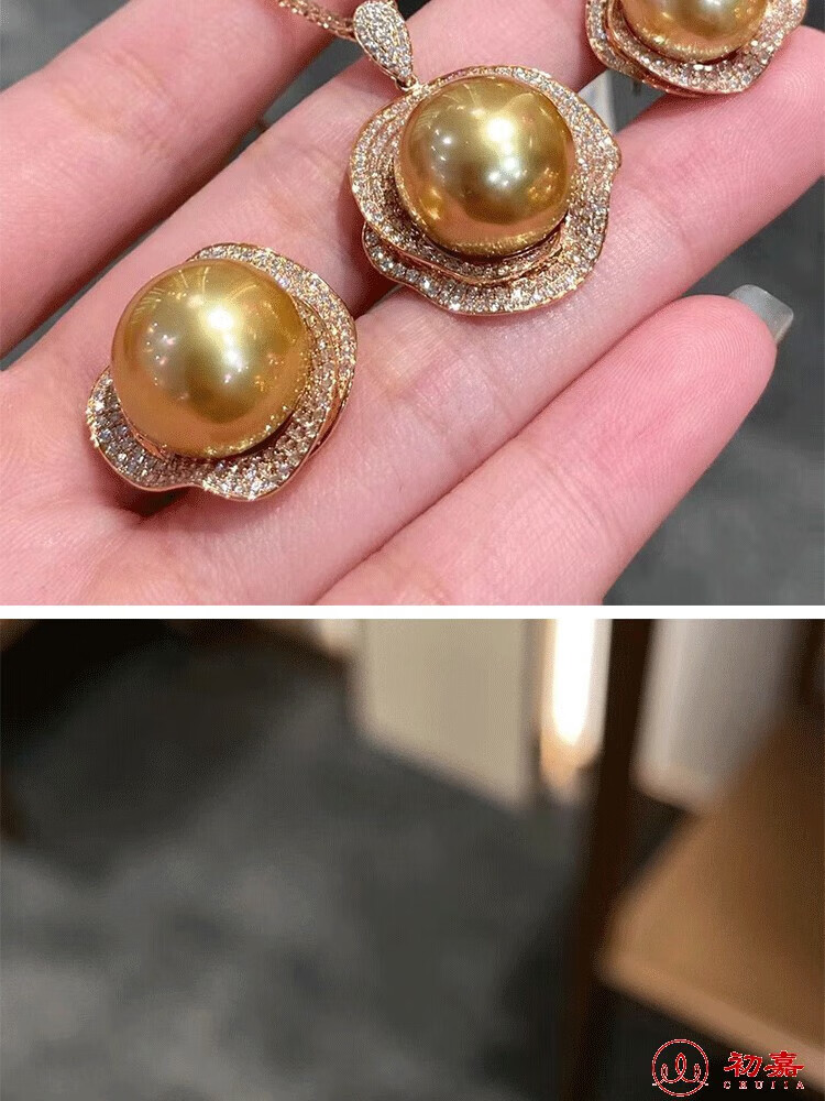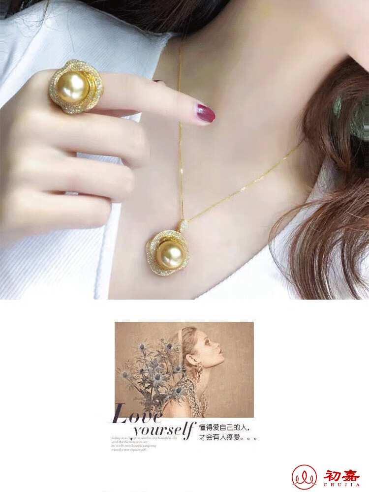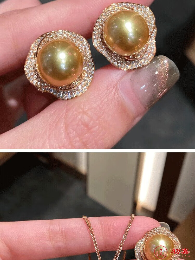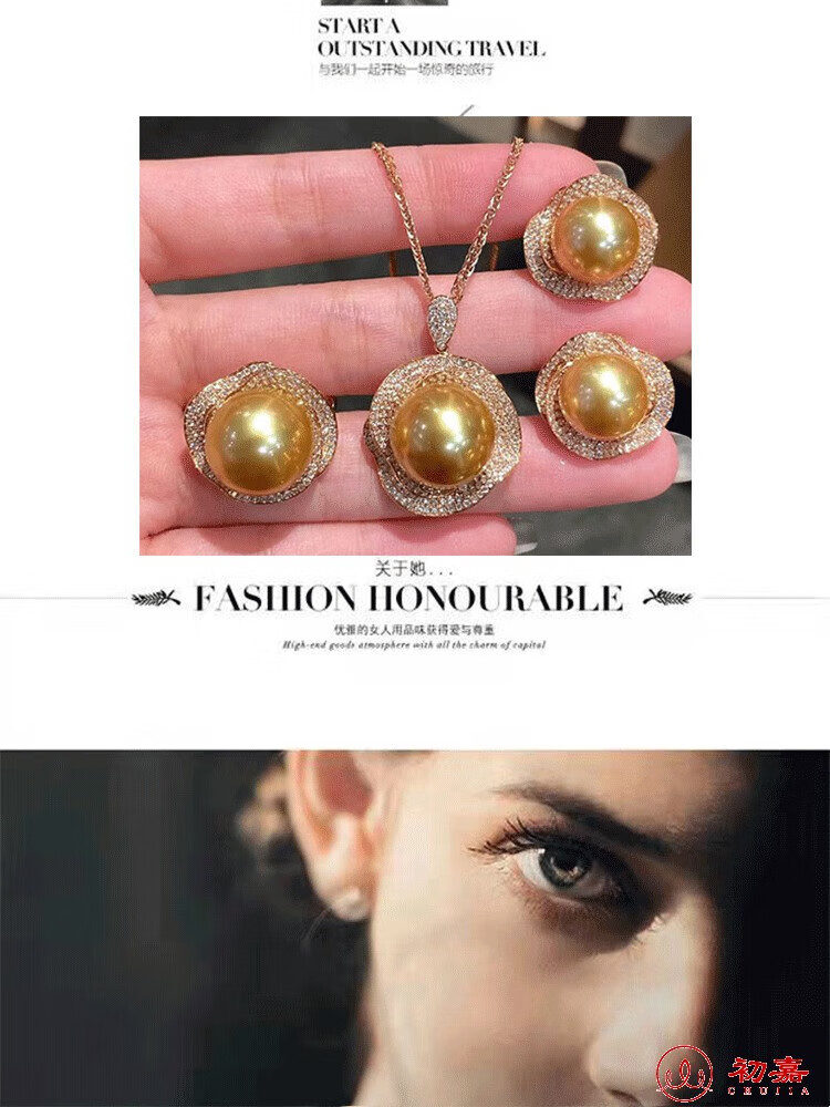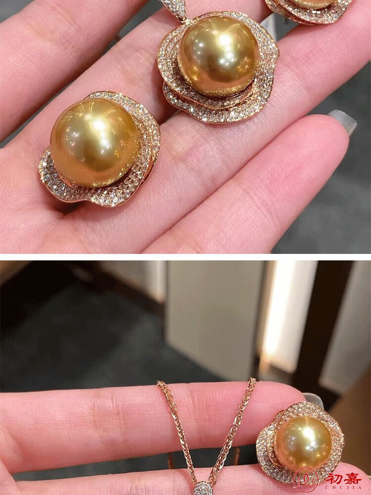 Lihuyang gold pearl full diamond earrings s925 18k gold plated luxury pendant thick gold necklace ring set for women gold pearl ring
