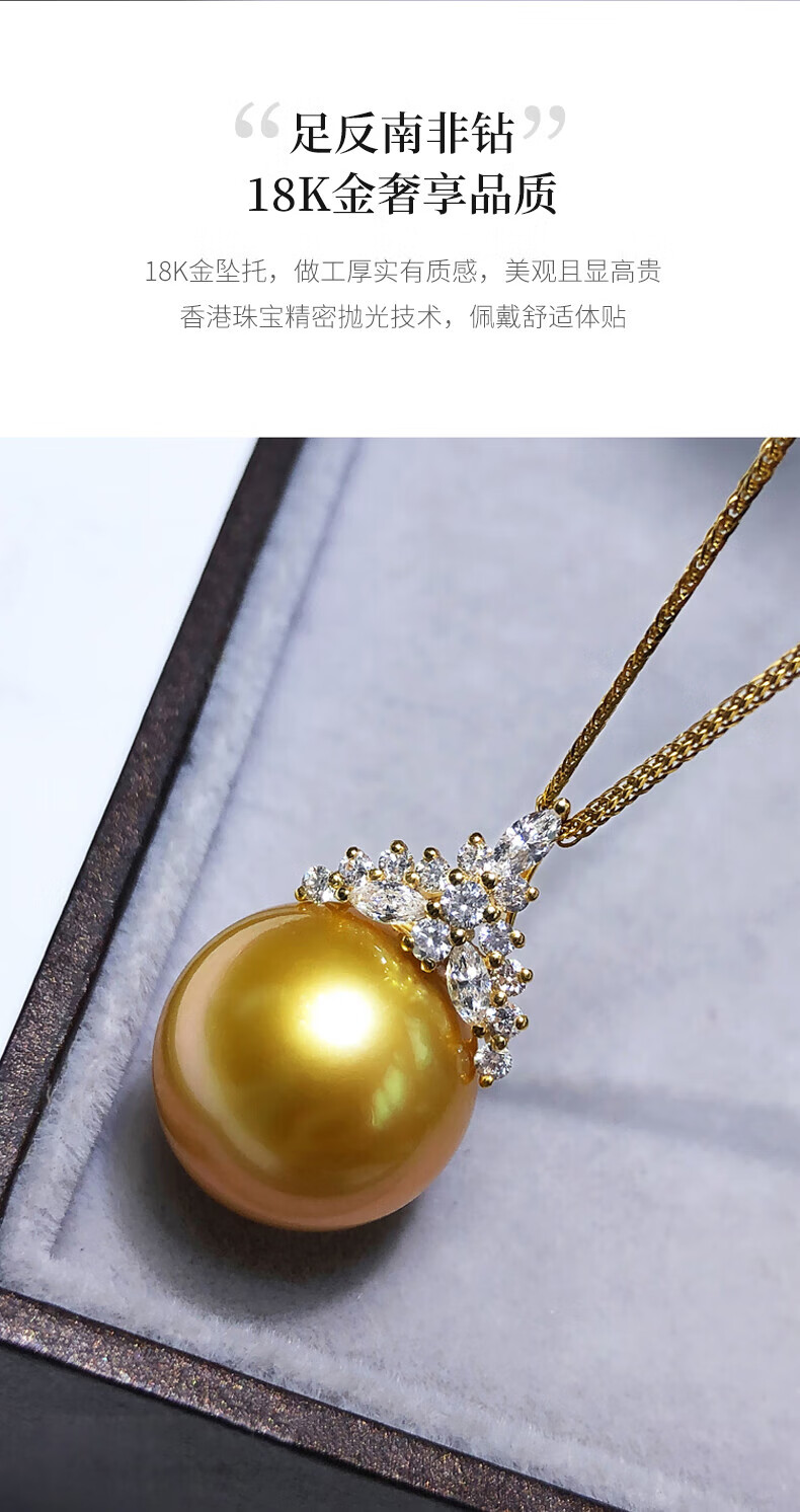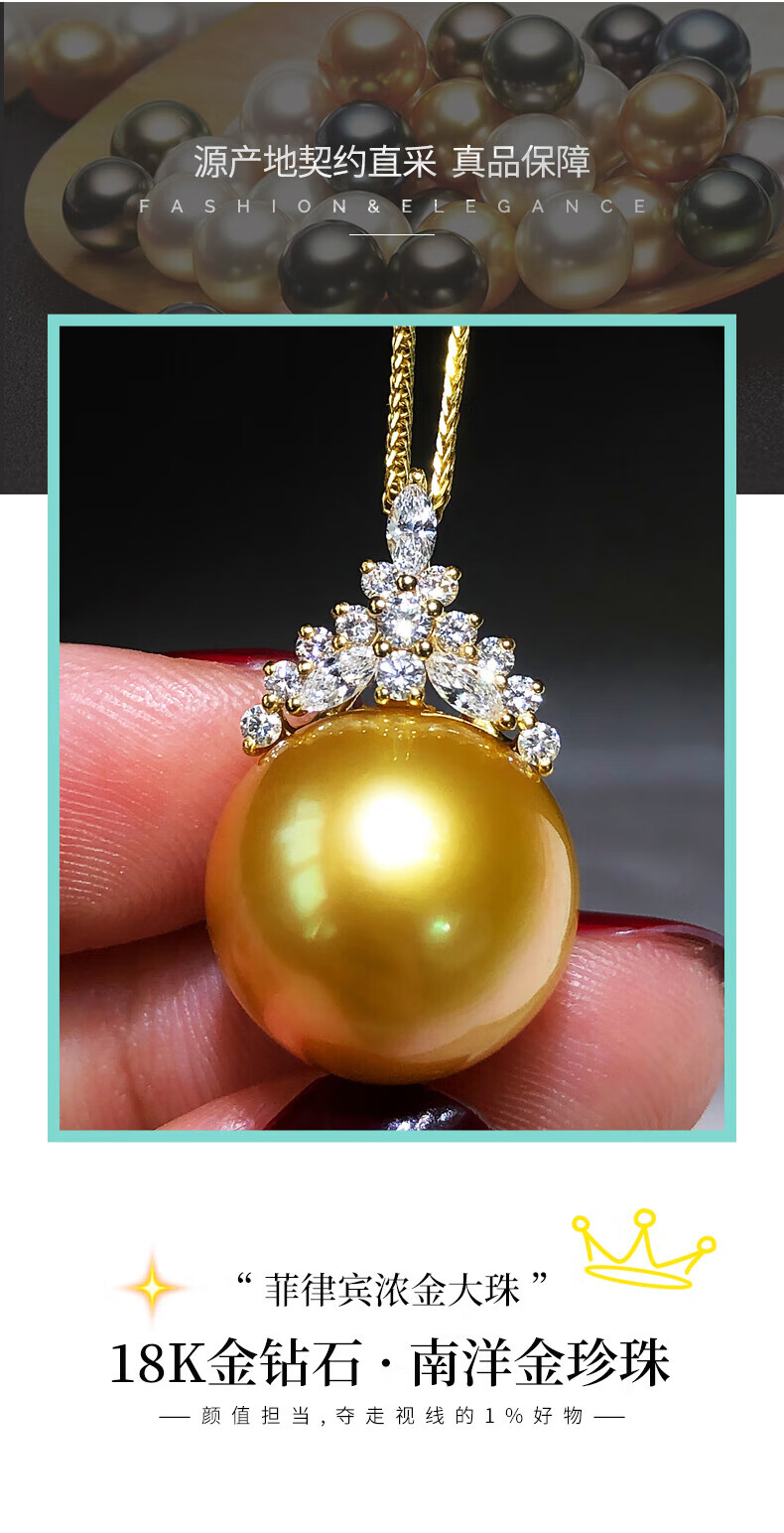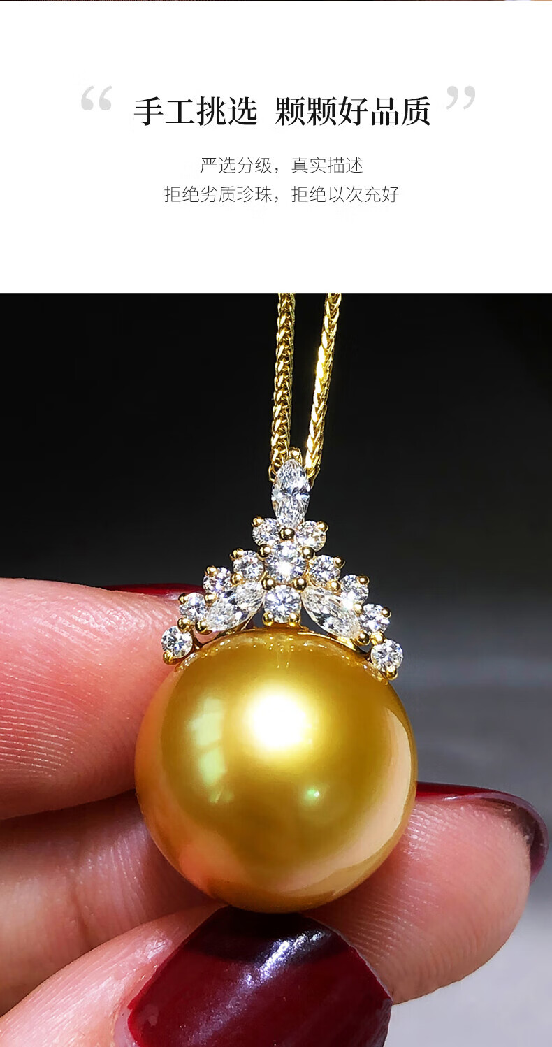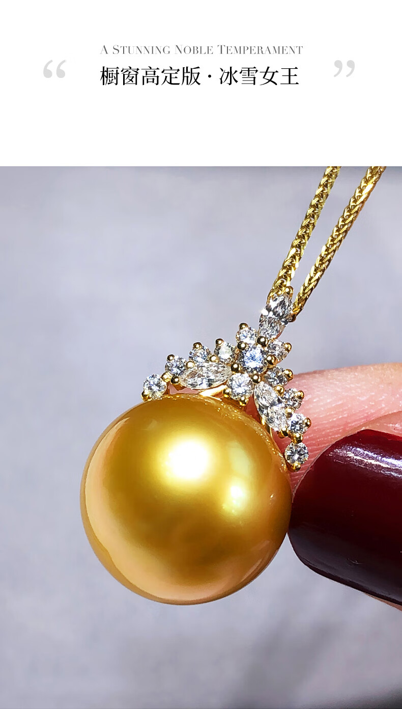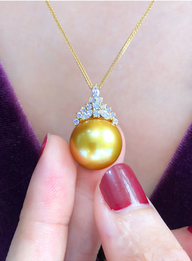 Lihu Xifei real diamond 18k gold foreign gold bead pendant tea gold thick gold single ice and snow queen seawater necklace Philippines 12-13mm