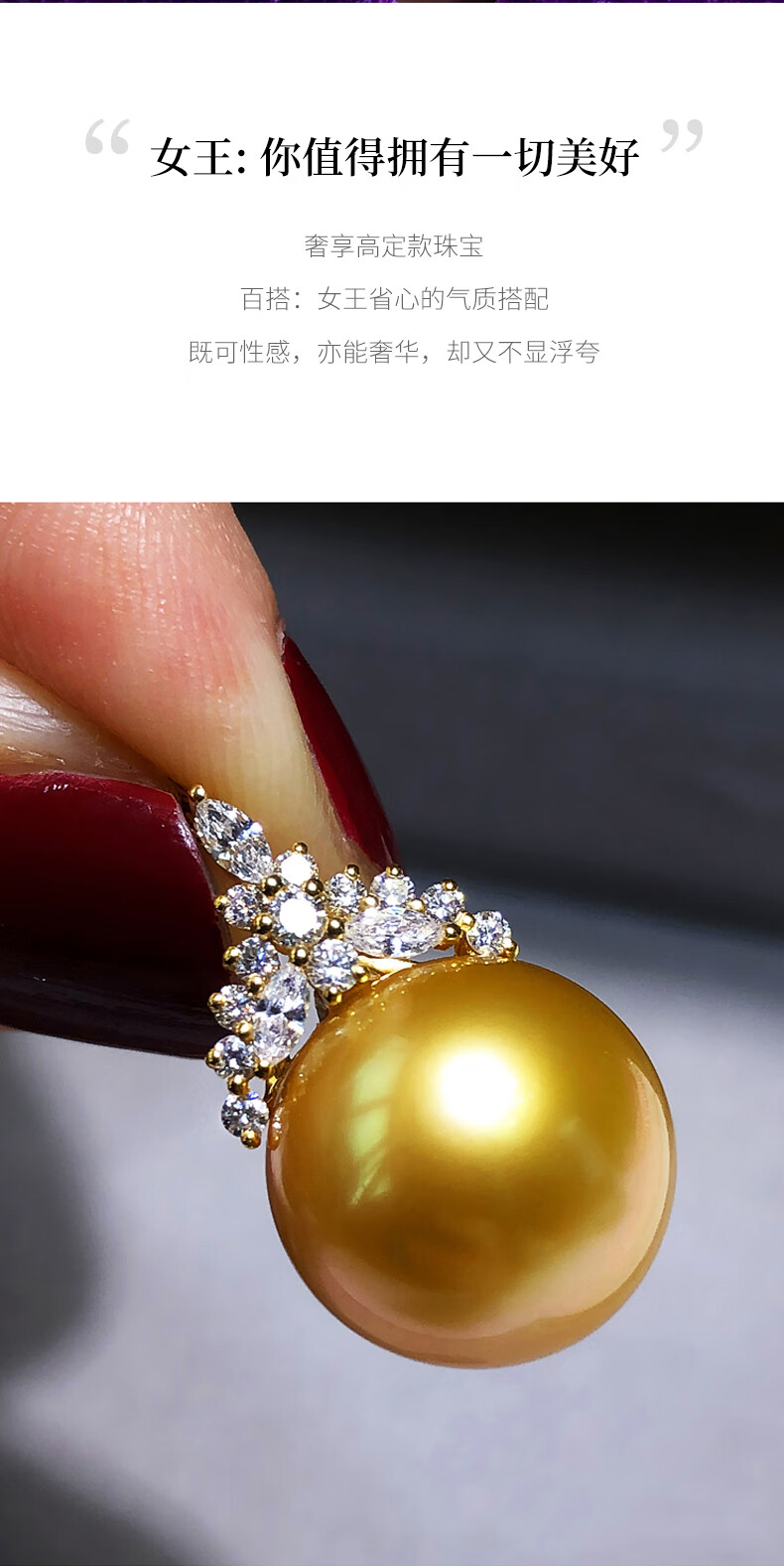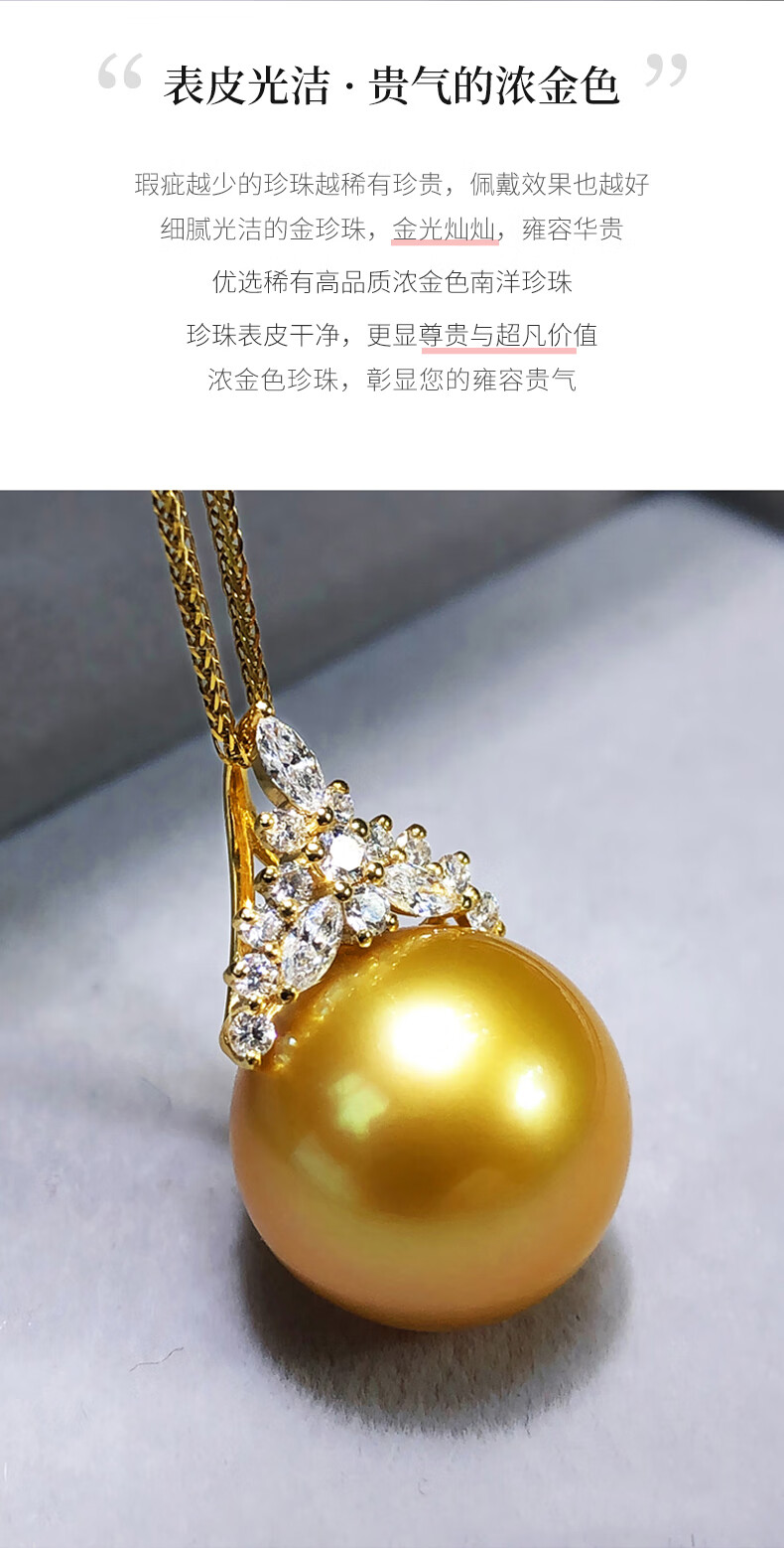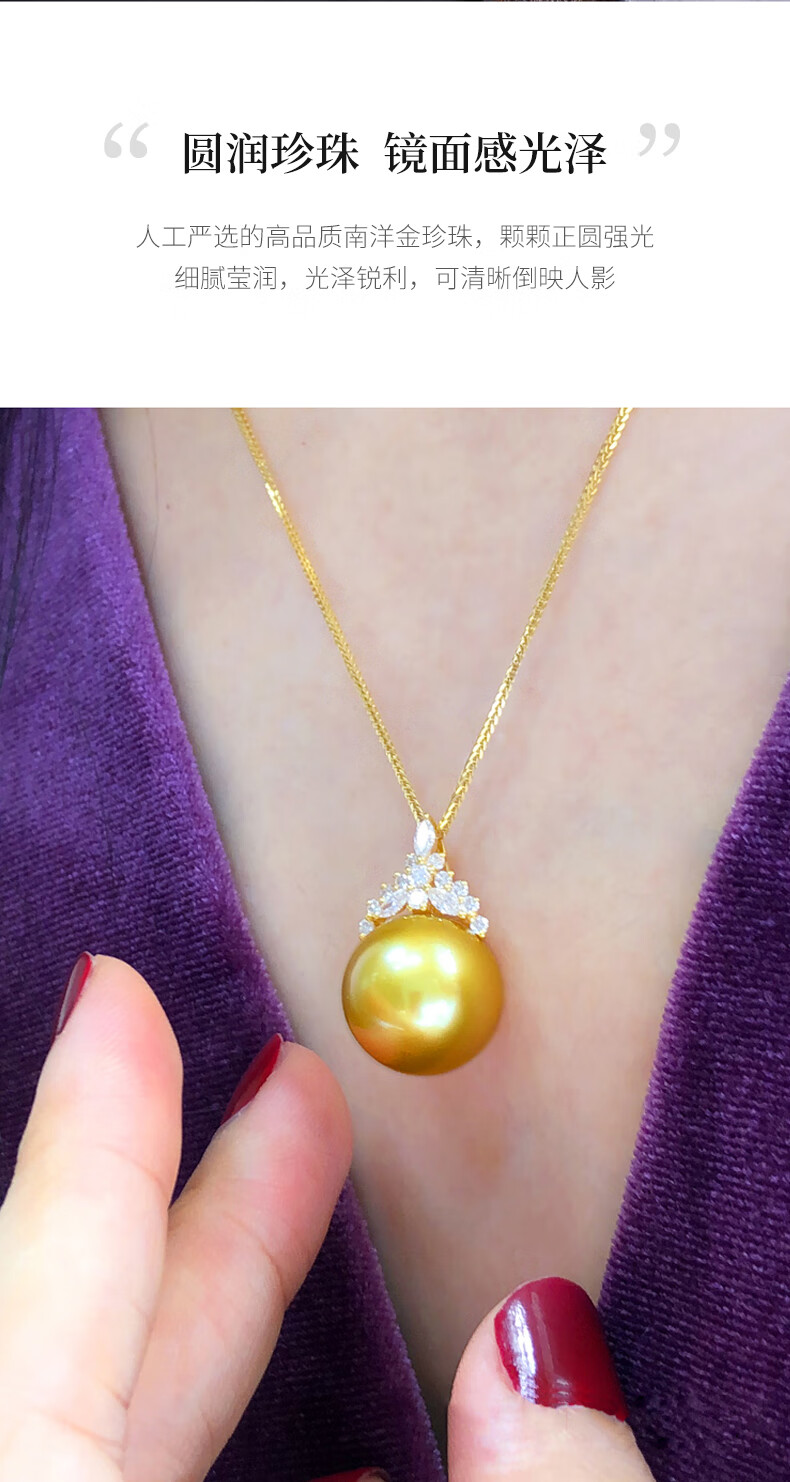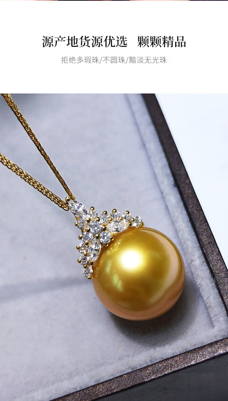 Lihu Xifei real diamond 18k gold foreign gold bead pendant tea gold thick gold single ice and snow queen seawater necklace Philippines 12-13mm