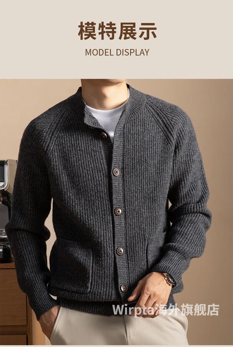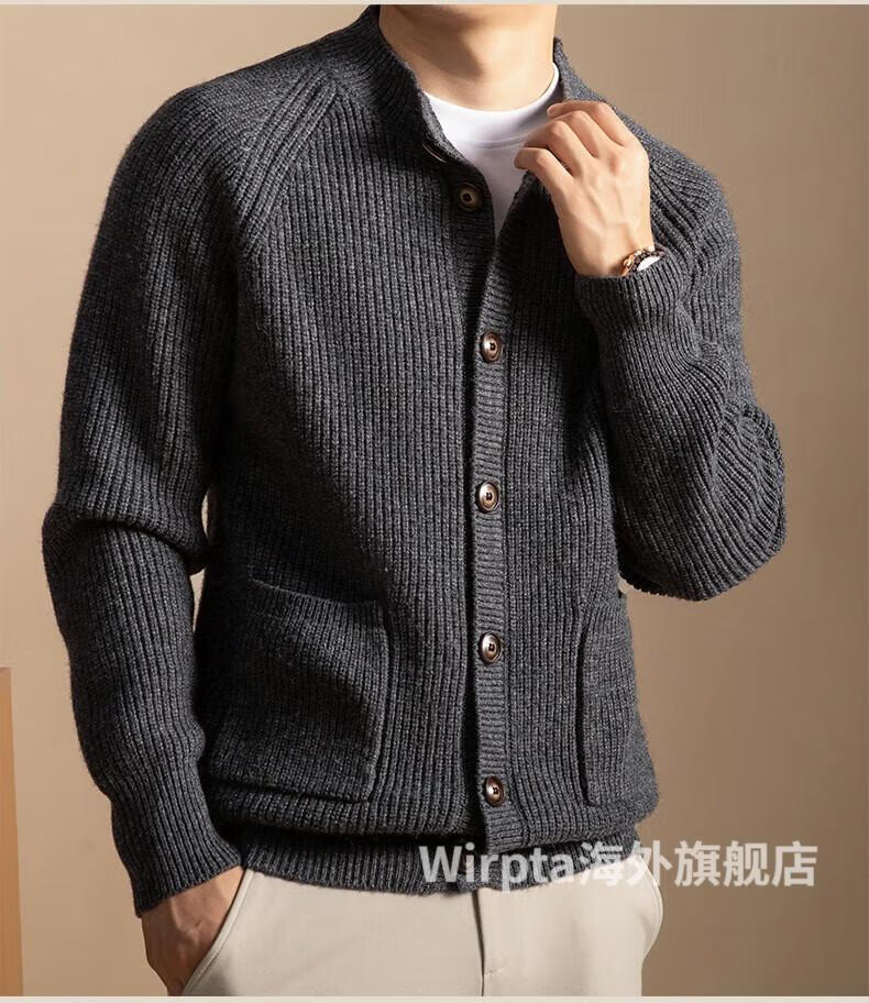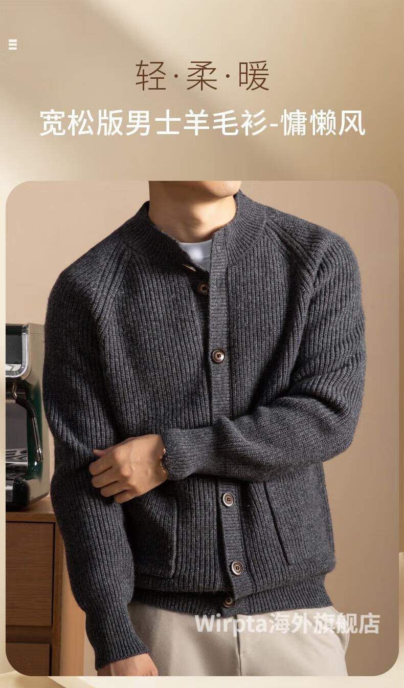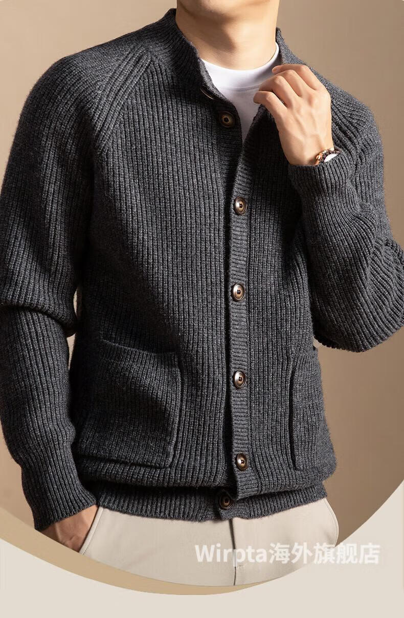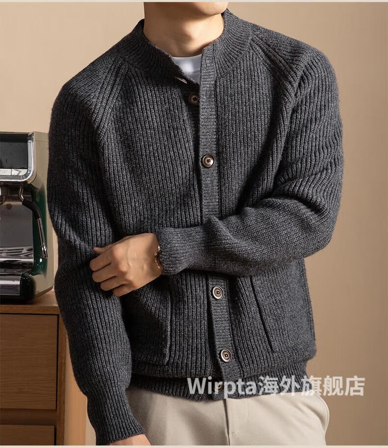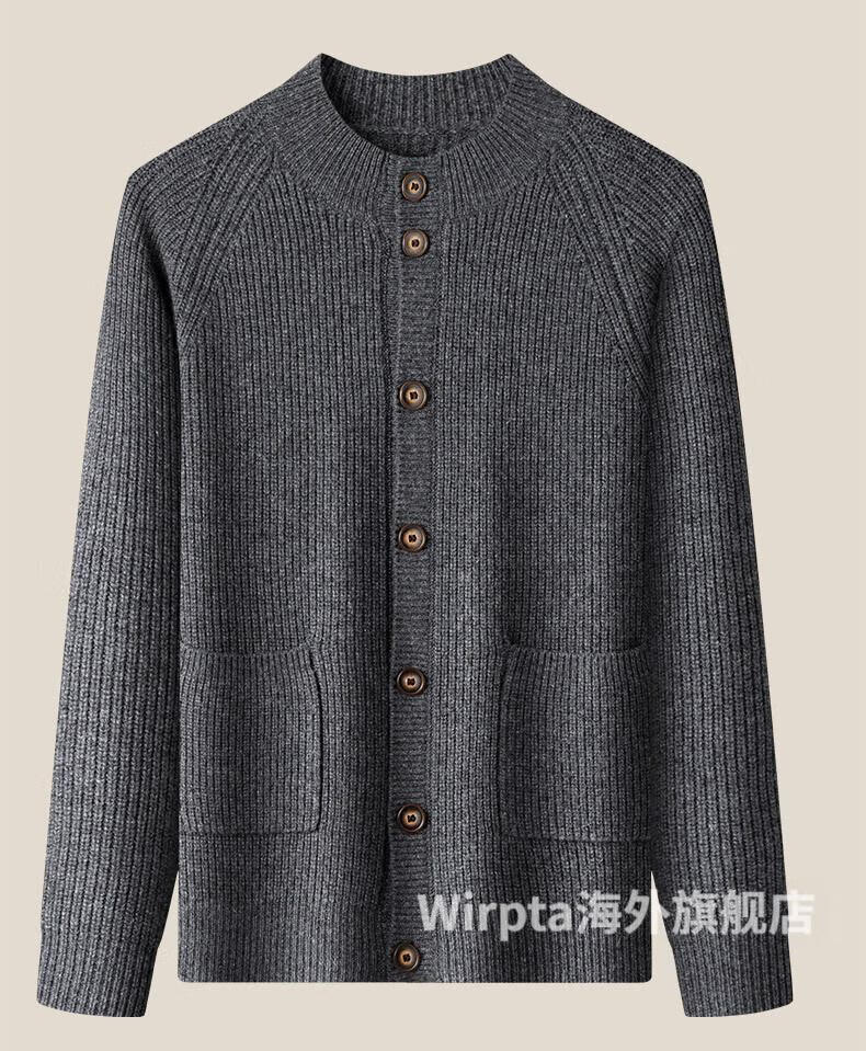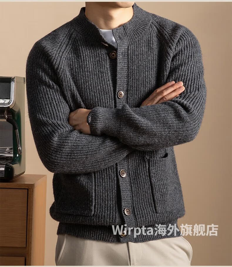 Wirpta high-end brand men's sweater 2025 winter new style young and middle-aged fashion loose single-breasted thickened jacket men's dark gray (ready in stock) 2XL 180 (suitable for 150-165 Jin Jin equals 0.5 kg)