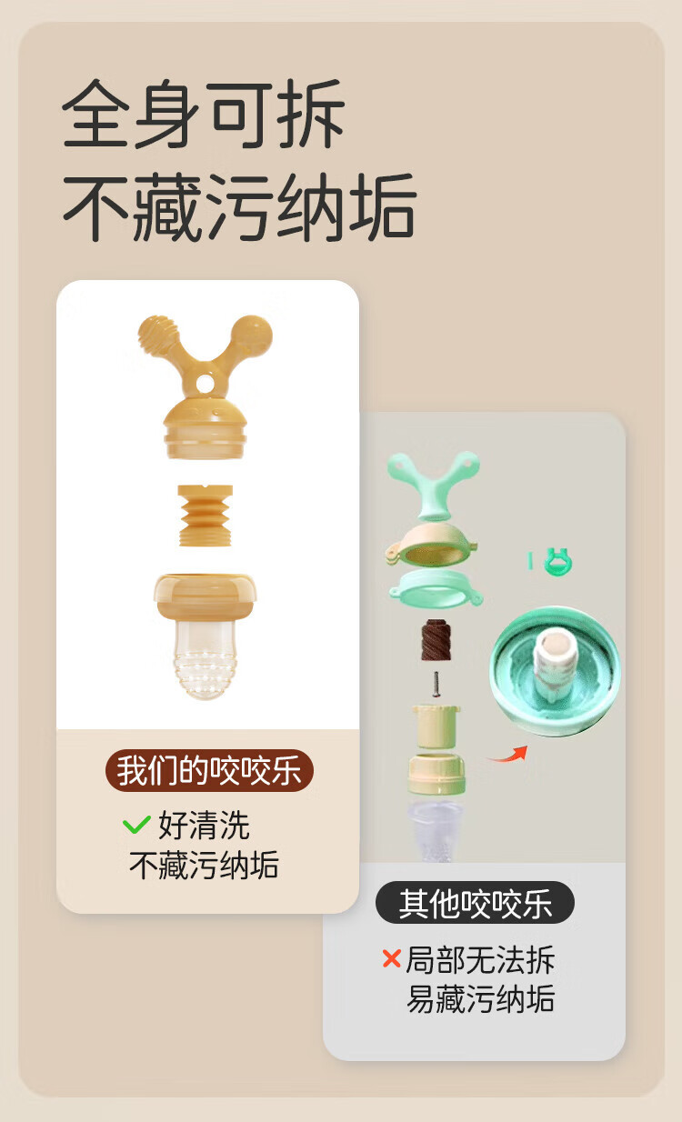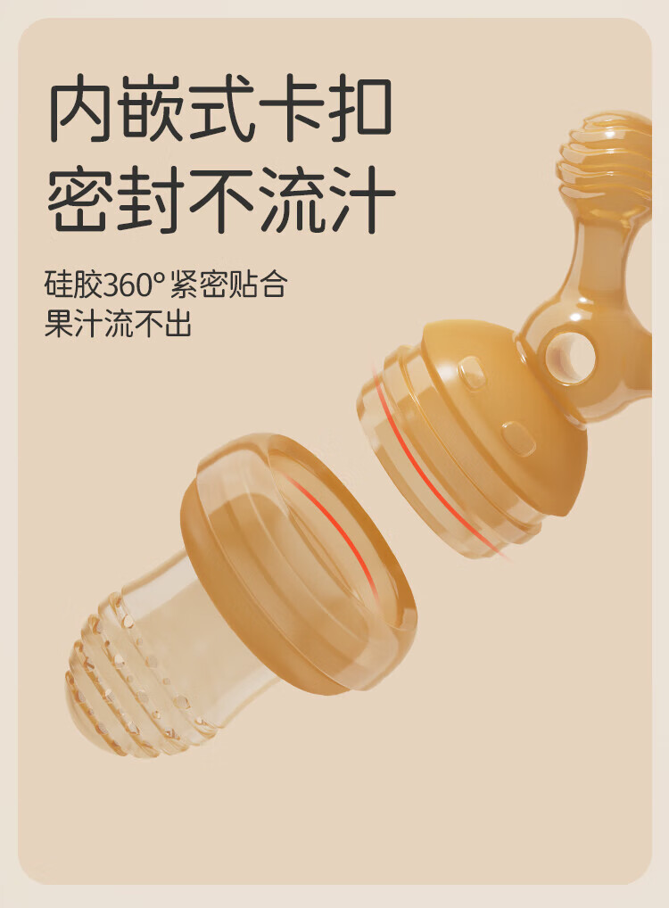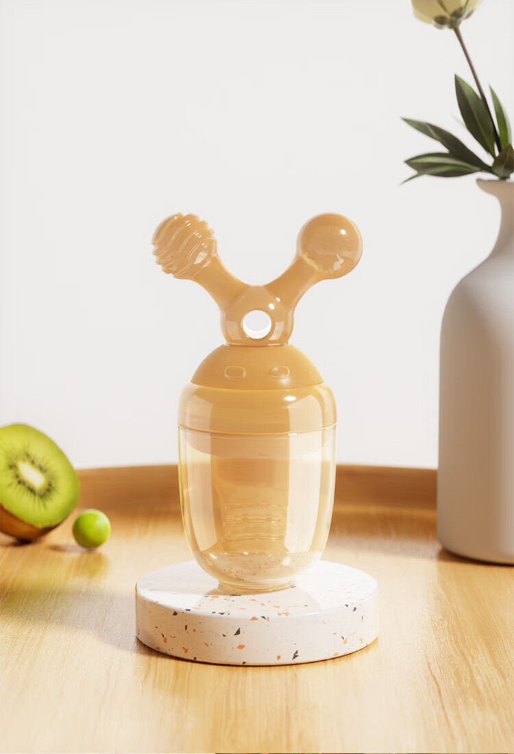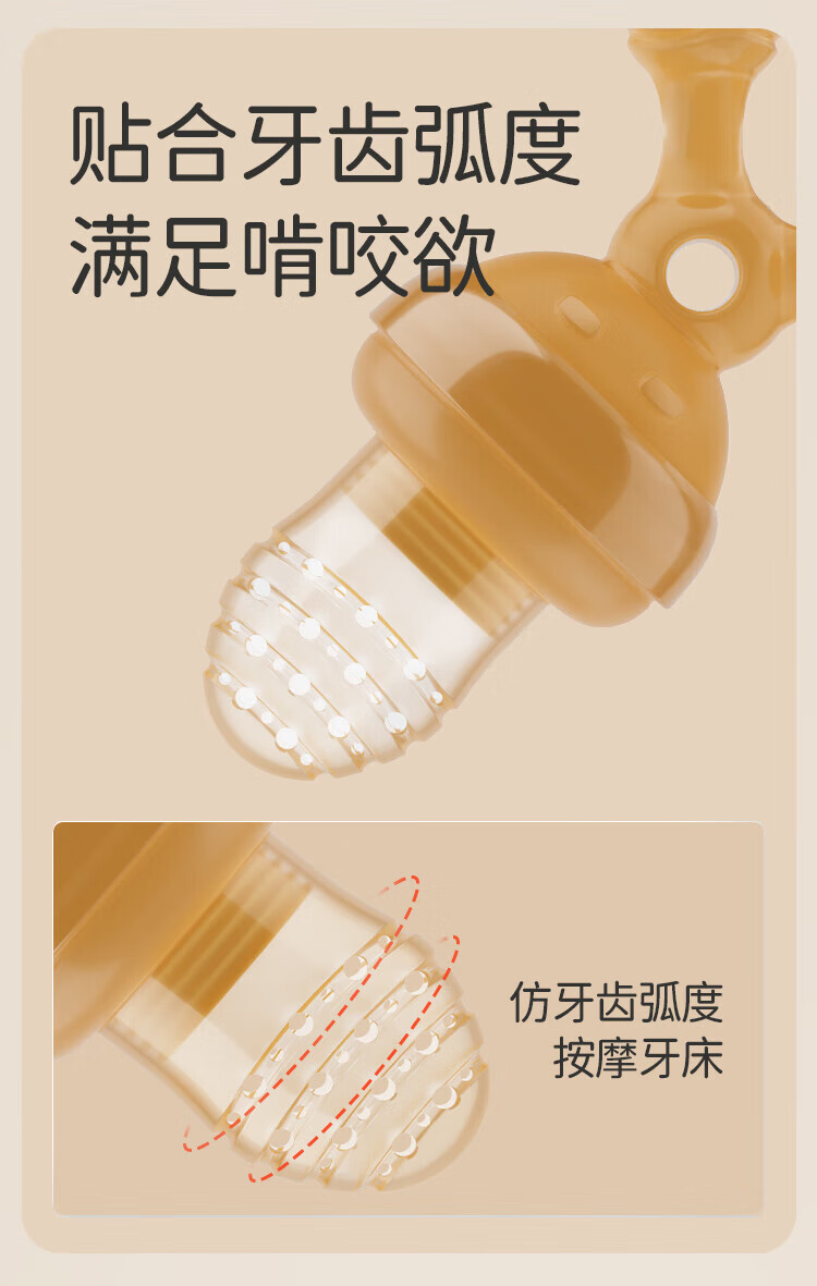 Full silicone bite bag baby fruit food supplement fruit and vegetable bite bag baby eating fruit supplement teething gel light brown