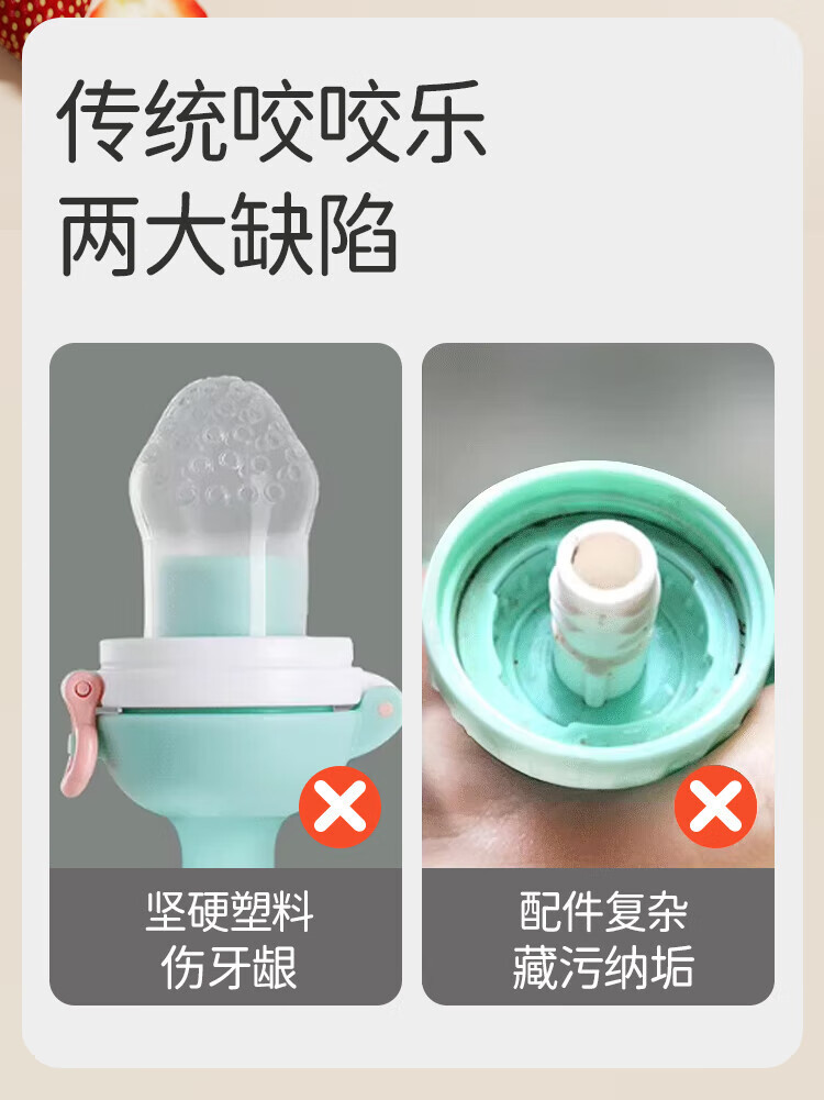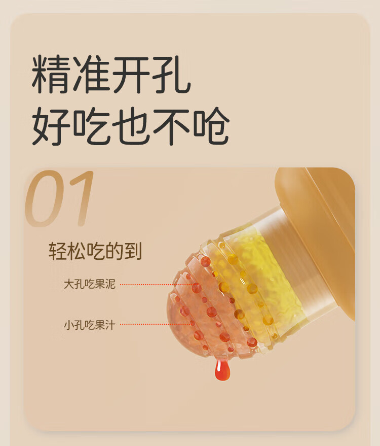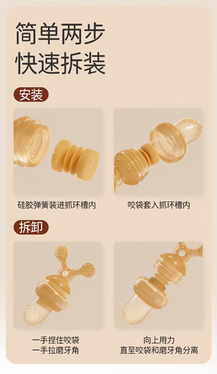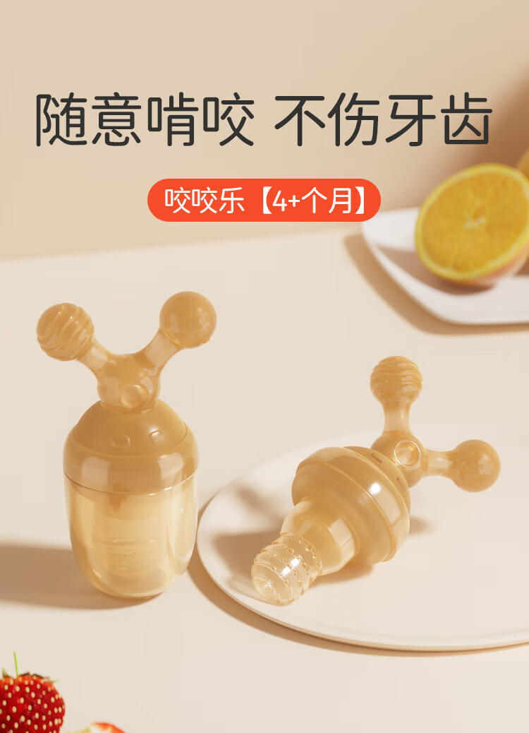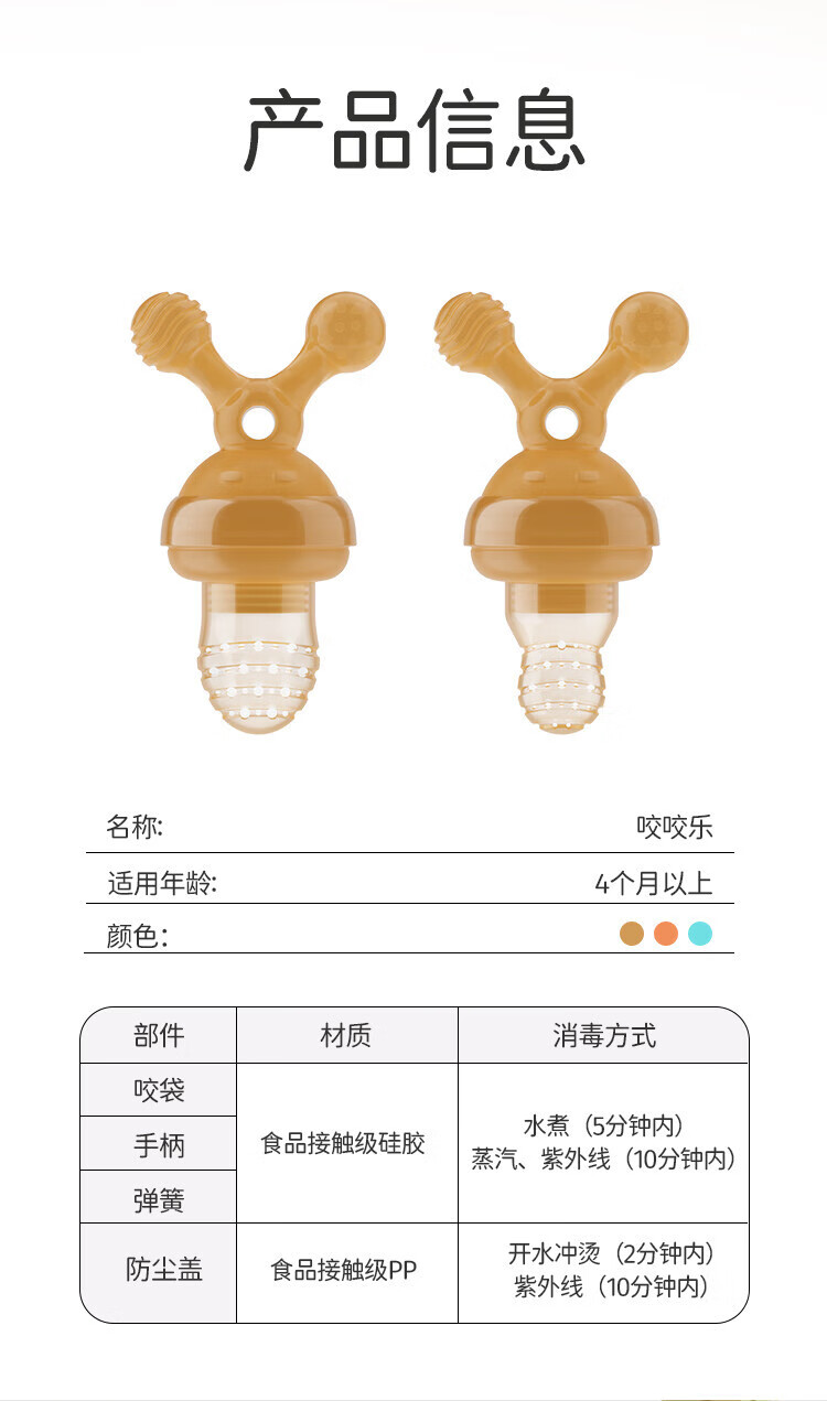 Full silicone bite bag baby fruit food supplement fruit and vegetable bite bag baby eating fruit supplement teething gel light brown