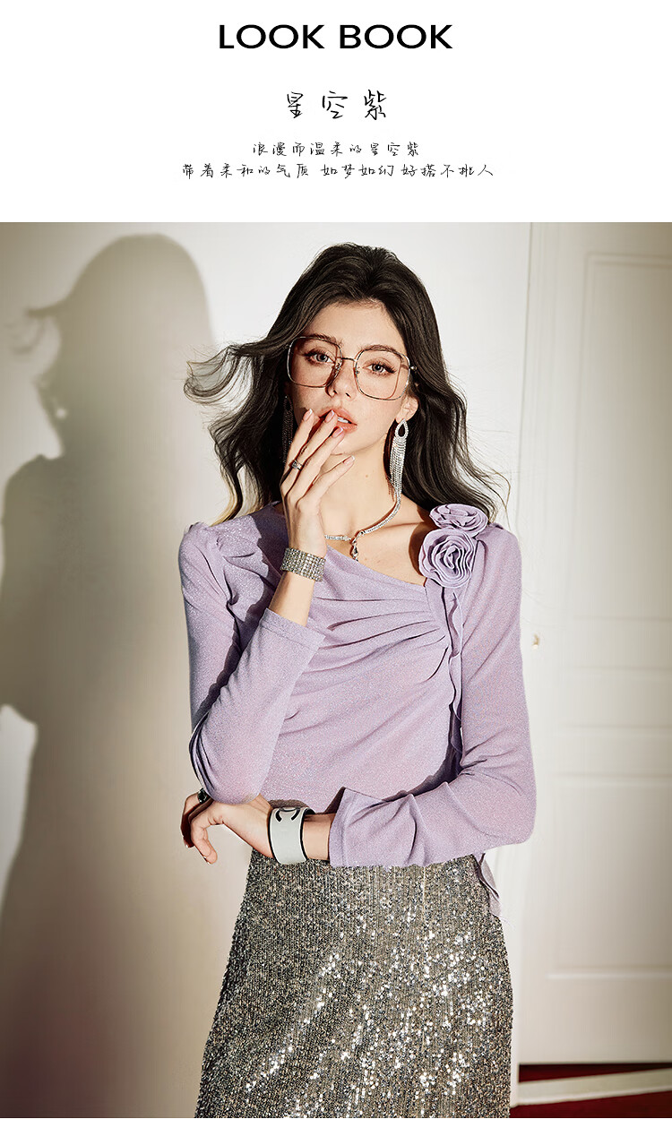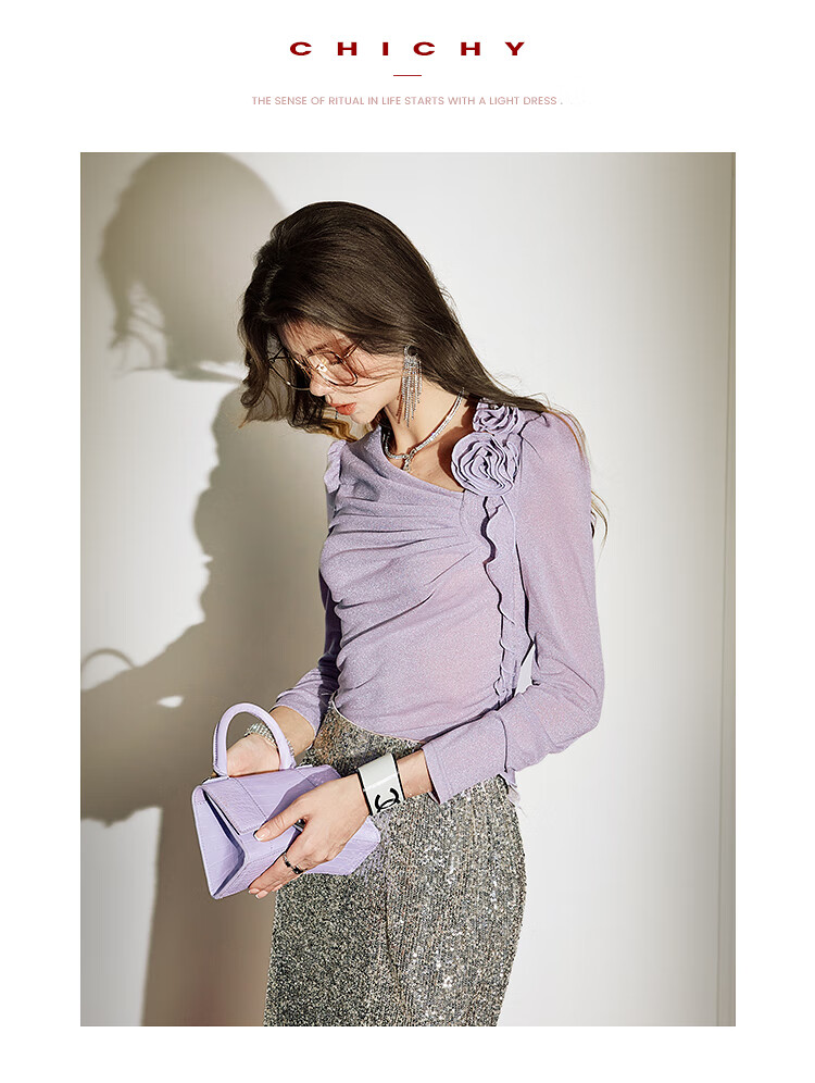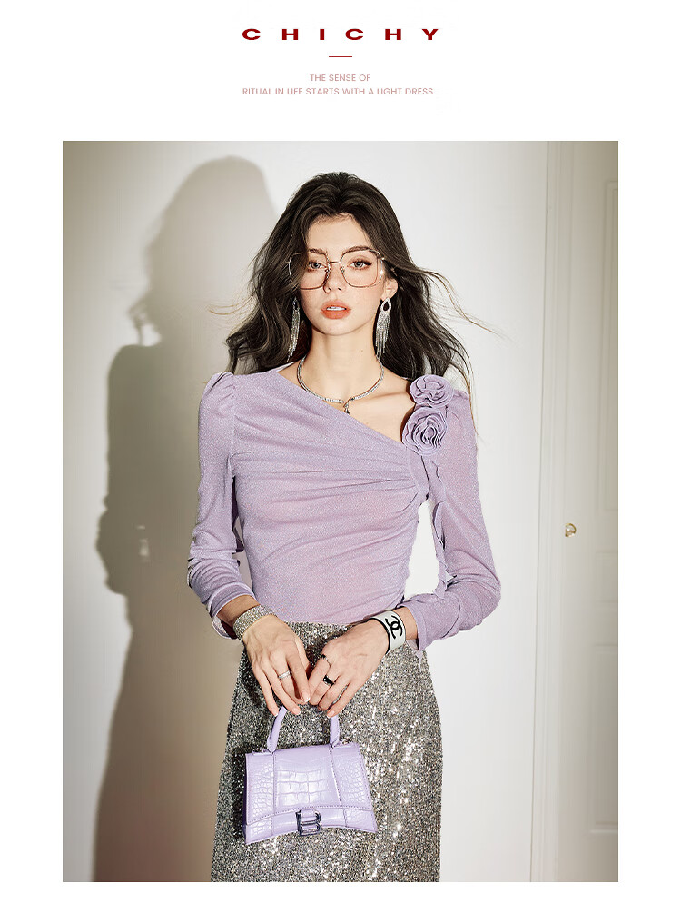 CHICHY Gentle and chic purple asymmetrical design shirt Qianjin style long-sleeved top CC1E019251 Purple 165/92A