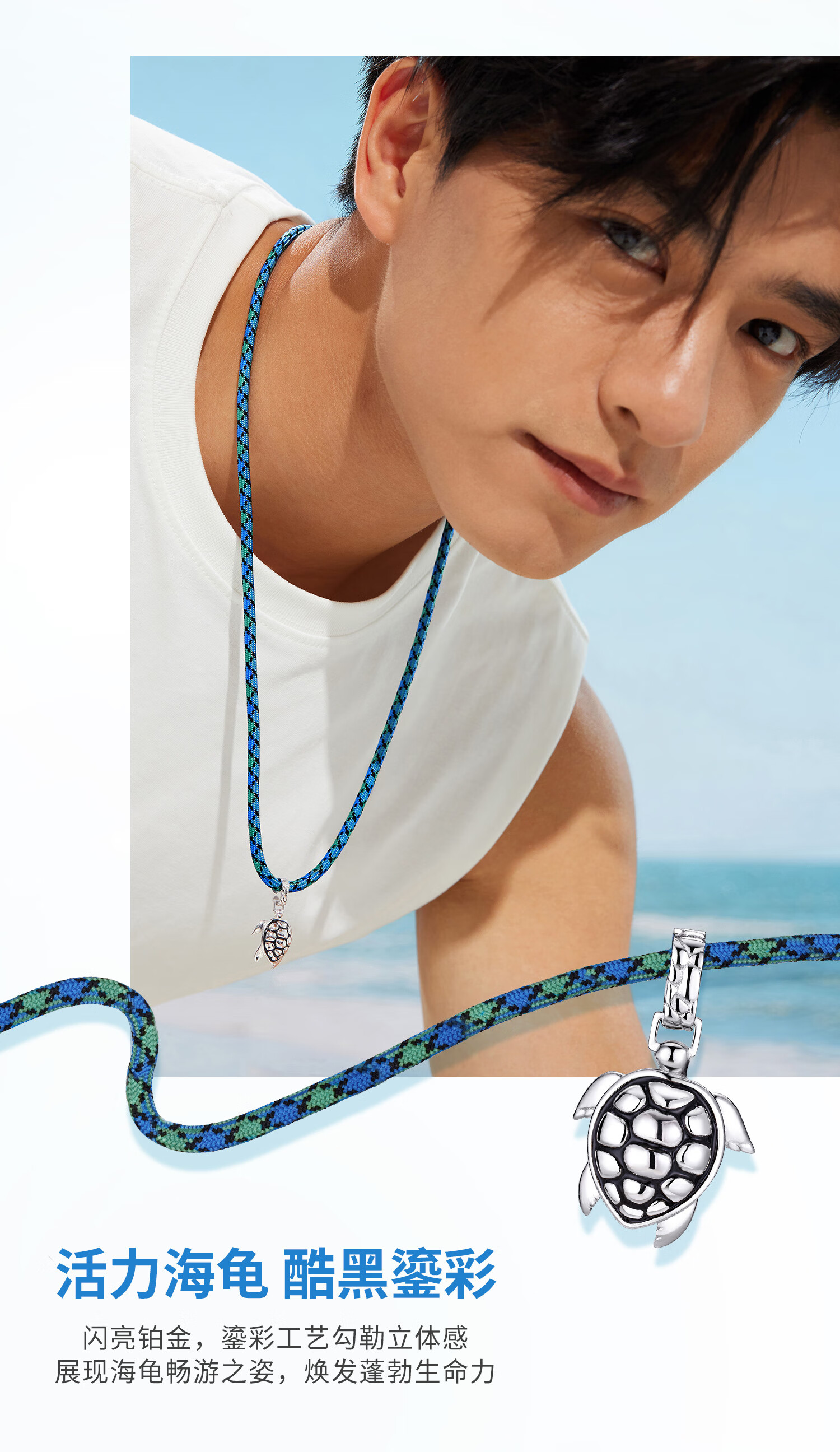 Lukfook Jewelry Platinum Ocean Series Platinum 950 Turtle Gilt Platinum Pendant with Eco-Friendly Necklace for Couple GJT0018DS Gold Weight 10.17 Grams