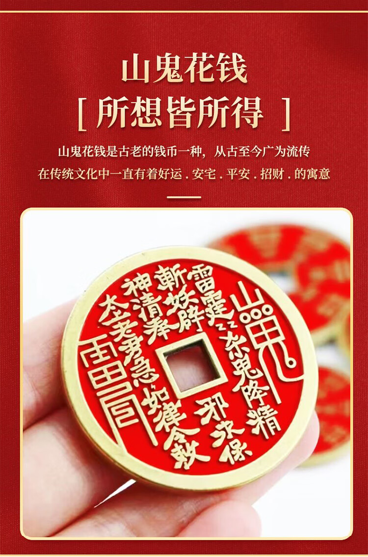 Mountain ghost spends money brass cinnabar pendant Taoist Bagua safety buckle pendant pendant for men and women Chinese style copper coin Mountain ghost spends money 28mm (single copper coin)
