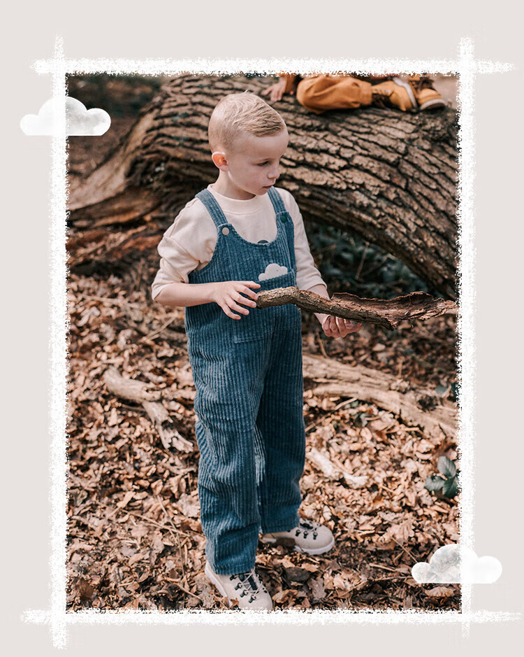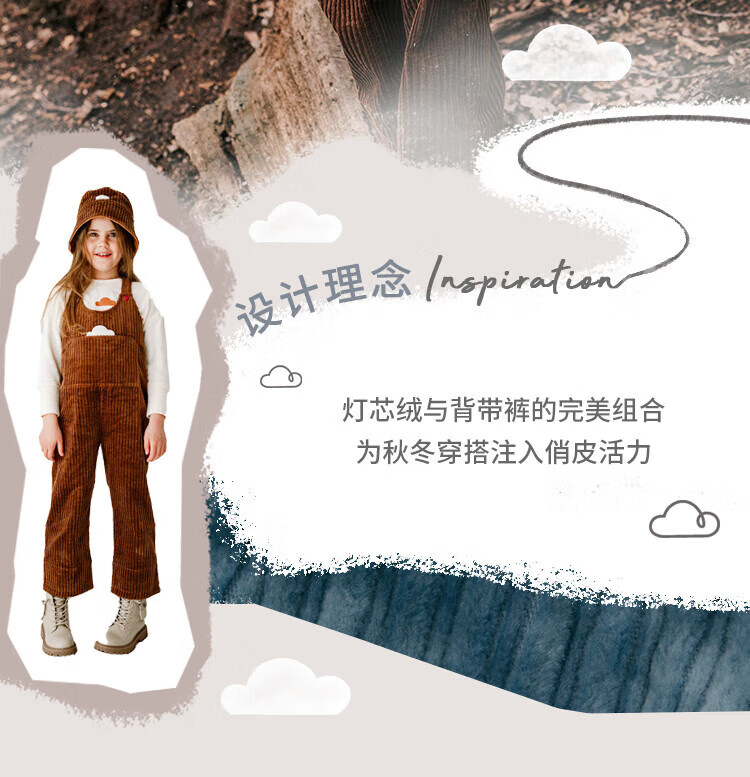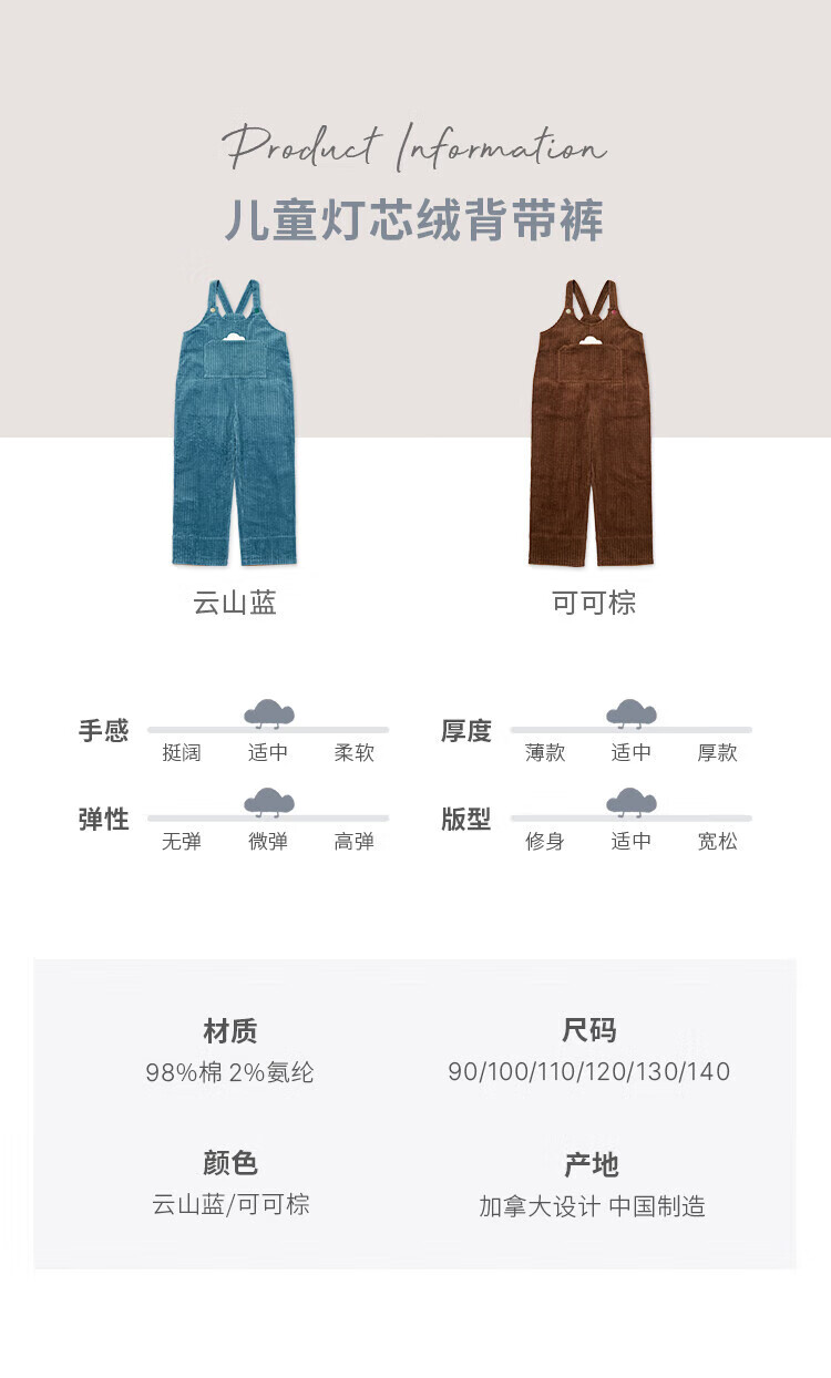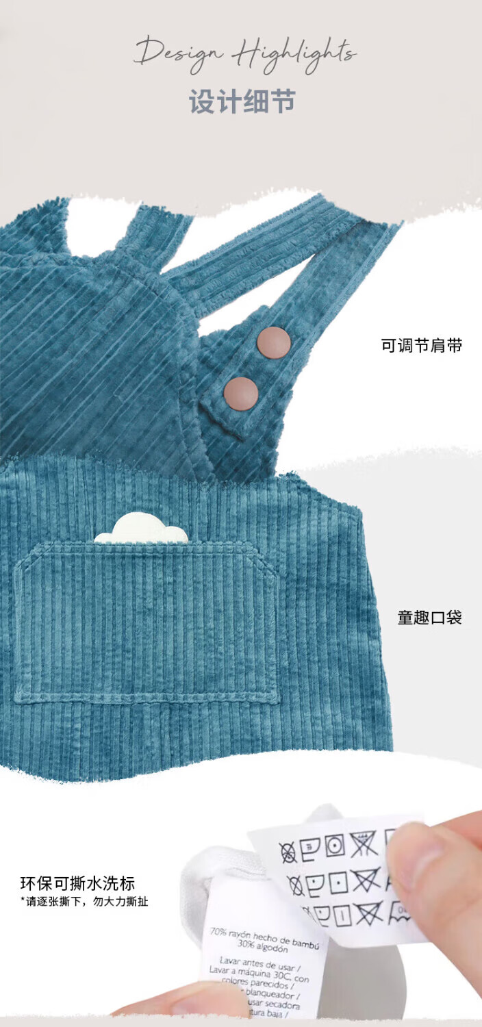 Nest designsPR Xiaoyunduo children's clothing children's corduroy overalls for boys and girls autumn and winter thickened pants soft Yunshan blue 90 cm