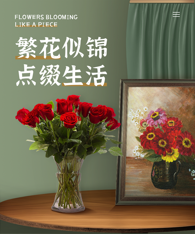 Qianqian Whispering Dounan base direct wholesale rose flowers nationwide express delivery girlfriend gift home water-raised flower arrangement family 10 red roses + send love grass + send preservative