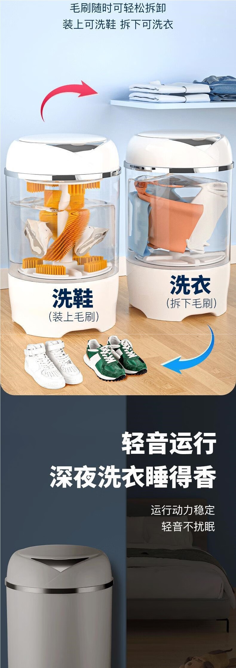 Xiaomi Buyi 2025 New Mini Shoe Cleaning Machine Home Shoe Brush Machine Fully Automatic Washing and Stripping All-in-One Small Shoes and Socks Washing Machine Special Smart Touch Model 4 Wall Brush Dehydration Can Wash 2-5 Pairs