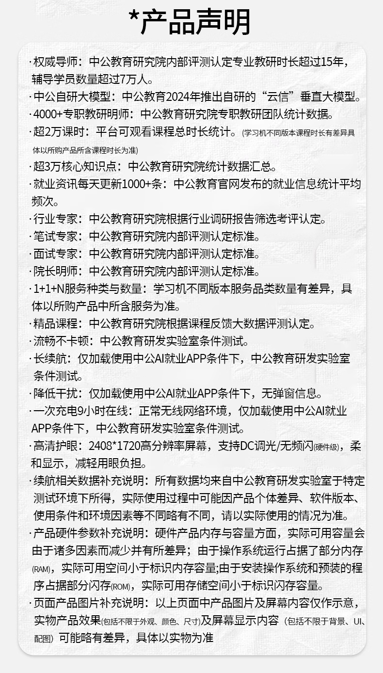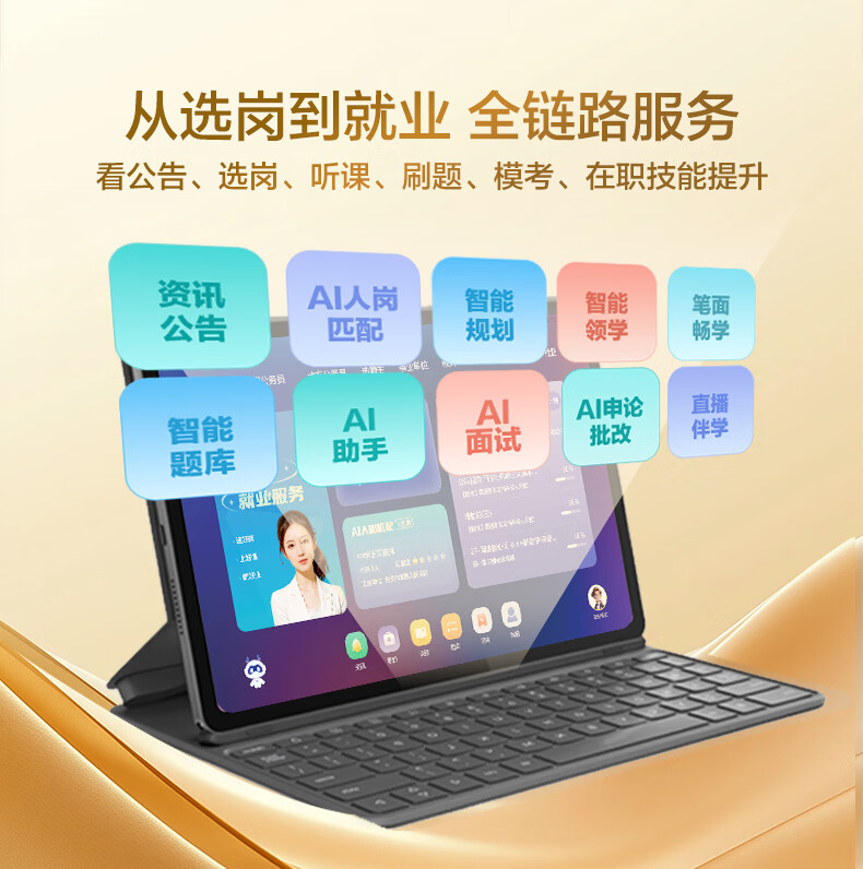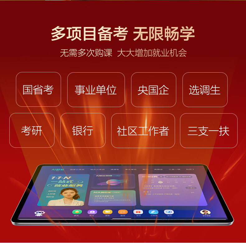 China Public Education Employment Learning Machine Tablet National Examination Provincial Examination Selection and Transfer Enterprise Central State-owned Enterprise Three Branches and One Support Community Workers Examination Postgraduate Application Counseling Real Question Bank Public Examination Materials China Public Education AI Employment Tablet (8+256G)