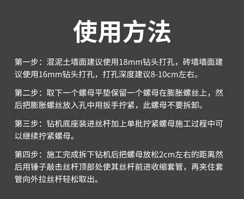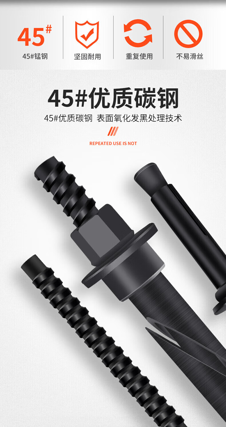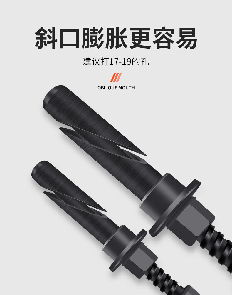 Lanlian rhinestone expansion screws can be reused and used to fix the water drill rig bracket. Special high-strength coarse-thread expansion screws. Flat-mouth coarse-thread strength level 8.8